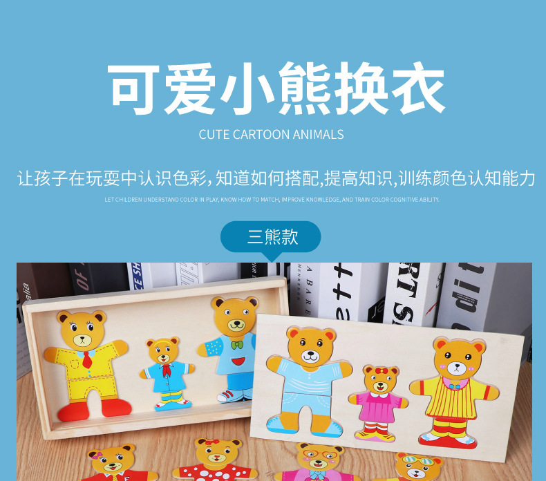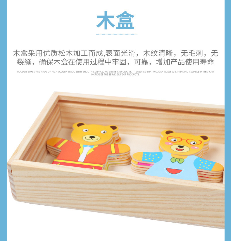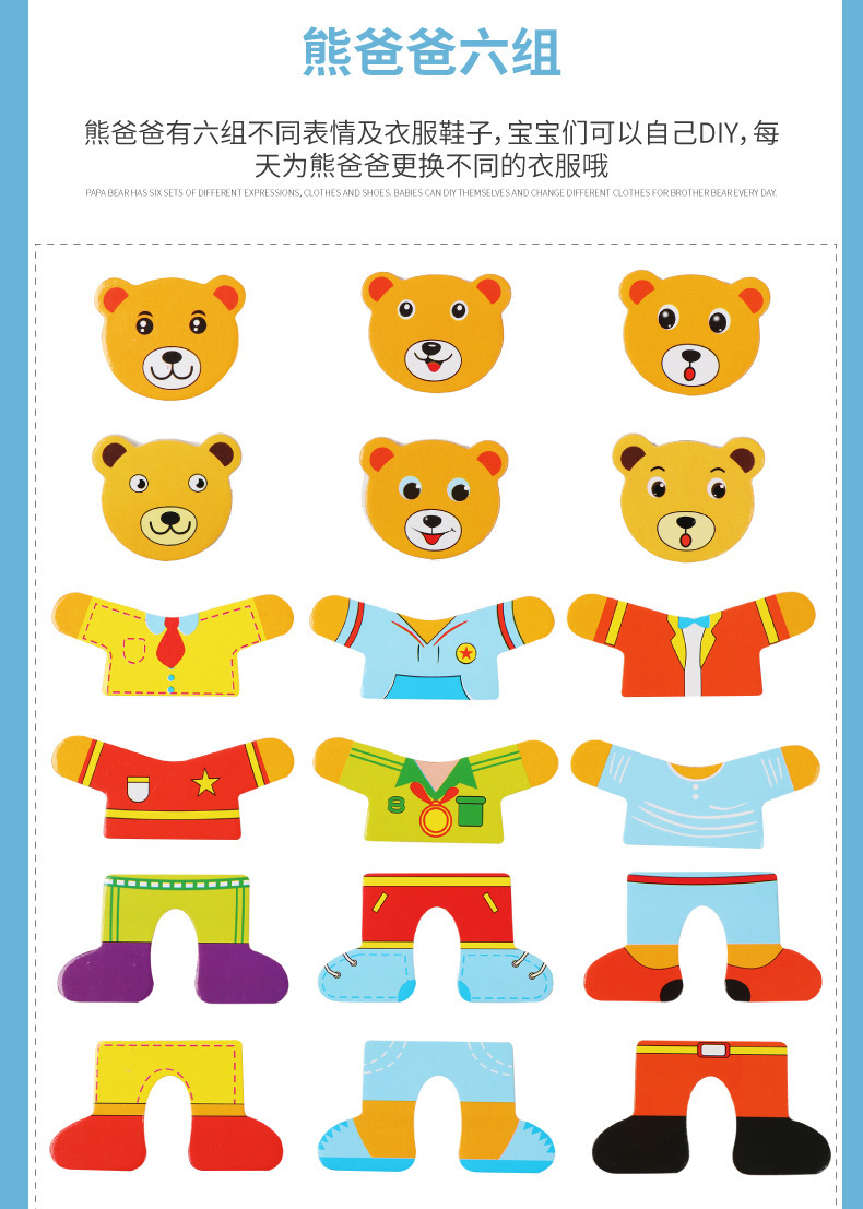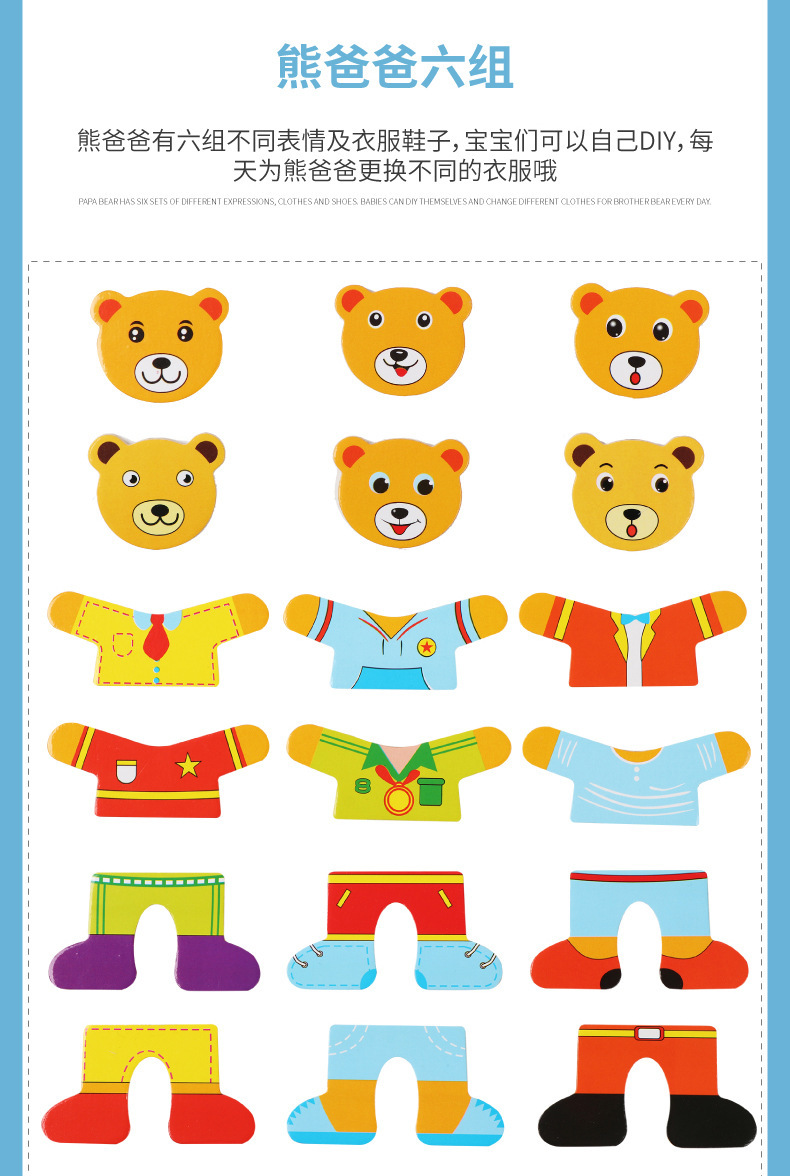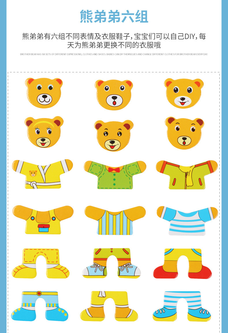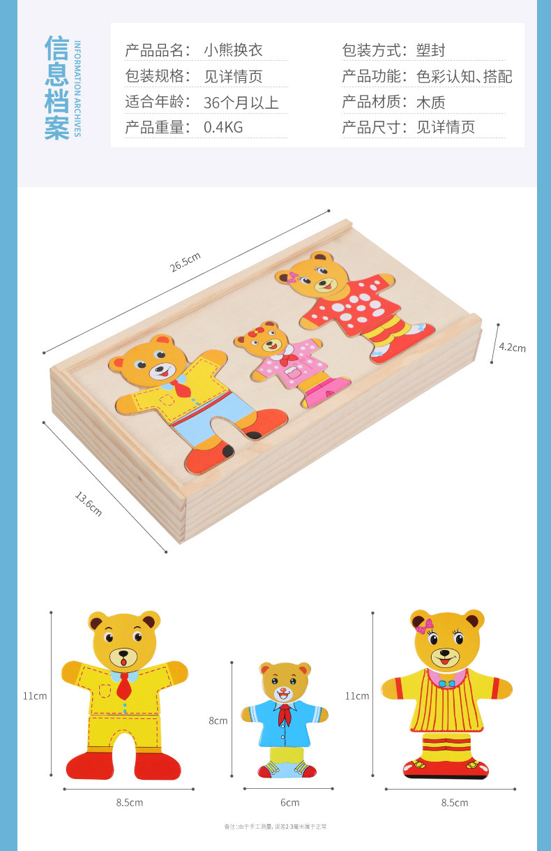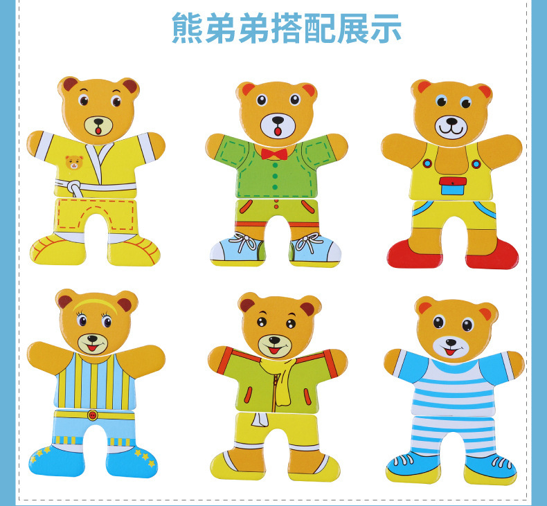 소녀 곰 변경 옷 건물 블록 아이들의 조기 교육 나무 퍼즐 드레싱 게임 아기 나무 교육 건물 블록 장난감스토어 가기