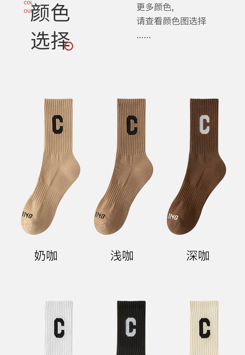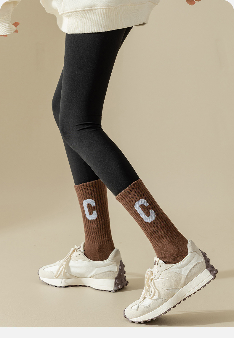 하프 테리 대형 C 문자 하이 튜브 양말 여성 가을과 겨울 양말 애호가 스포츠 기모 두꺼운 스타킹