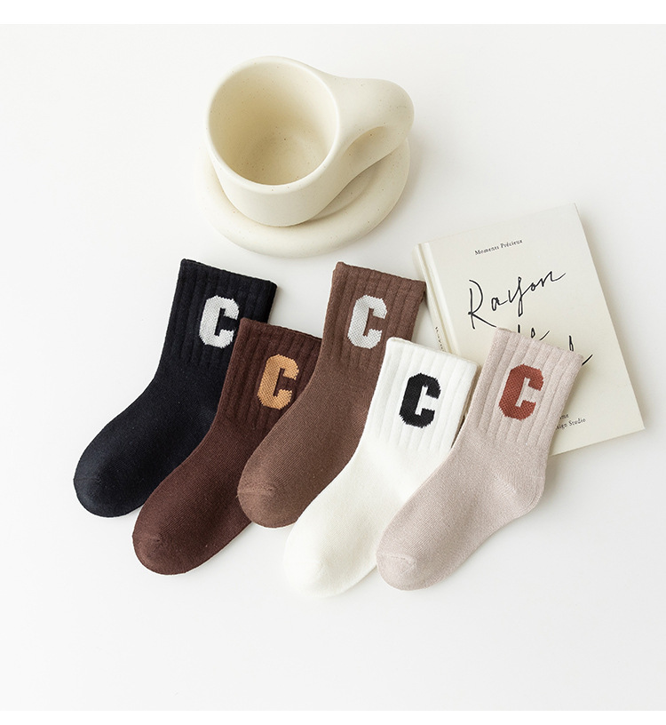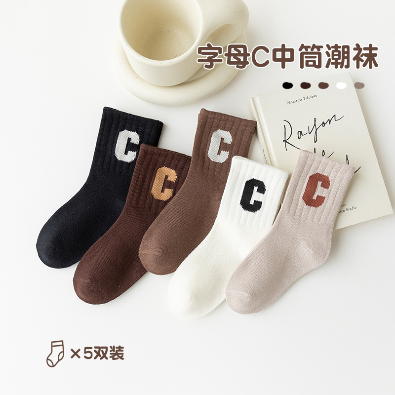 어린이 양말 봄과 가을 한국어 문자 C 소년 조수 양말 소녀 가을과 겨울 스포츠 양말 도매