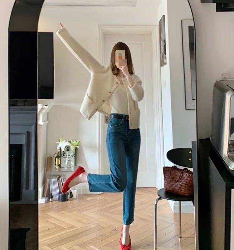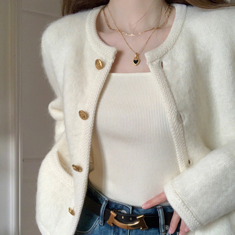 샤넬 스타일 우아한 헤어 스웨터 코트 여성의 초가을 2024 새로운 니트 카디건 고급 외부 탑스토어 가기