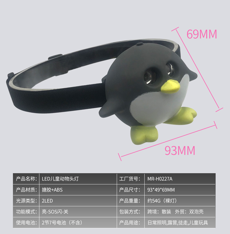 LED 동물 헤드라이트 건전지 동물 램프 실리콘 램프 팬더 돌고래 강아지 개구리 작은 너구리 펭귄 톰스토어 가기