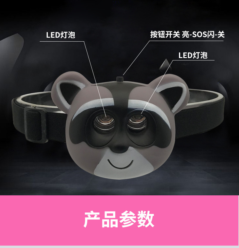LED 동물 헤드라이트 건전지 동물 램프 실리콘 램프 팬더 돌고래 강아지 개구리 작은 너구리 펭귄 톰