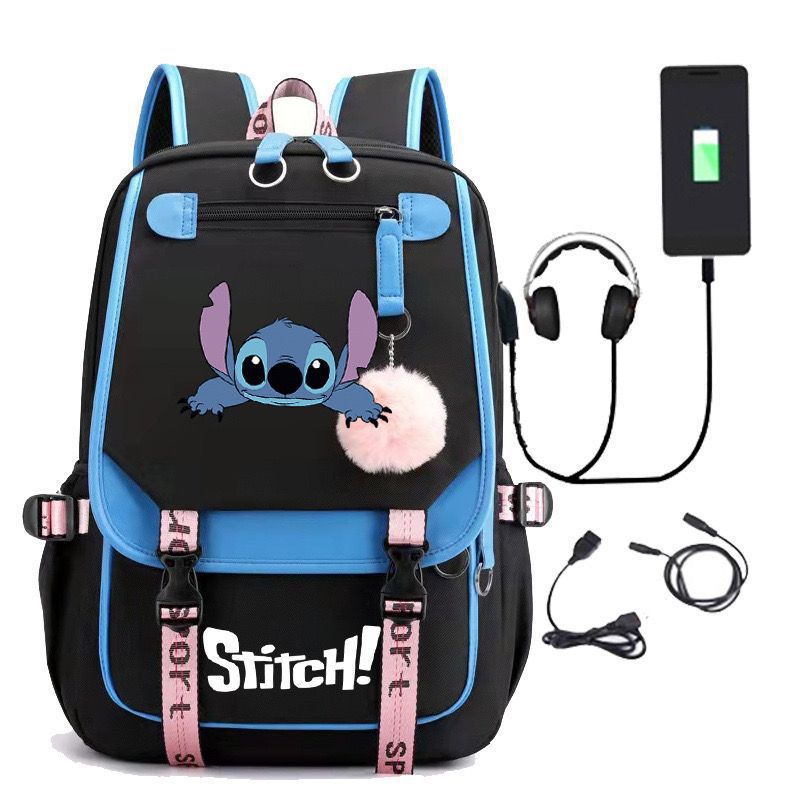 새로운 스타 아기 스티치 스티치 스티치 USB 충전식 스쿨백 남녀 학생 배낭 배낭