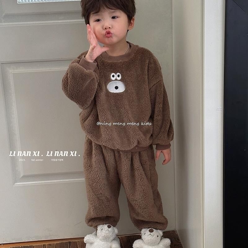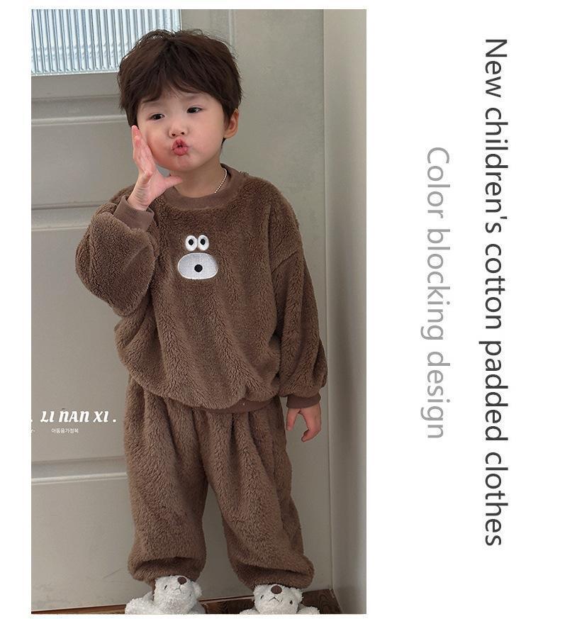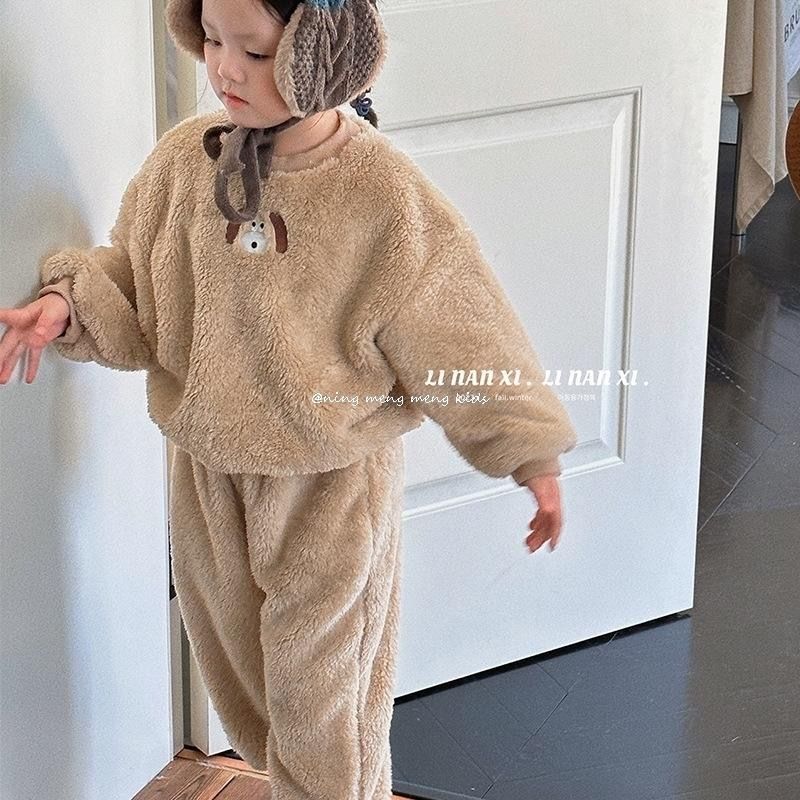 남학생과 여학생 겨울 봉제 세트 서부 가을과 겨울 아기 옷 어린이 잠옷 따뜻한 집 옷 도매스토어 가기