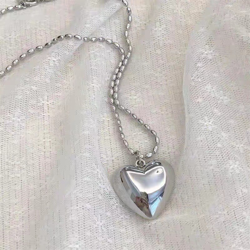 한국식 심플 인 실버 우아한 올매치 3 차원 복숭아 하트 러브 목걸이 세련된 하이 엔드 라이트 럭셔리 액세서리 펜던트스토어 가기