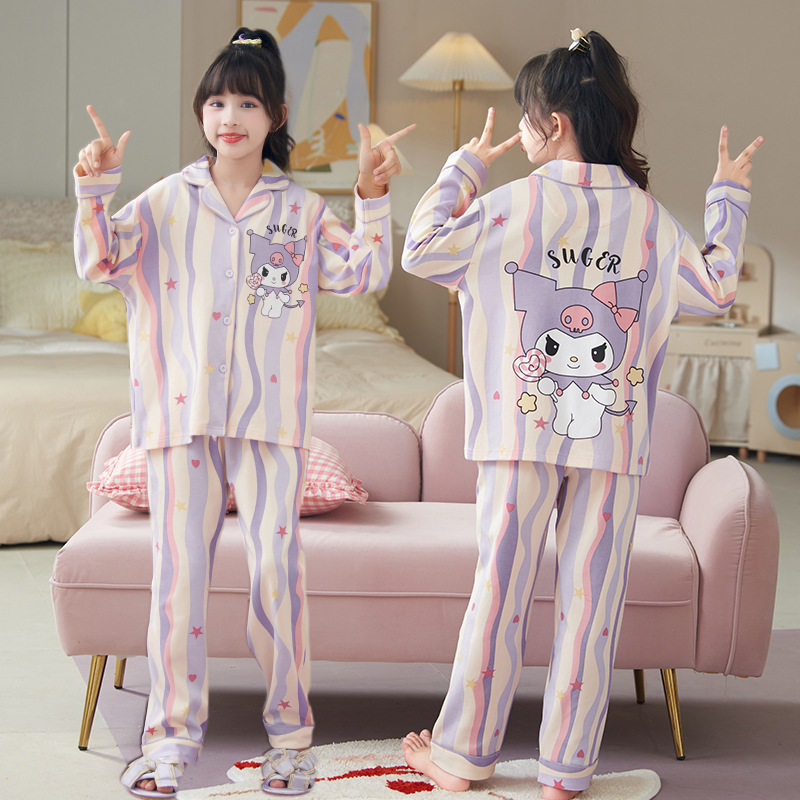 어린 이용 잠옷 소녀 귀여운 만화 Kulomi 아기 소녀 긴 소매 홈 옷 세트 봄과 가을
