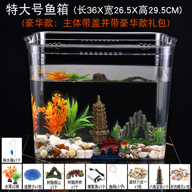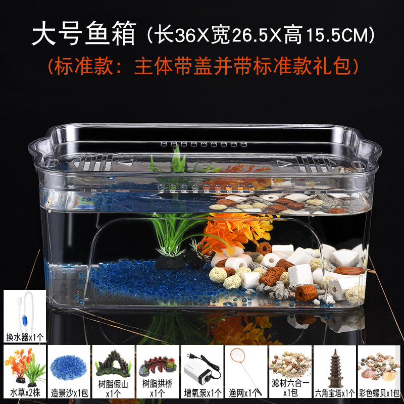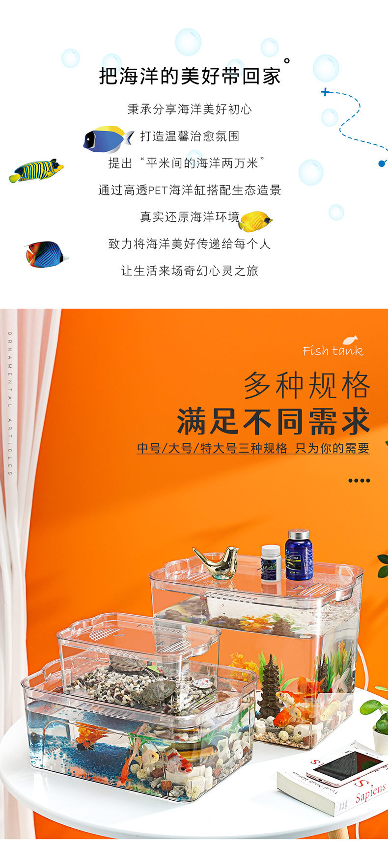 플라스틱 물고기 탱크 직사각형 투명한 가정 거실 데스크탑 생태 물고기 탱크 작은 육각형 공룡 특수 탱크 커버스토어 가기