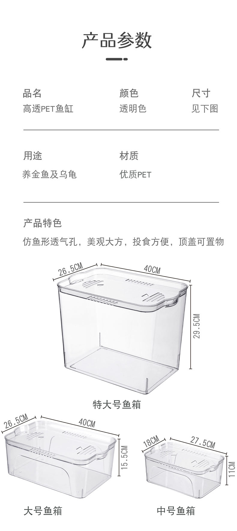 플라스틱 물고기 탱크 직사각형 투명한 가정 거실 데스크탑 생태 물고기 탱크 작은 육각형 공룡 특수 탱크 커버