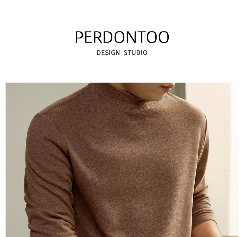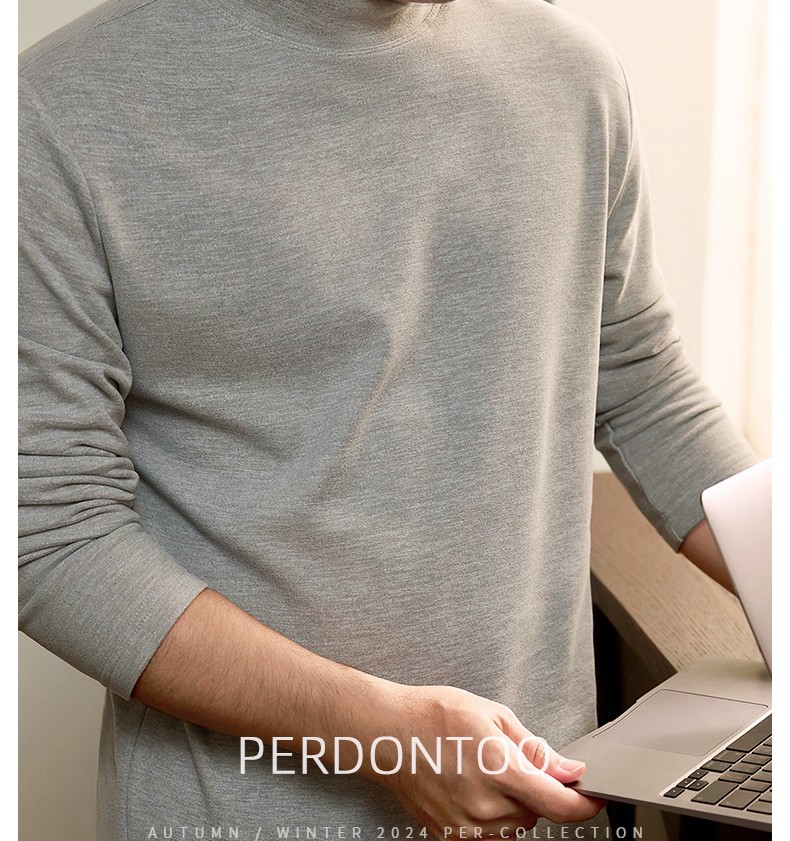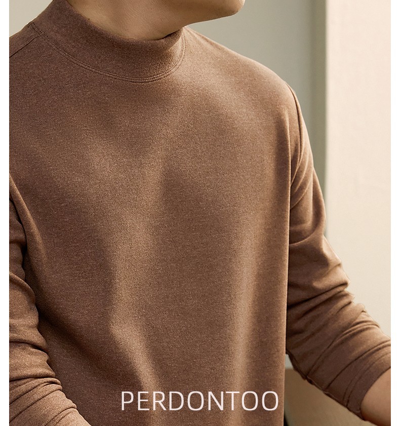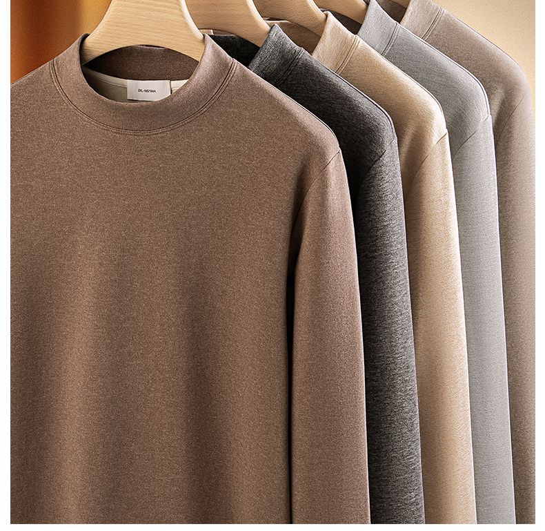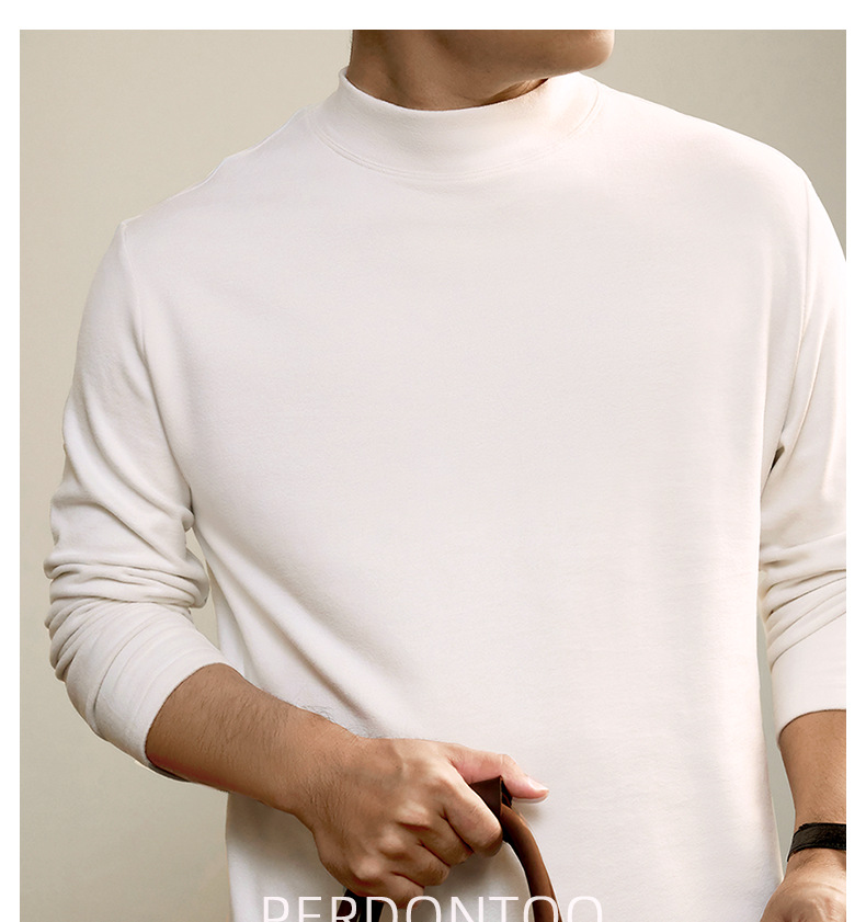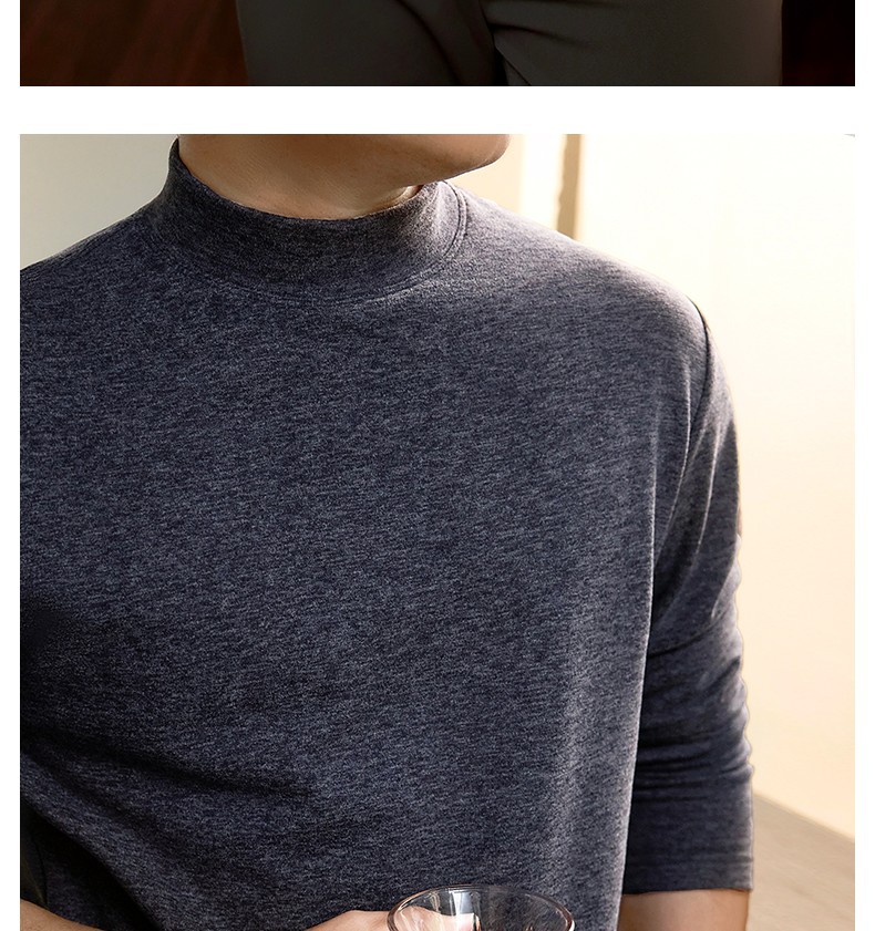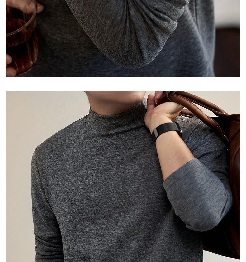 원적외선 온난화 캐시미어 실크 세미 하이 칼라 베이스 셔츠 남성용 따뜻한 긴팔 티셔츠 기본 단순 양면 양털스토어 가기
