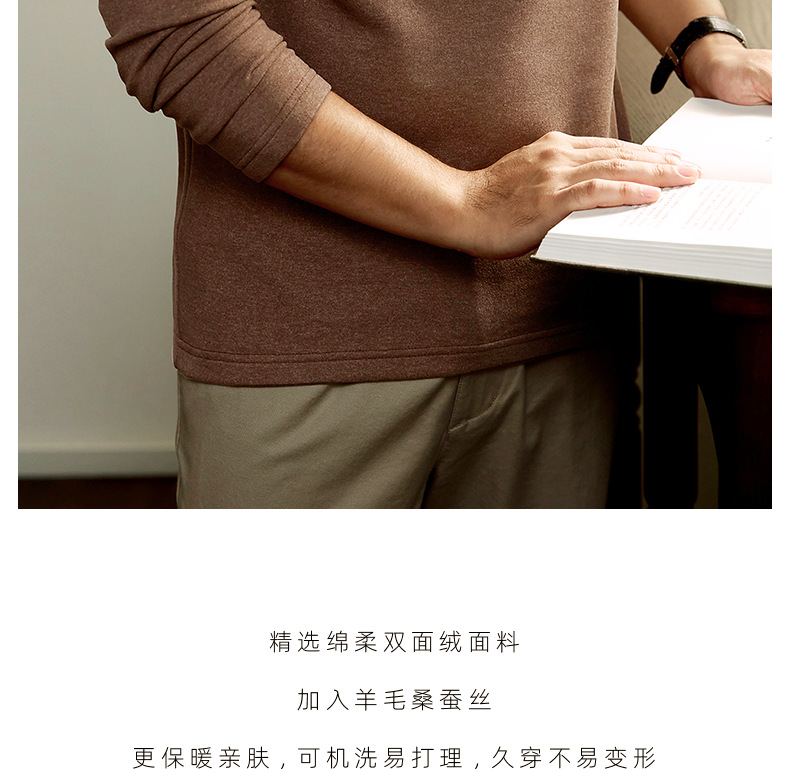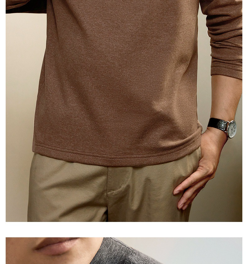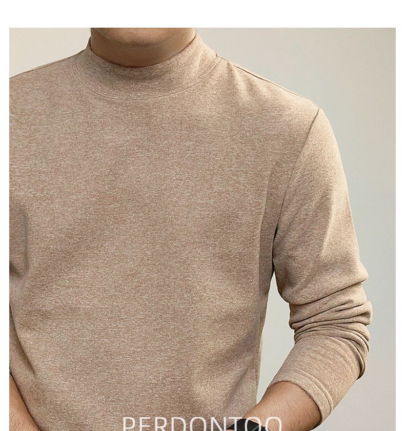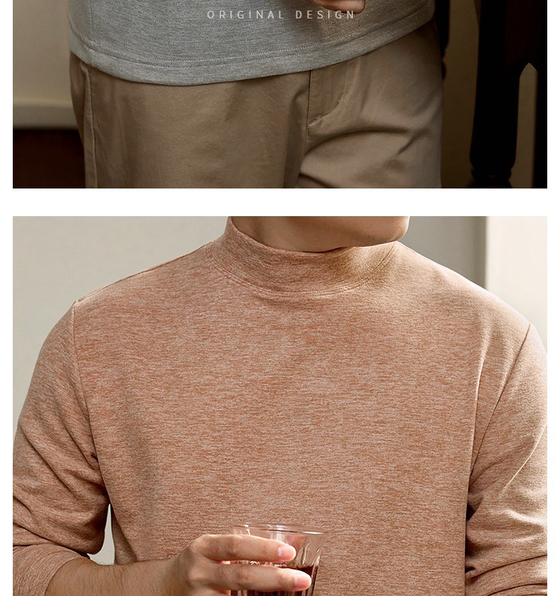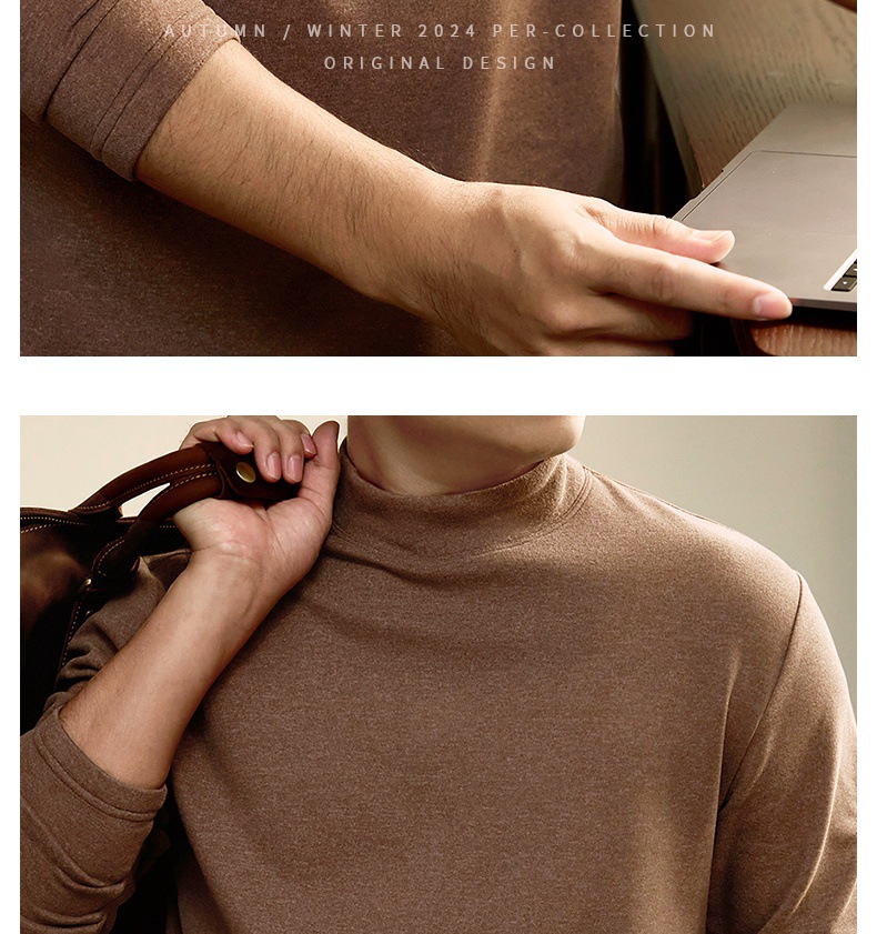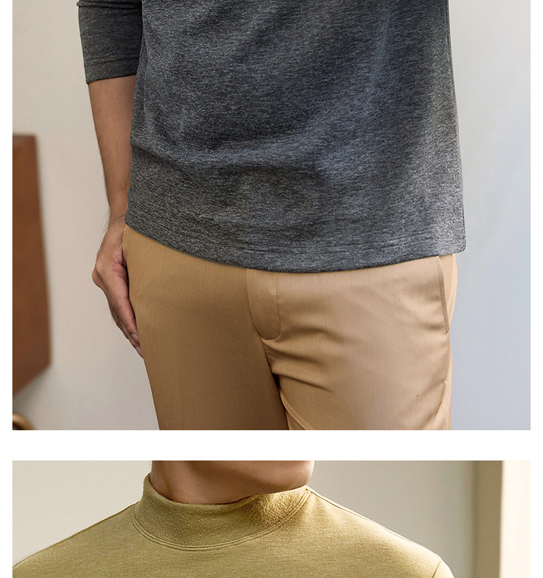 원적외선 온난화 캐시미어 실크 세미 하이 칼라 베이스 셔츠 남성용 따뜻한 긴팔 티셔츠 기본 단순 양면 양털스토어 가기