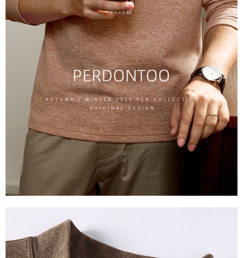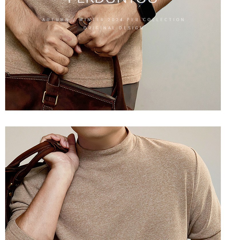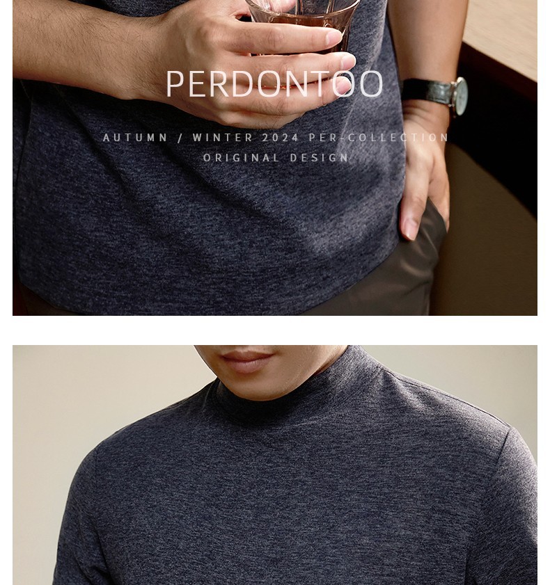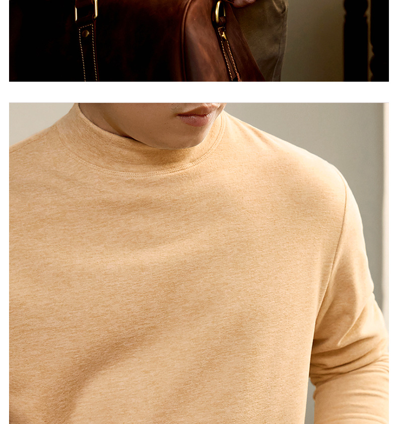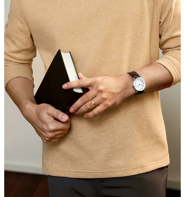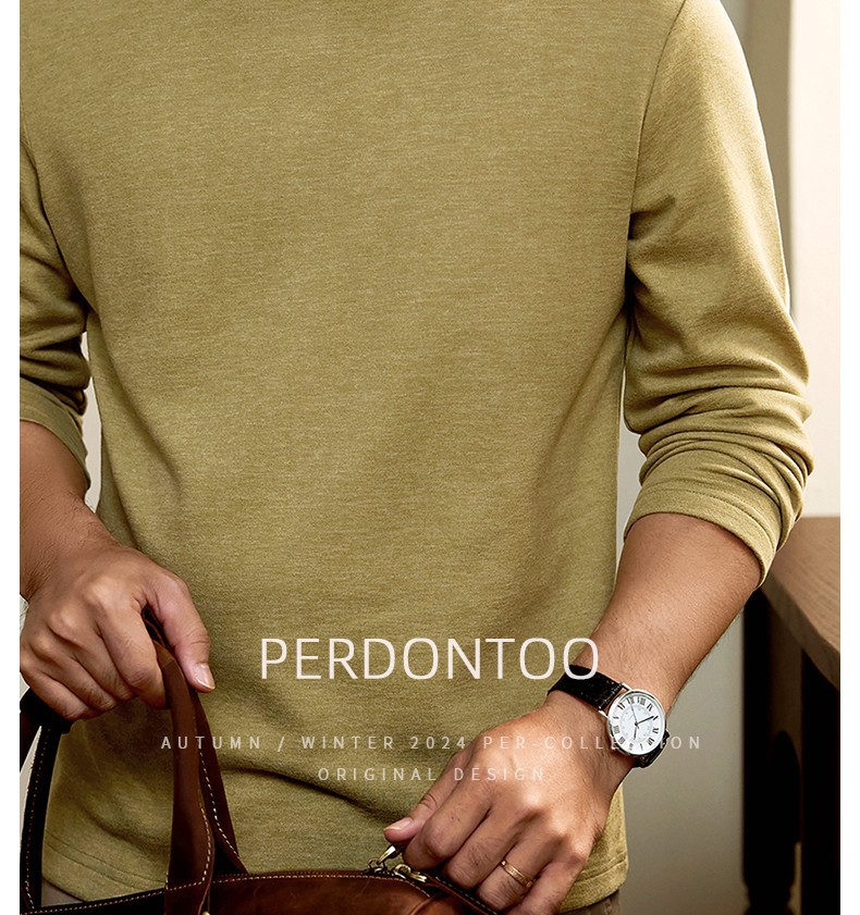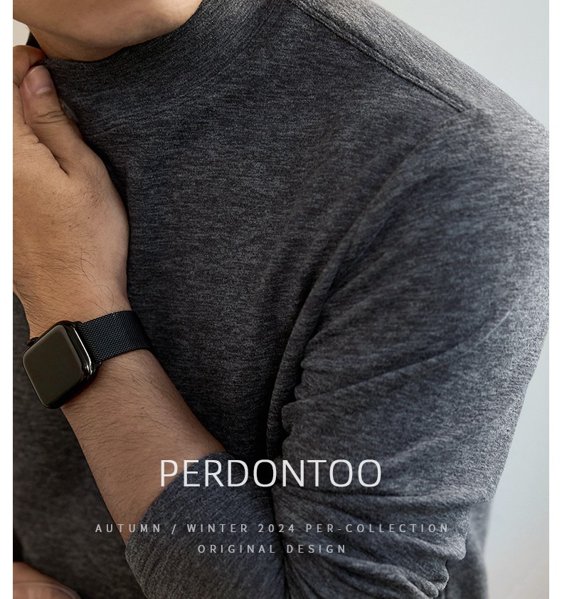 원적외선 온난화 캐시미어 실크 세미 하이 칼라 베이스 셔츠 남성용 따뜻한 긴팔 티셔츠 기본 단순 양면 양털스토어 가기