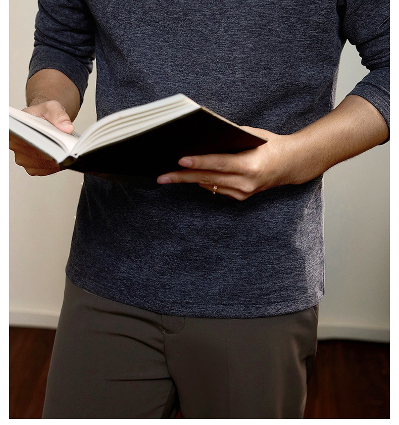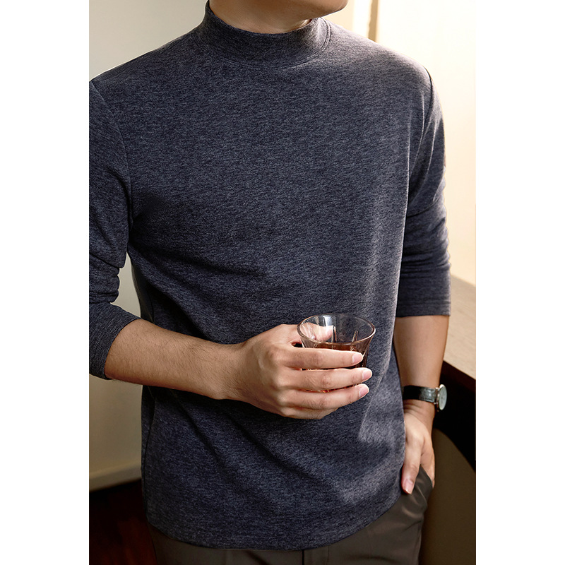 원적외선 온난화 캐시미어 실크 세미 하이 칼라 베이스 셔츠 남성용 따뜻한 긴팔 티셔츠 기본 단순 양면 양털