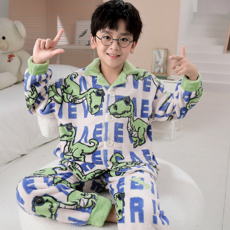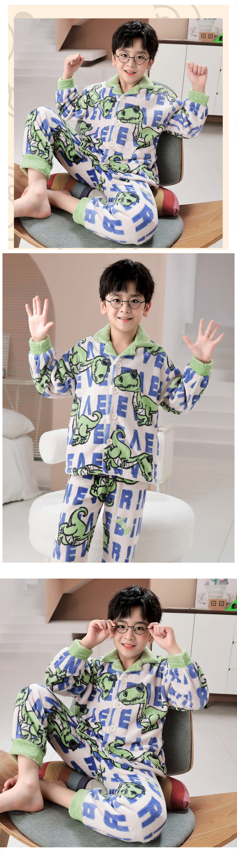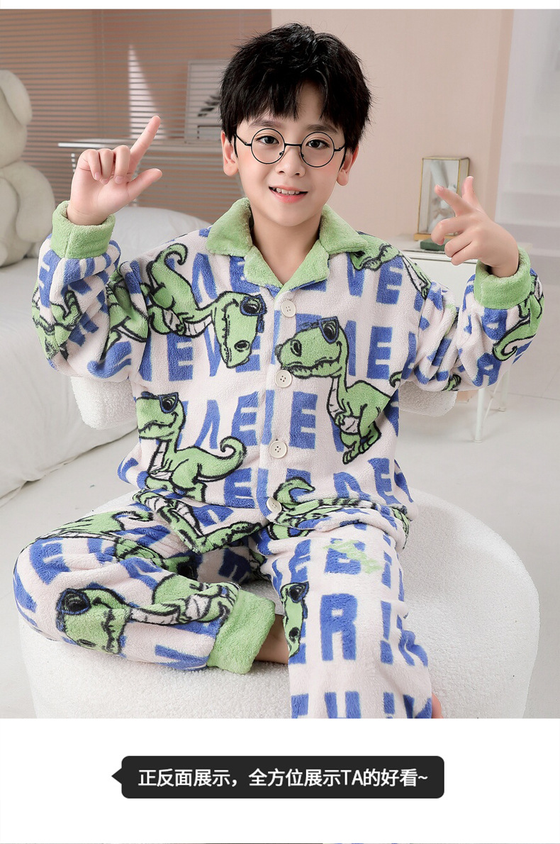 어린이 겨울 플란넬 잠옷 소년 아기 기모 두꺼운 만화 홈 옷 소년의 산호 양털 세트스토어 가기
