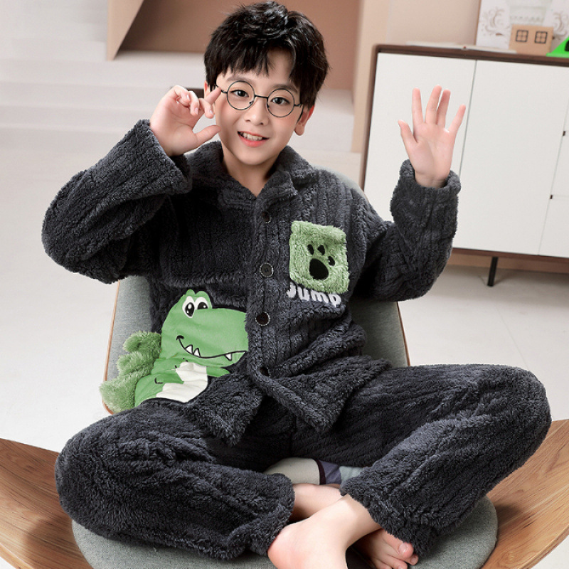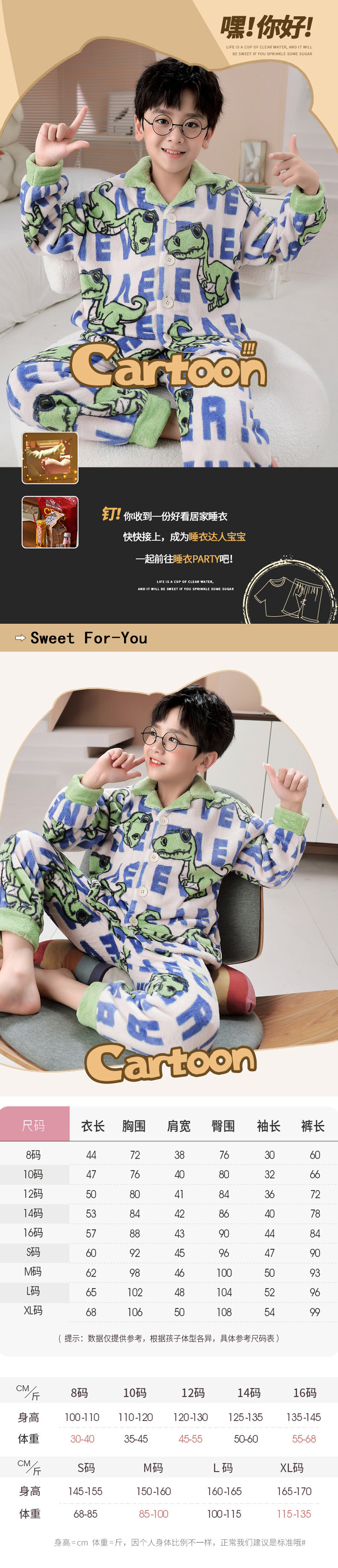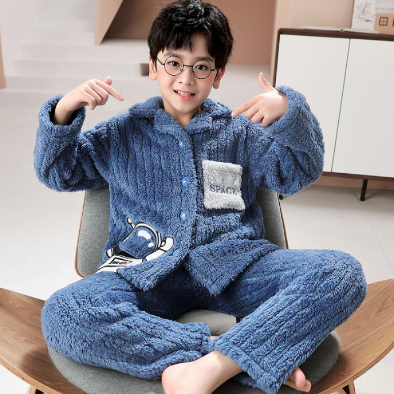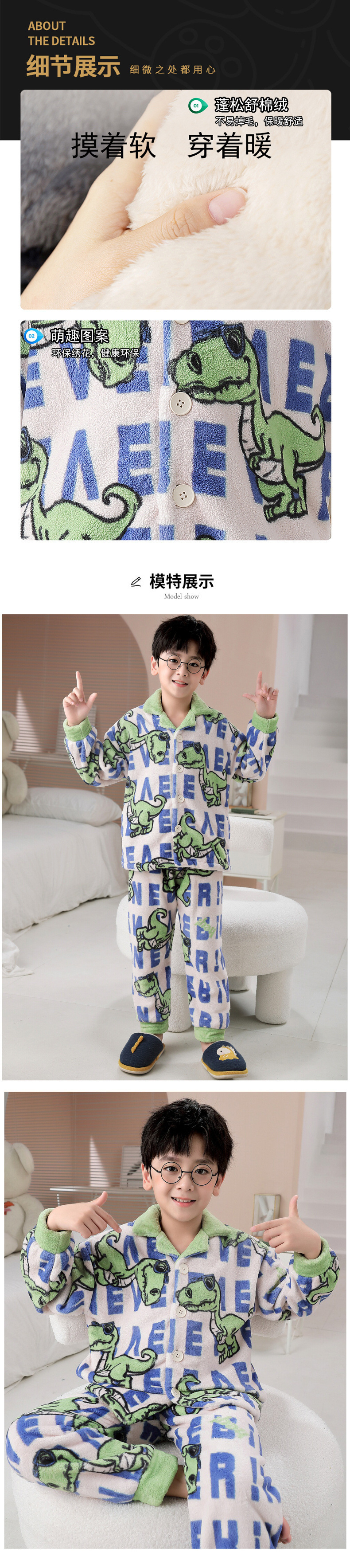 어린이 겨울 플란넬 잠옷 소년 아기 기모 두꺼운 만화 홈 옷 소년의 산호 양털 세트스토어 가기