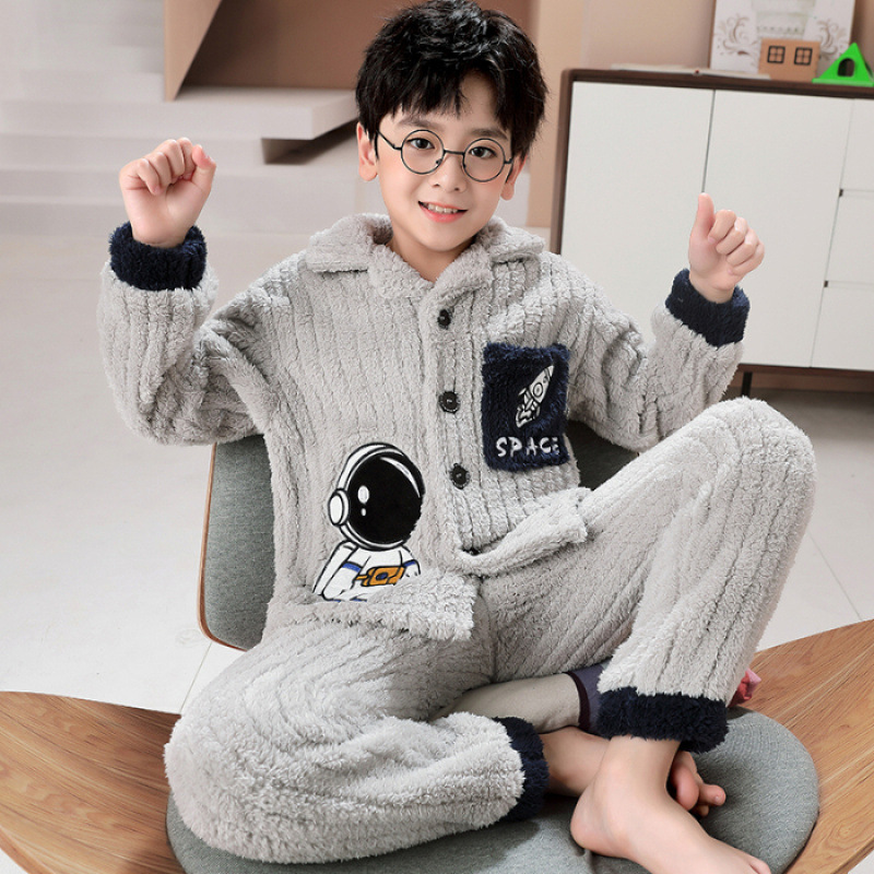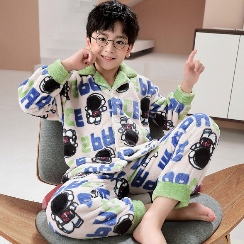 어린이 겨울 플란넬 잠옷 소년 아기 기모 두꺼운 만화 홈 옷 소년의 산호 양털 세트
