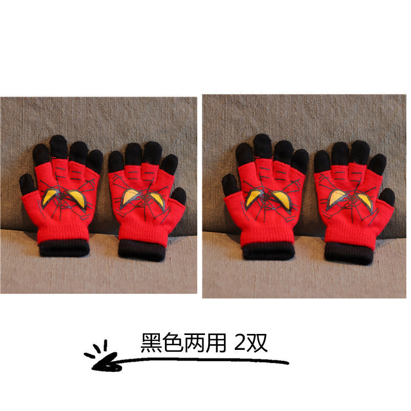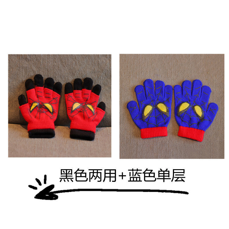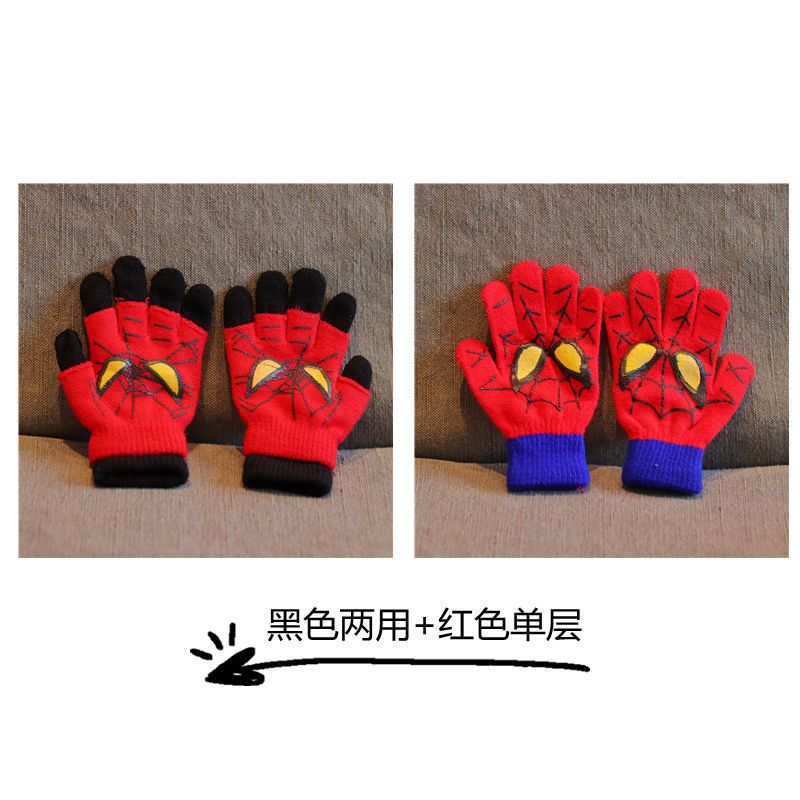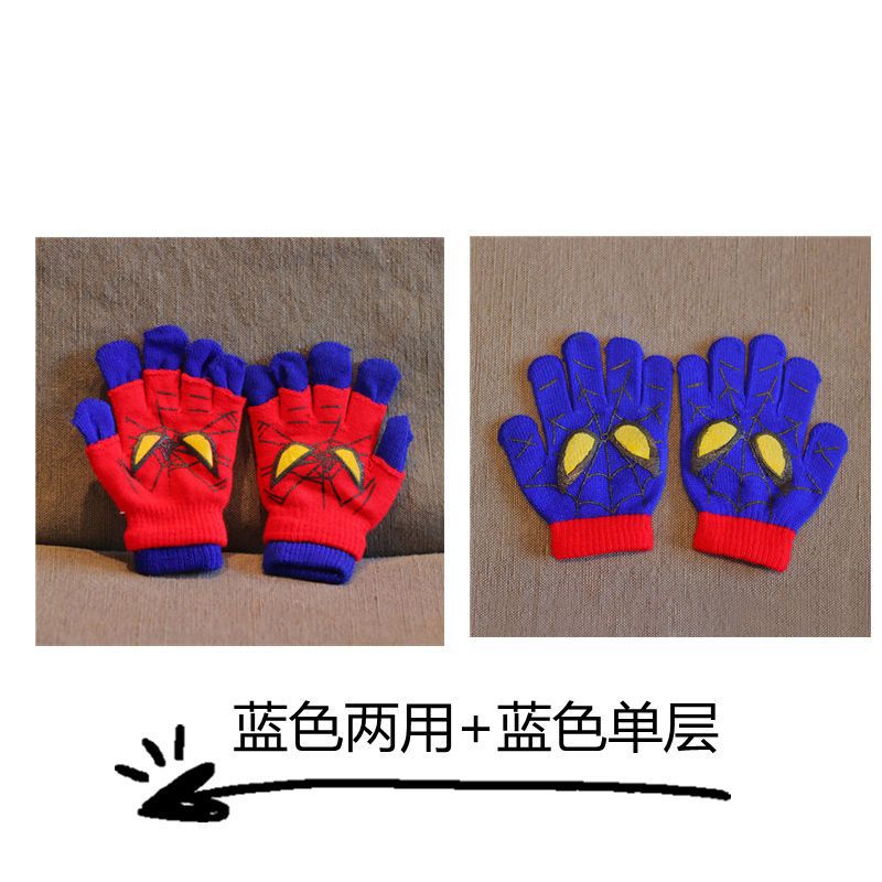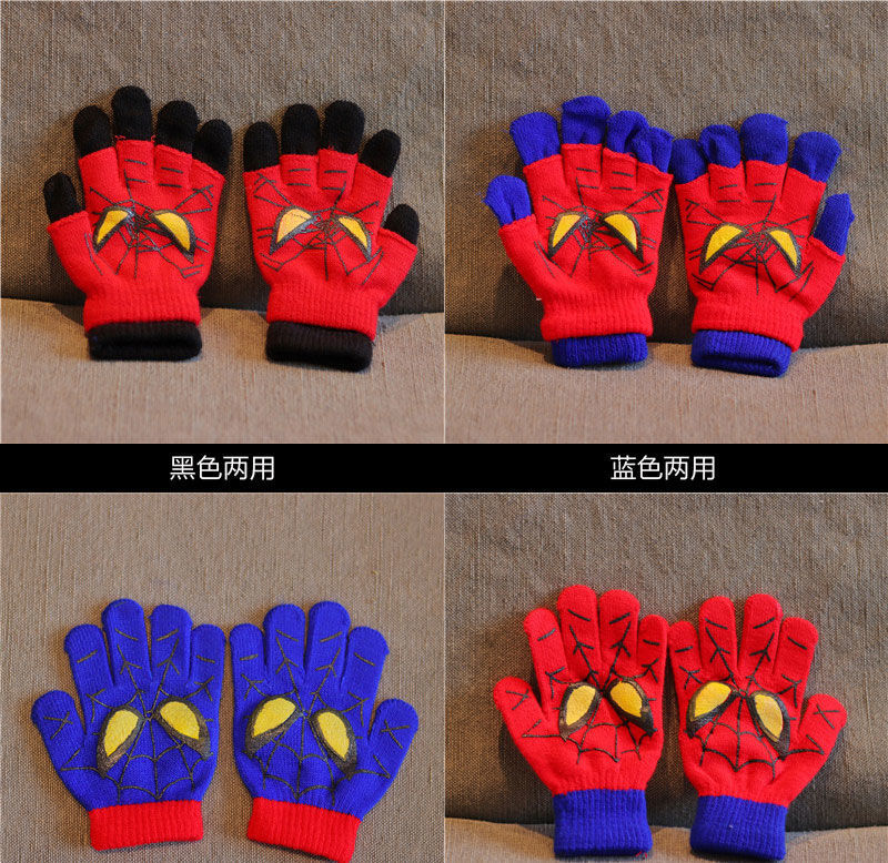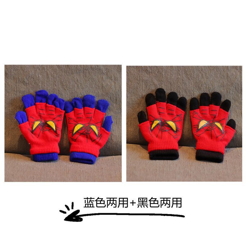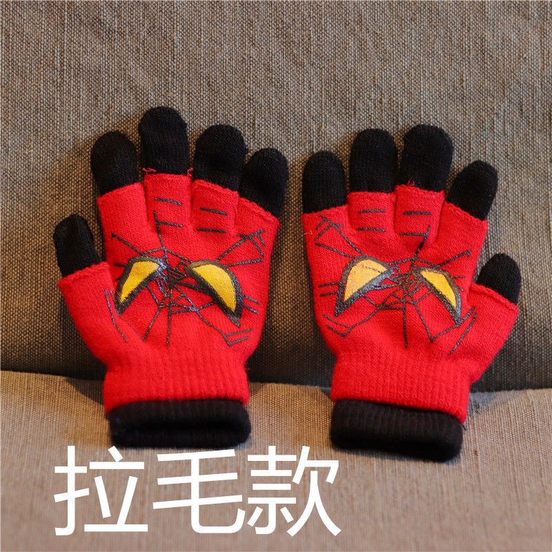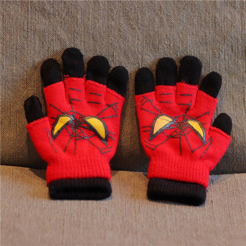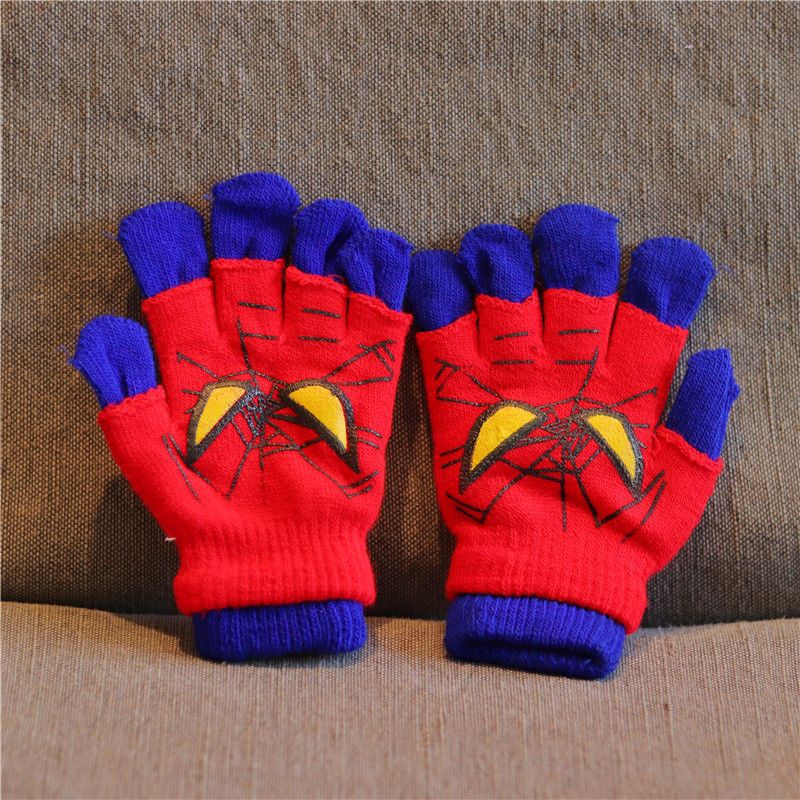 어린이 장갑 소년 니트 5 손가락 반 손가락 이중 사용 장갑 애니메이션 스파이더 맨 장갑 따뜻한 가을과 겨울