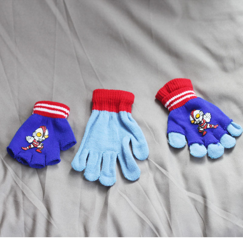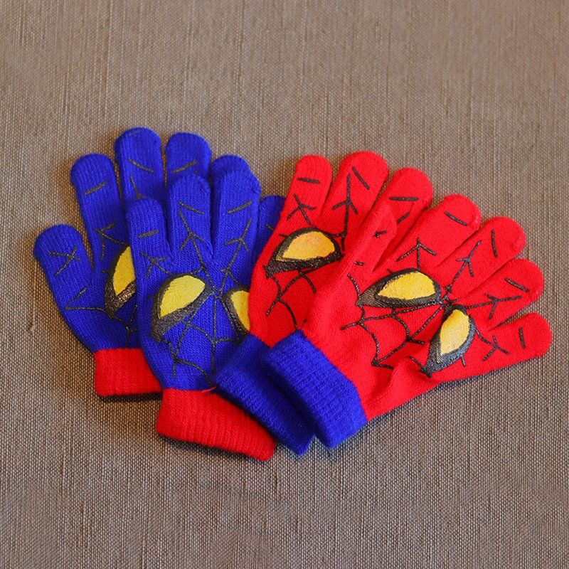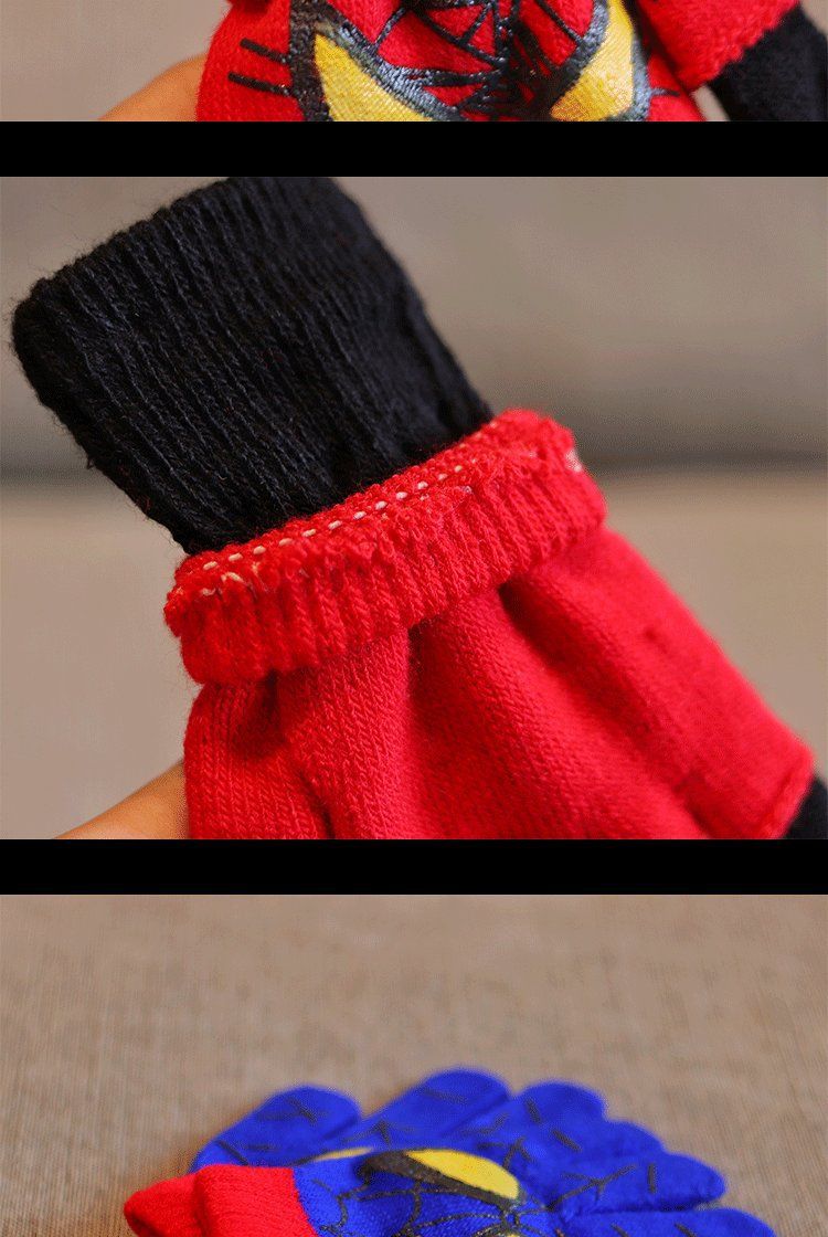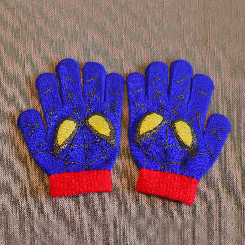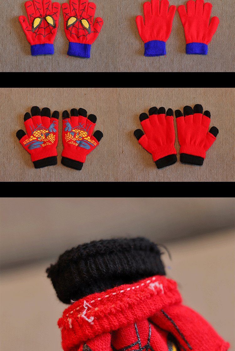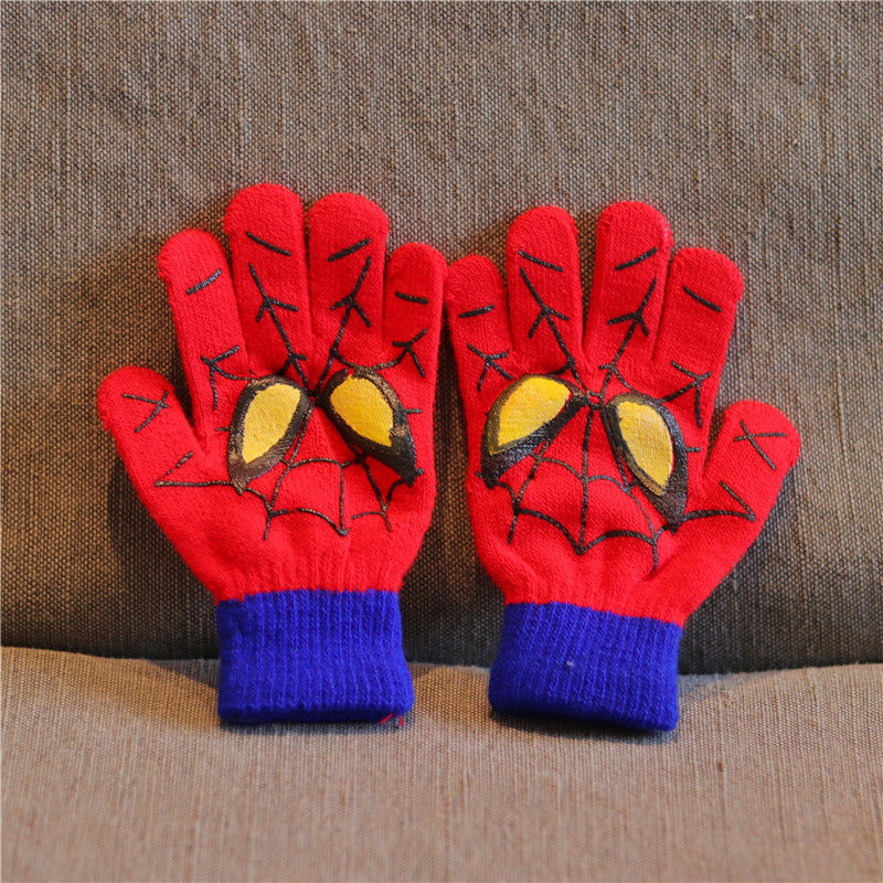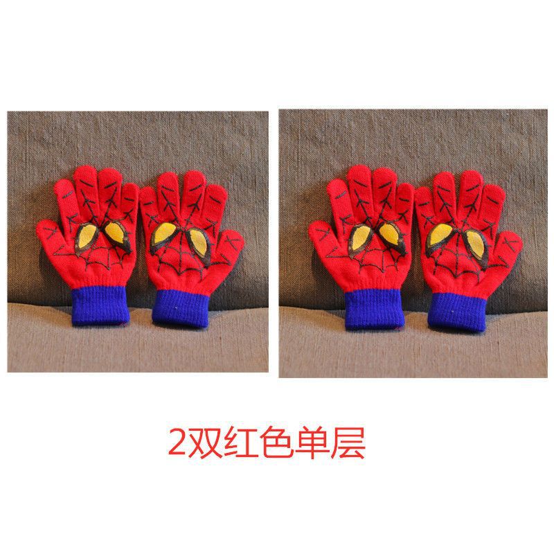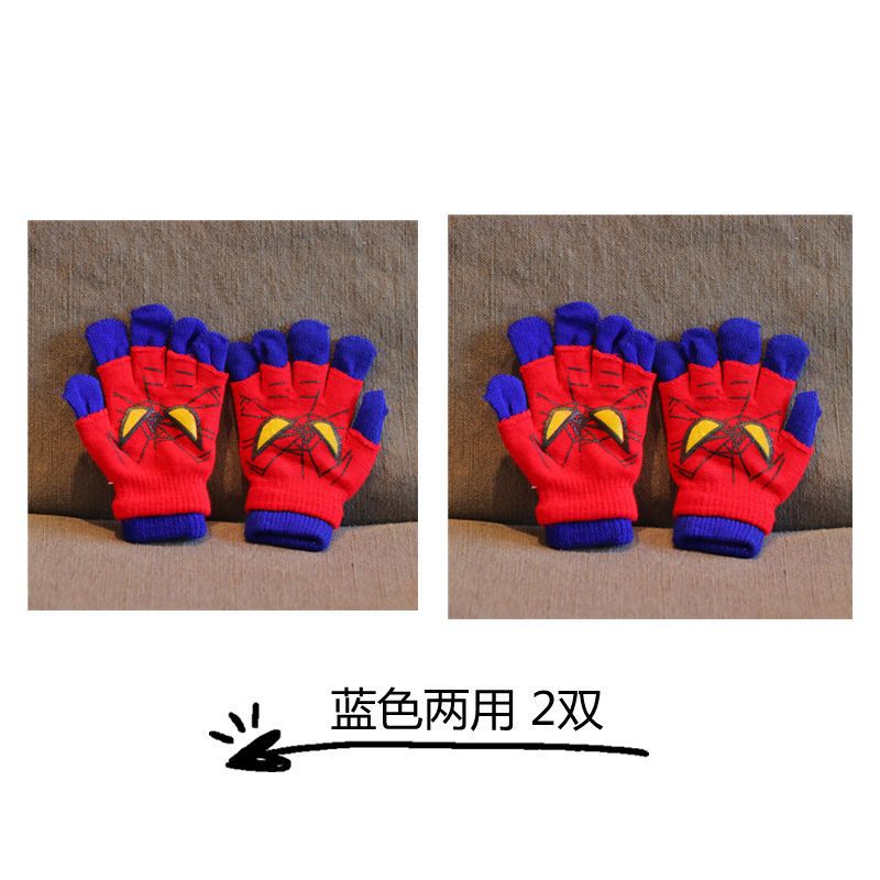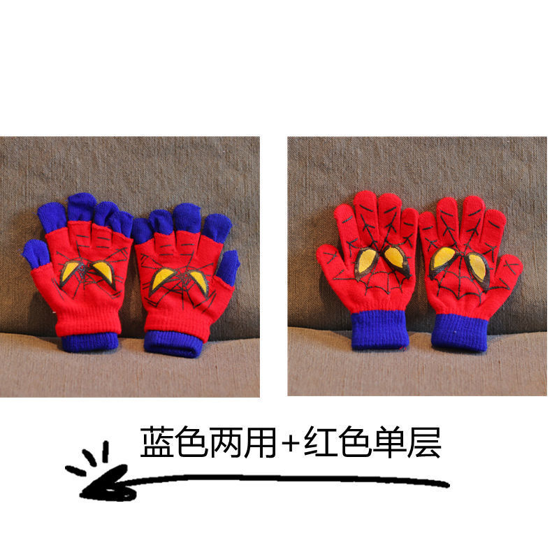 어린이 장갑 소년 니트 5 손가락 반 손가락 이중 사용 장갑 애니메이션 스파이더 맨 장갑 따뜻한 가을과 겨울