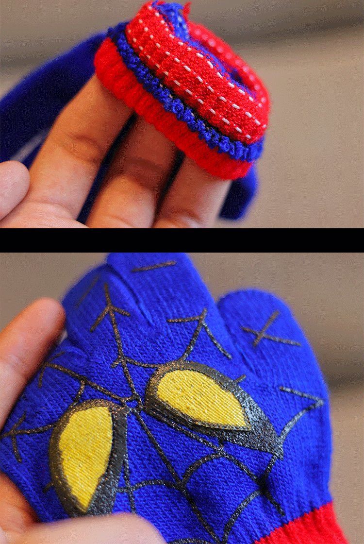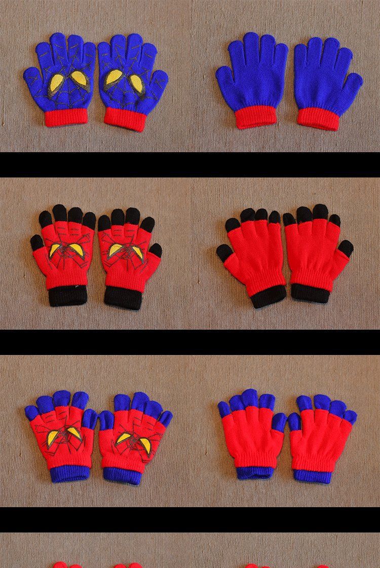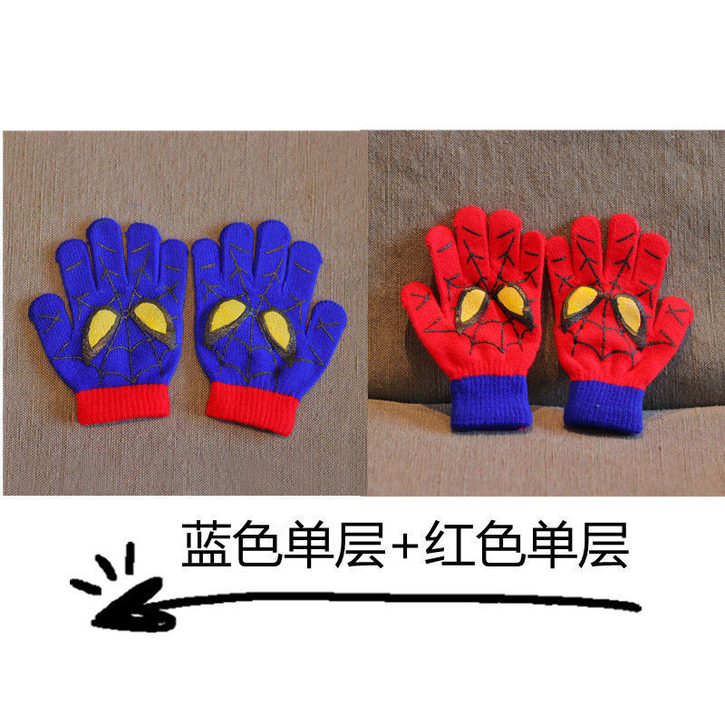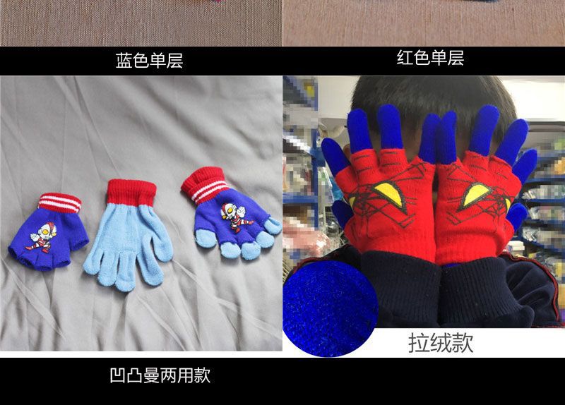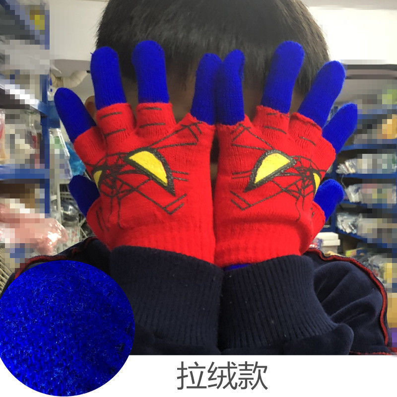어린이 장갑 소년 니트 5 손가락 반 손가락 이중 사용 장갑 애니메이션 스파이더 맨 장갑 따뜻한 가을과 겨울스토어 가기
