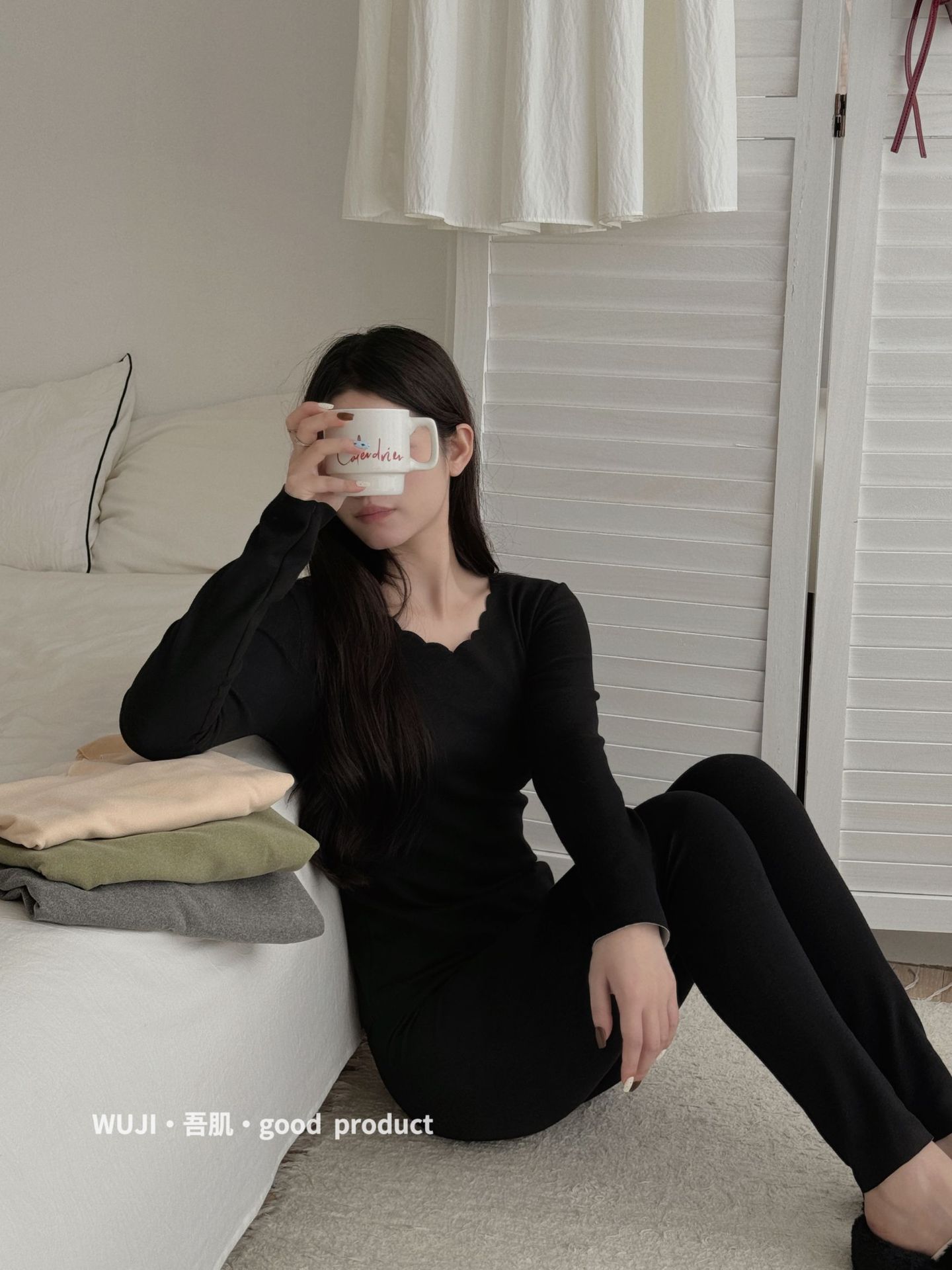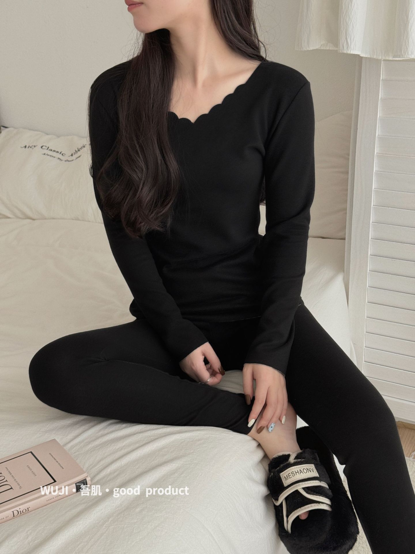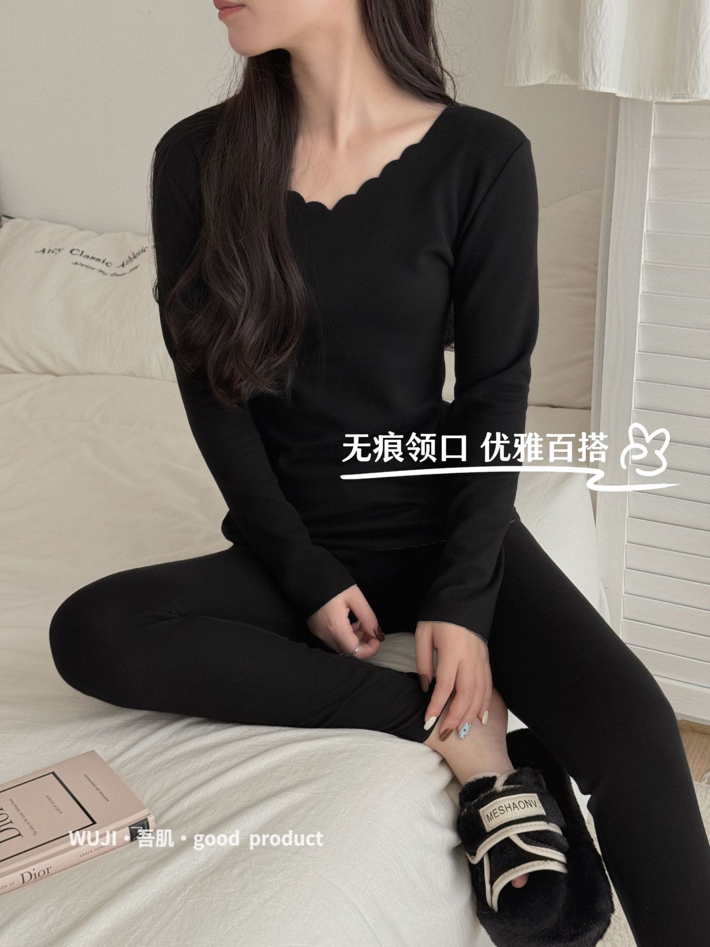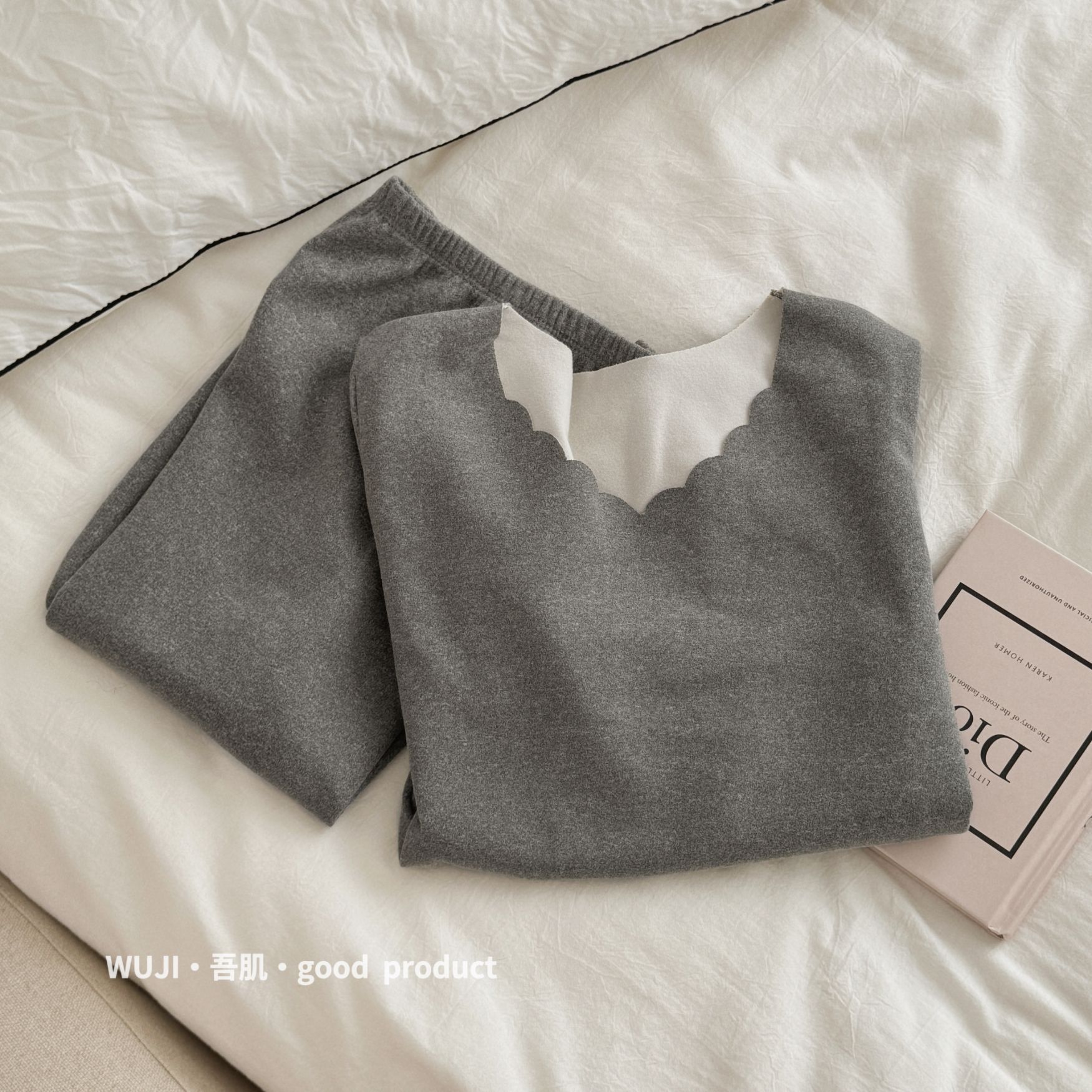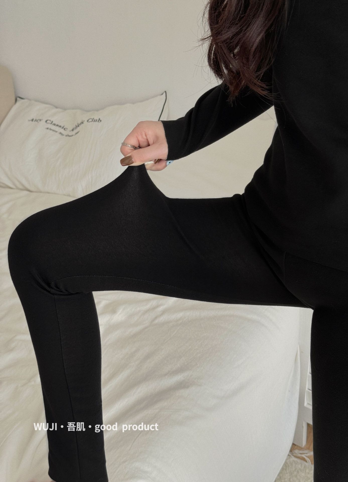 Wushi 좋은 원활한 열 속옷 세트 여성 실크 양면 기모 긴 소매 가을 바지 바닥 세트스토어 가기