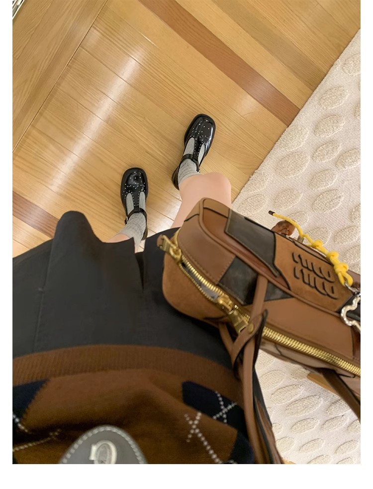 재고 빈티지 캐주얼 조커 블로크 T 자형 가죽 영국 스타일의 메리 제인 작은 가죽 신발 여성 2024스토어 가기