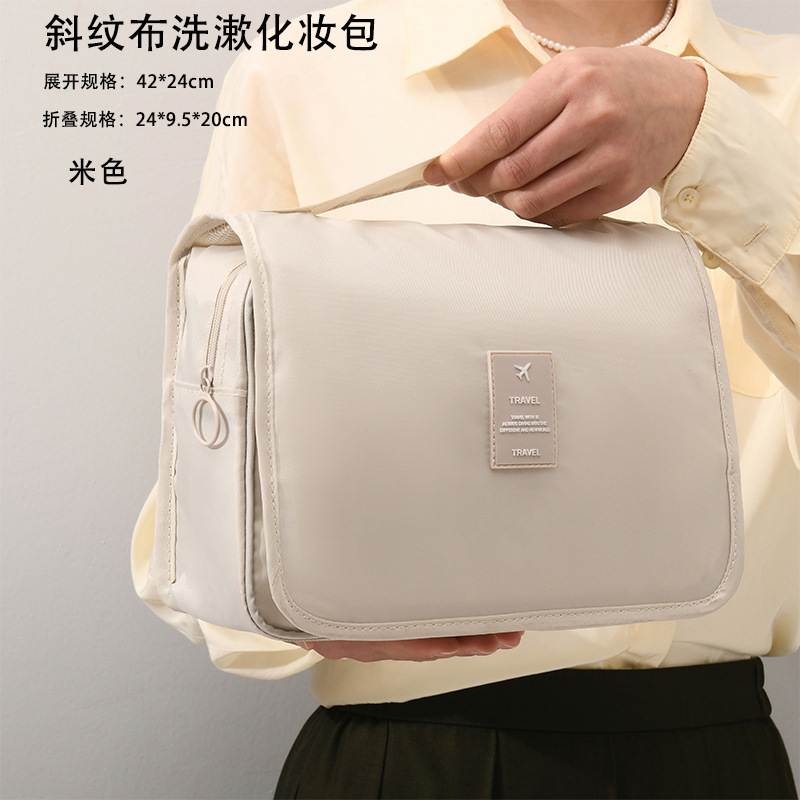 • 대용량의 베이지색 걸이형 휴대용 세면도구 화장품 가방