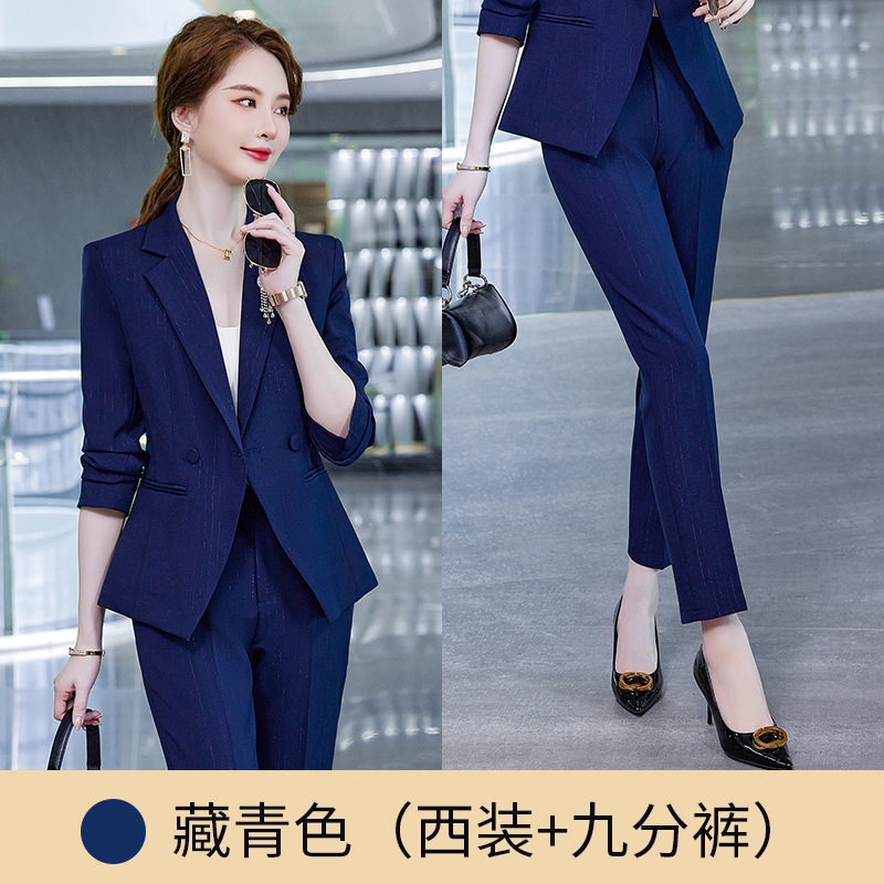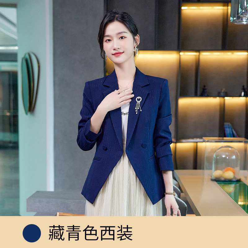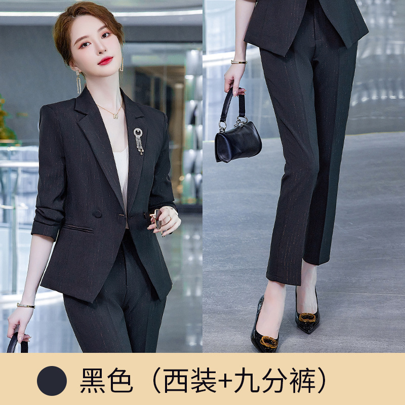 2024 하이 엔드 스트라이프 작은 세트 재킷 여성 패션 슬림 핏 짧은 전문 세트 작업복 우아한 여신 팬 Qiu