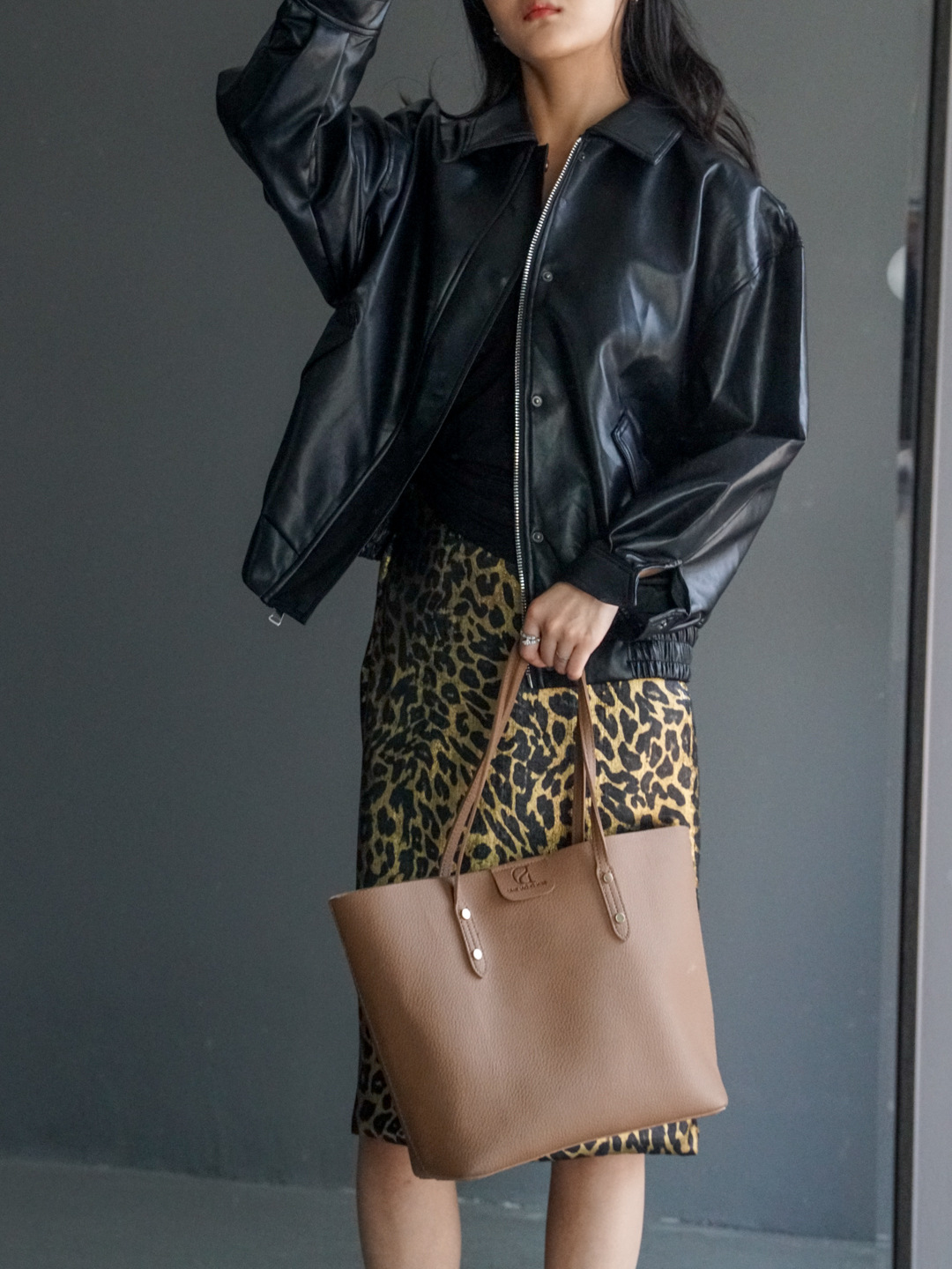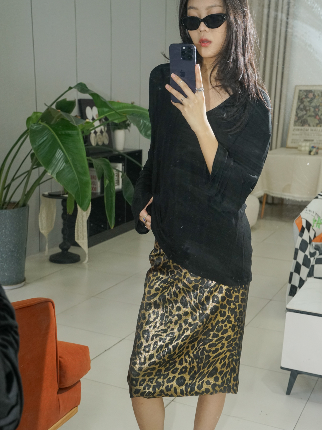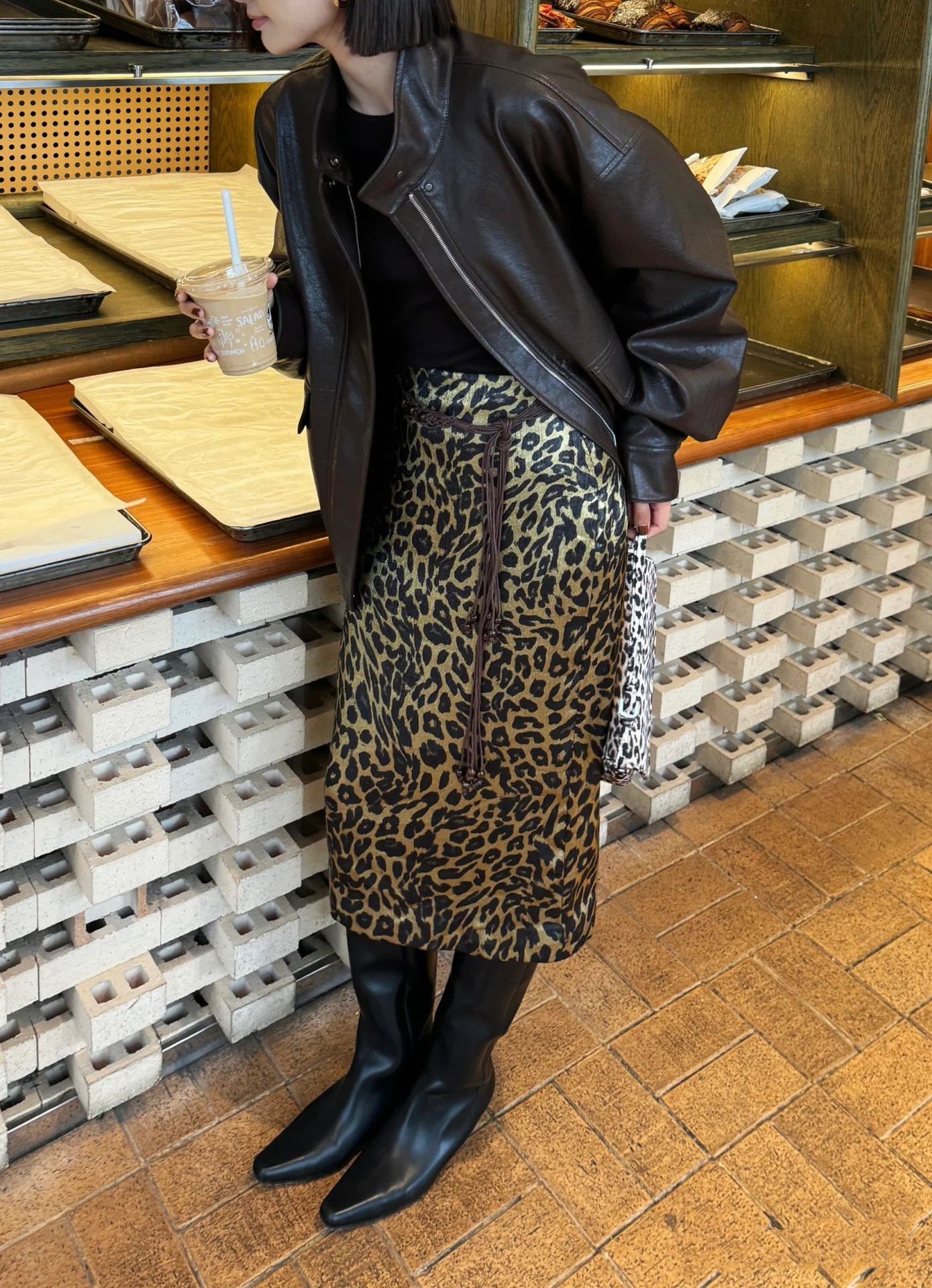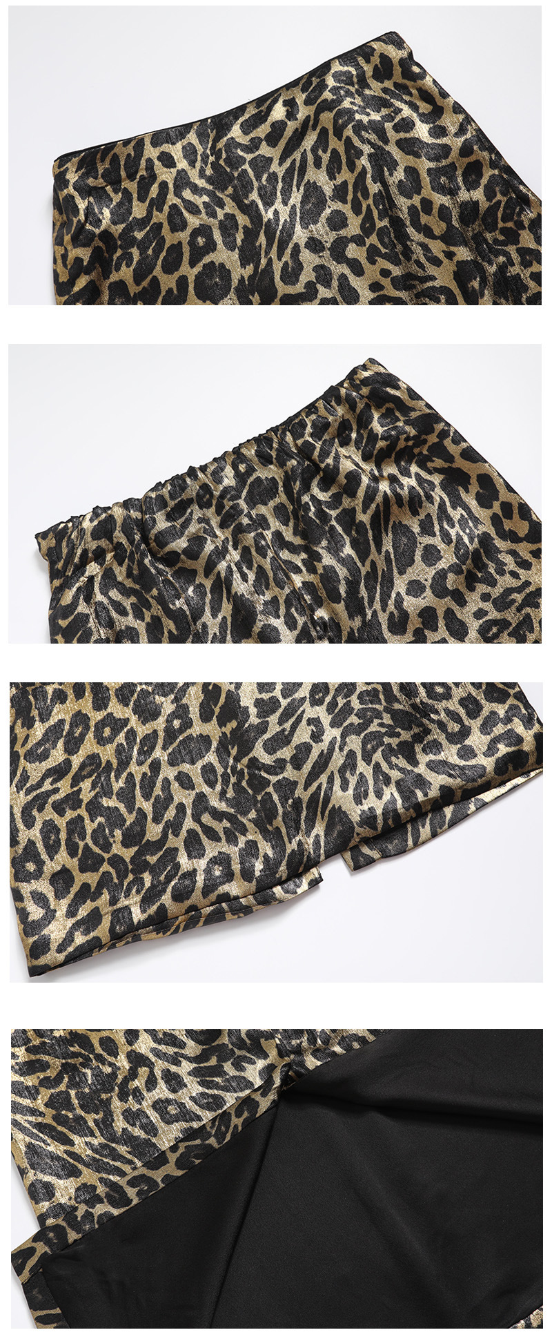 가을 출퇴근용 고급스러운 화려한 금박 레오파드 프린트 슬림하고 키가 보이는 스트레이트 마이크로 테이퍼드 슬릿 미디 스커트 4231스토어 가기