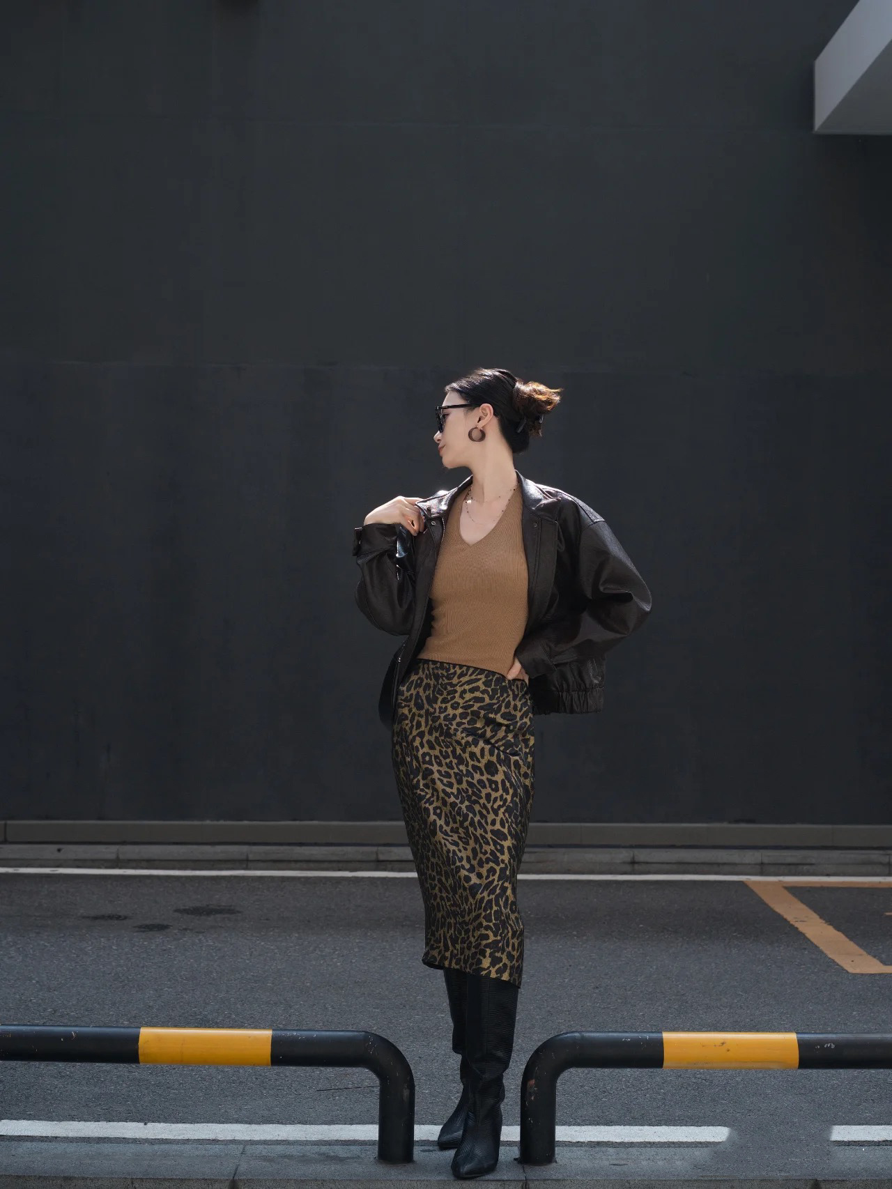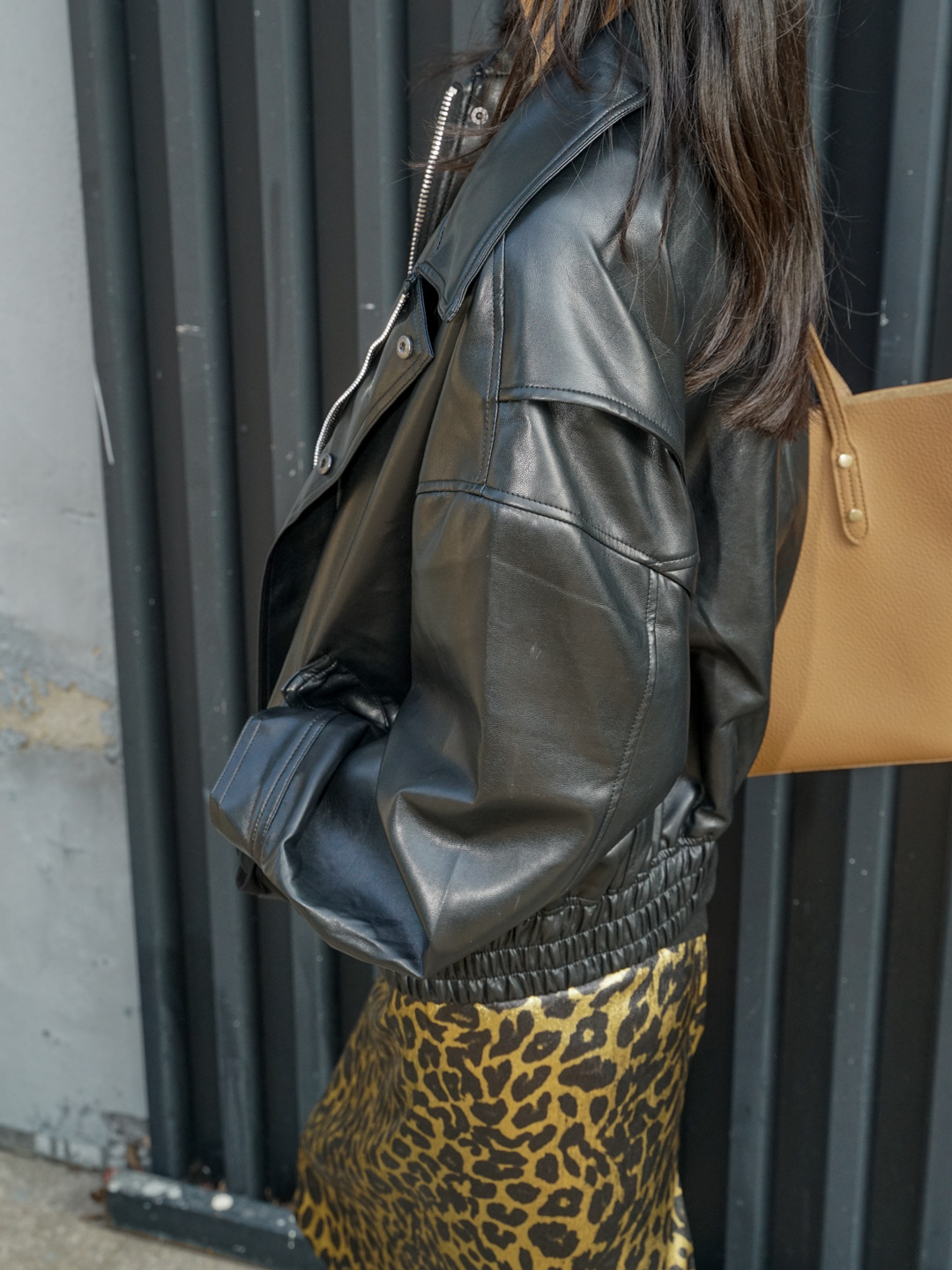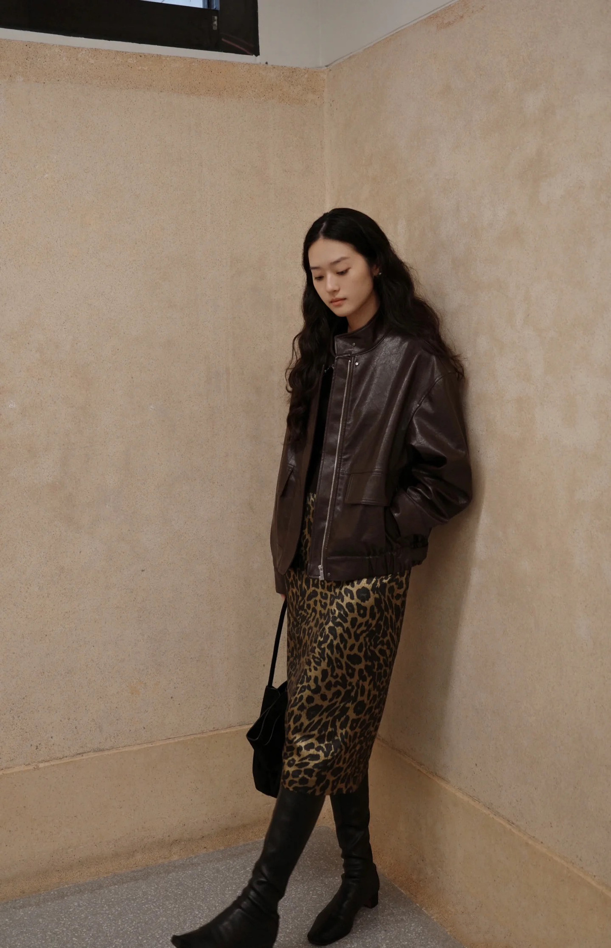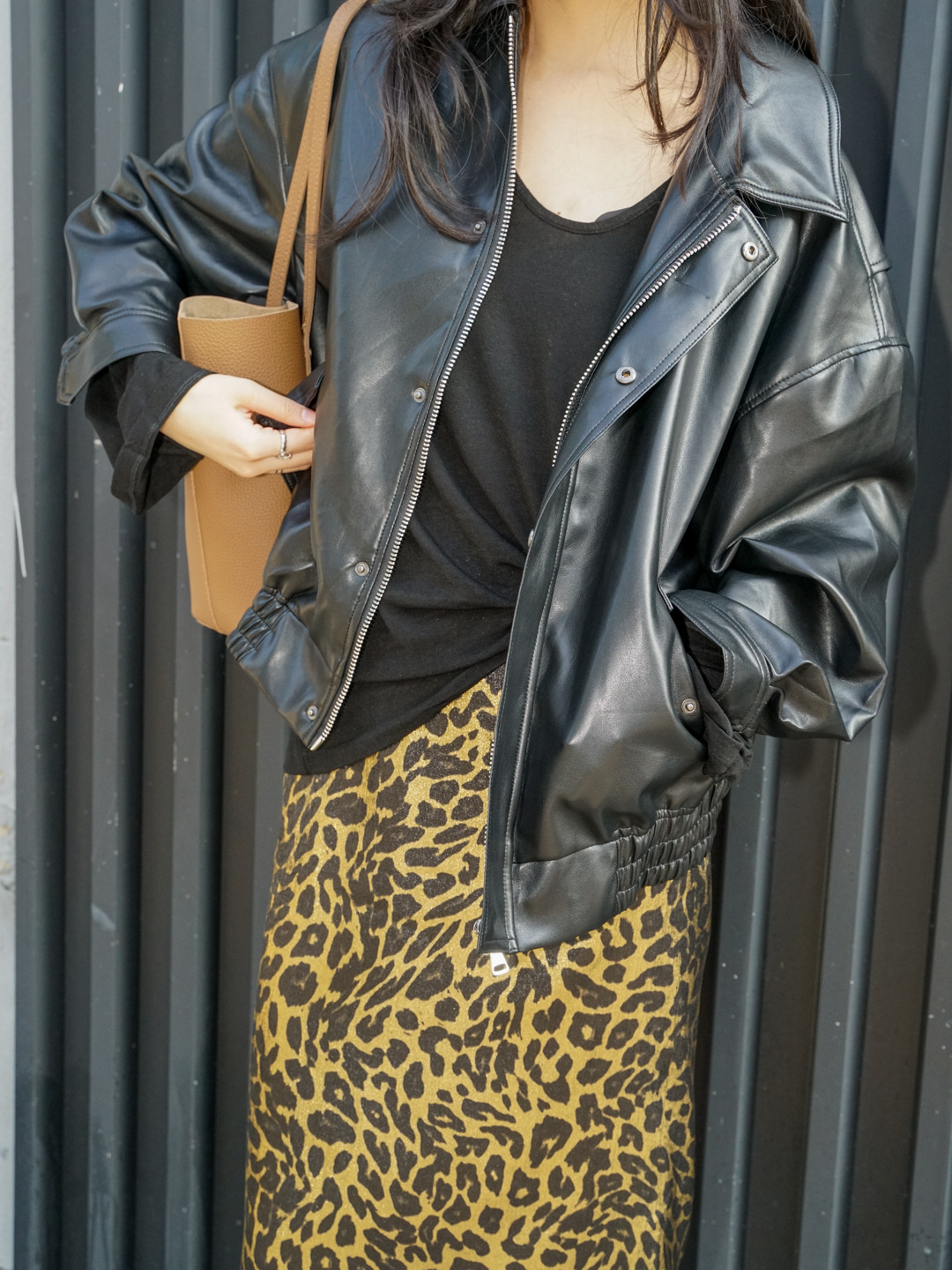 가을 출퇴근용 고급스러운 화려한 금박 레오파드 프린트 슬림하고 키가 보이는 스트레이트 마이크로 테이퍼드 슬릿 미디 스커트 4231스토어 가기