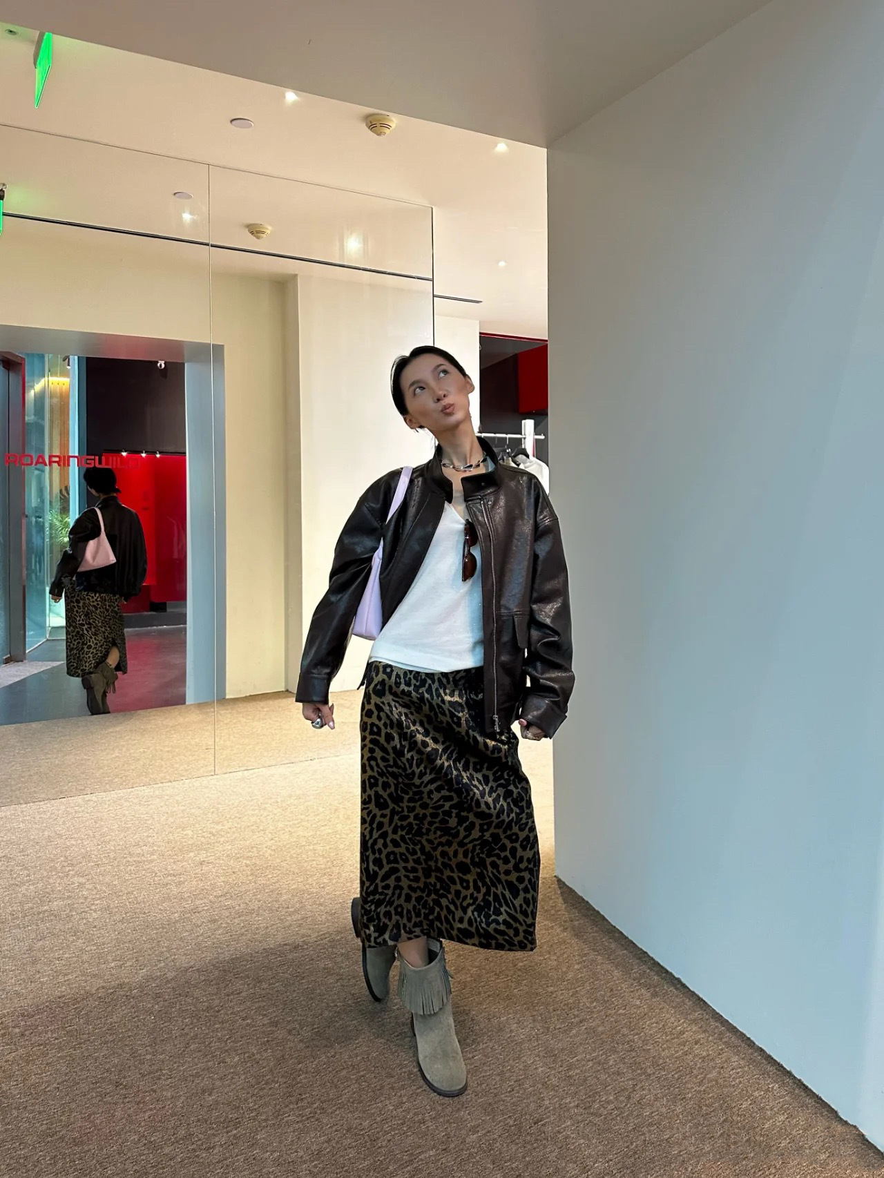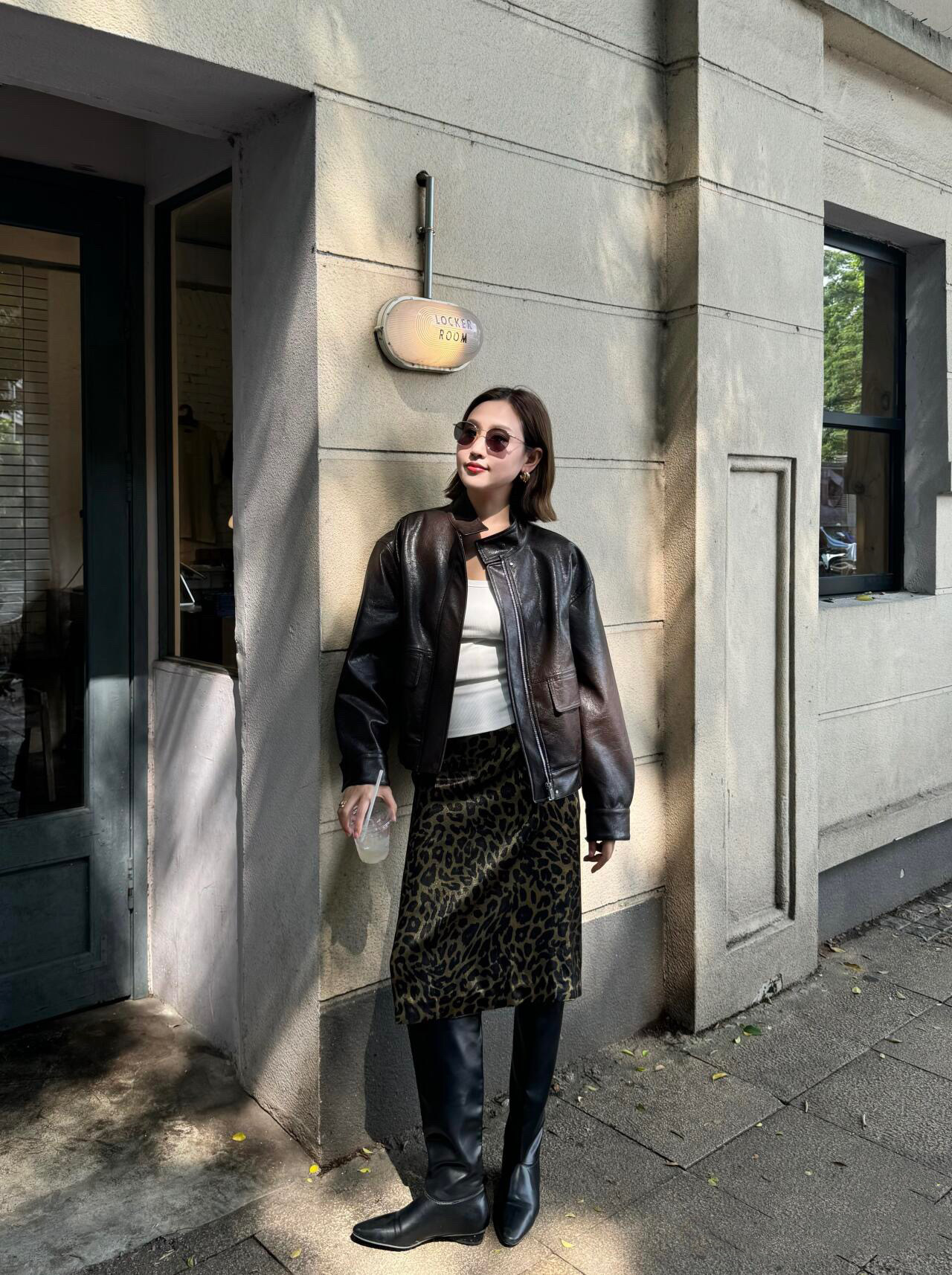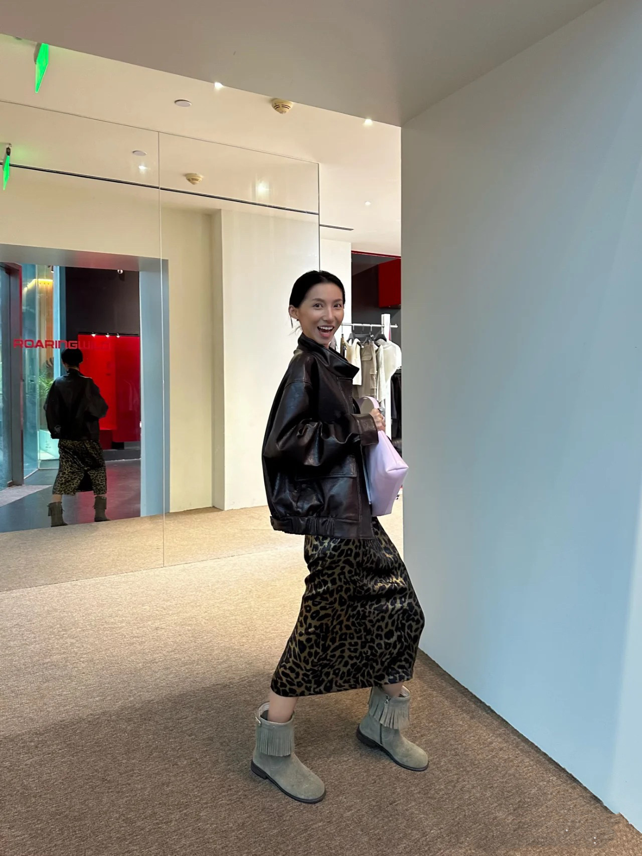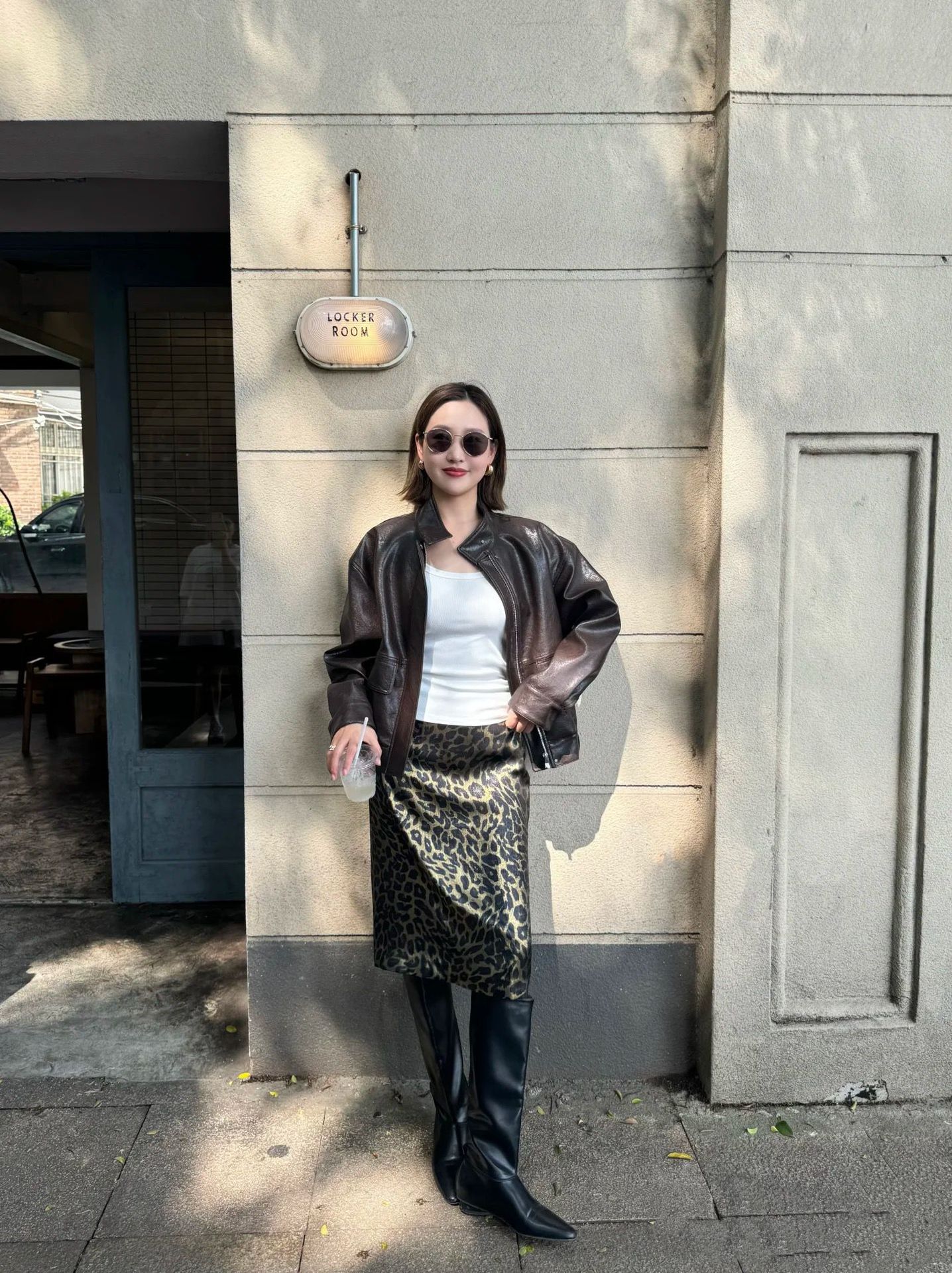 가을 출퇴근용 고급스러운 화려한 금박 레오파드 프린트 슬림하고 키가 보이는 스트레이트 마이크로 테이퍼드 슬릿 미디 스커트 4231스토어 가기