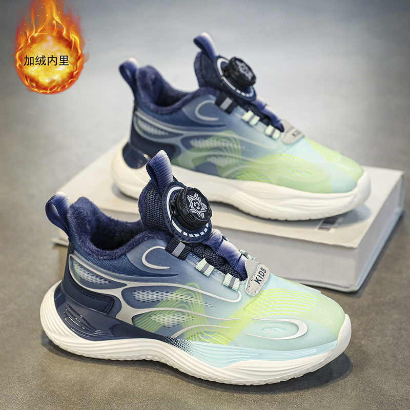 회전 버튼 소년 신발 운동화 가을과 겨울 어린이 농구 신발 큰 소년 기모 면화 도매