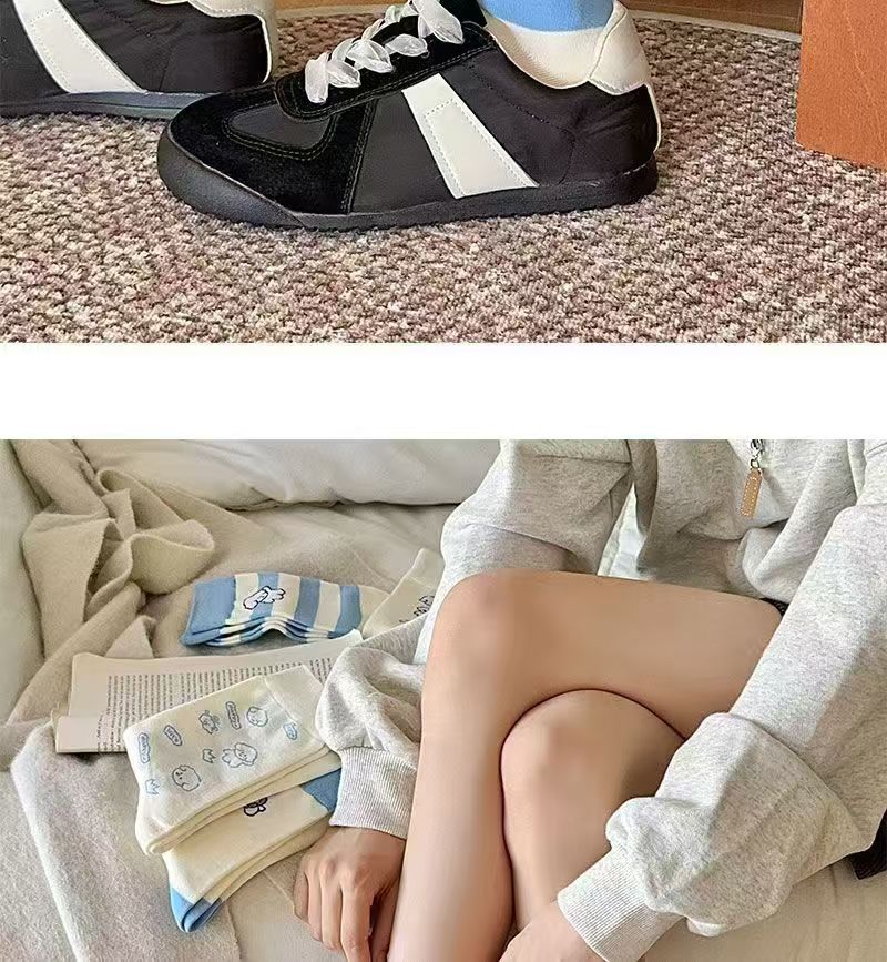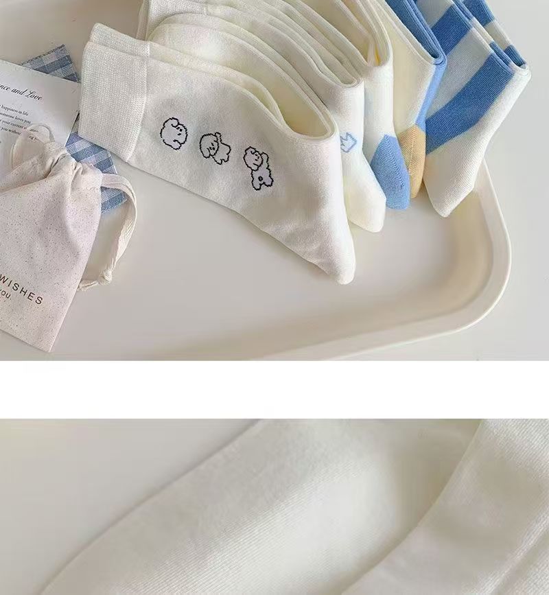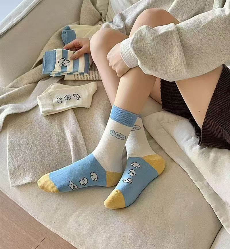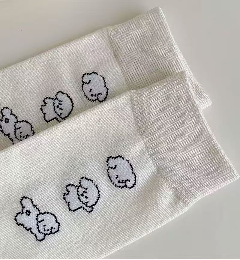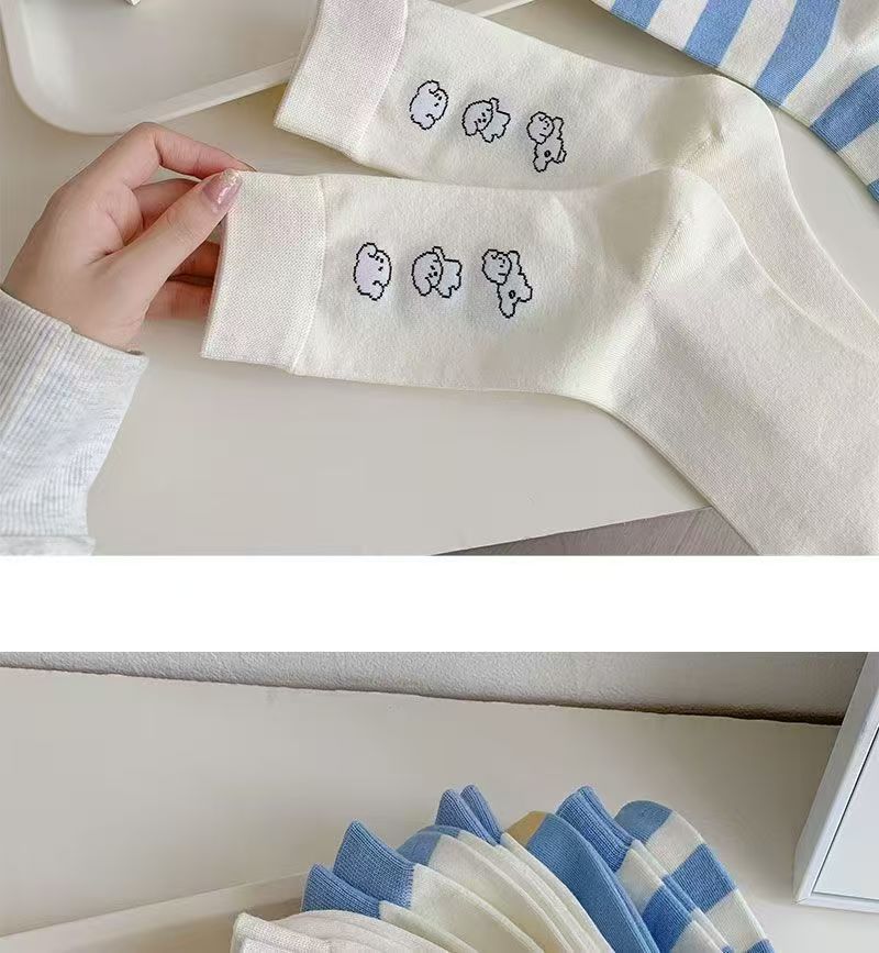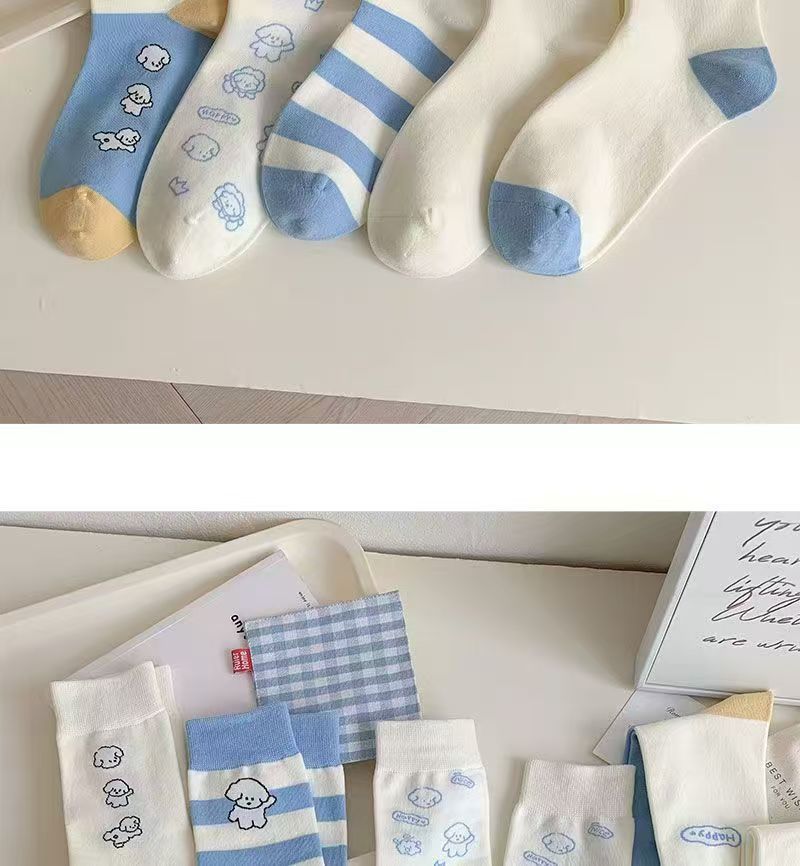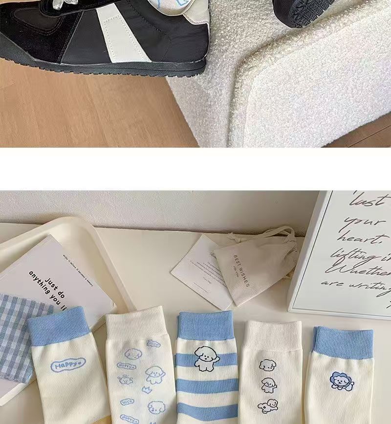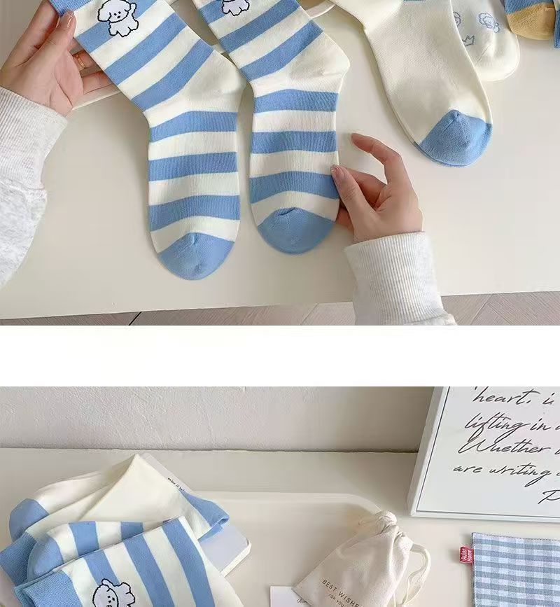 귀여운 만화 강아지 양말 여자 중간 배럴 한국 스타일 올 매치 가을 겨울 일본 스타일 파란색과 흰색 유행 양말 뼈없는 긴스토어 가기