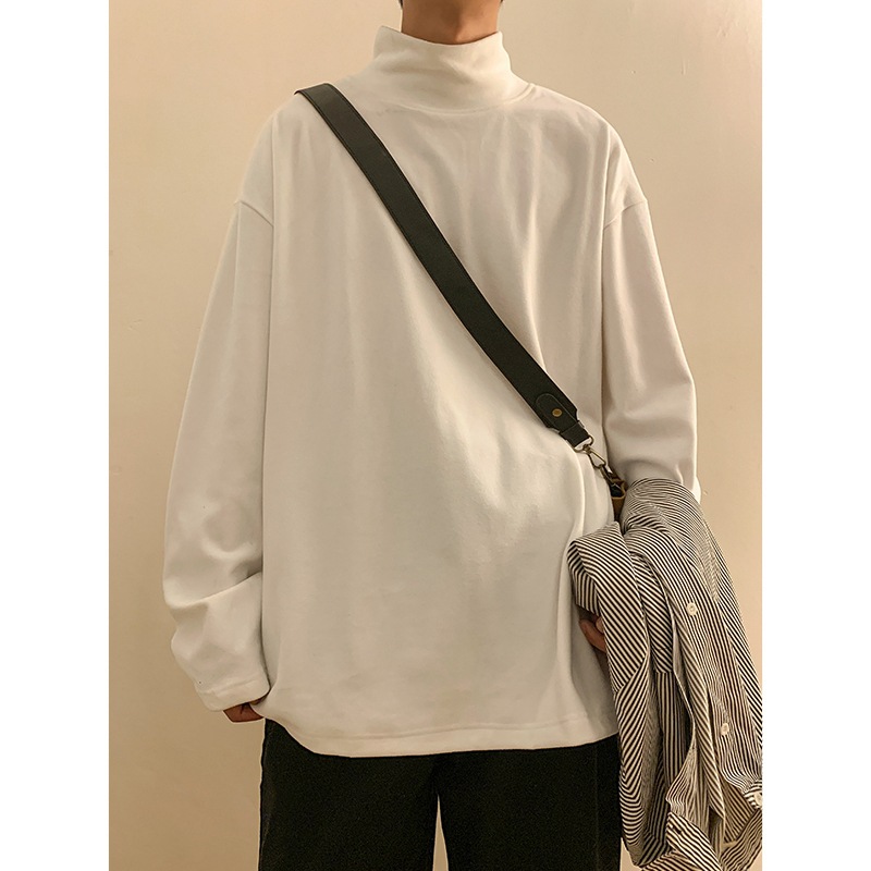 벨벳베이스 셔츠 남성용 긴팔 봄과 가을 느슨한 내부 스웨터 티셔츠 세미 하이 칼라 홍콩 스타일 인스 타 그램 스타일 남성 가을 옷스토어 가기
