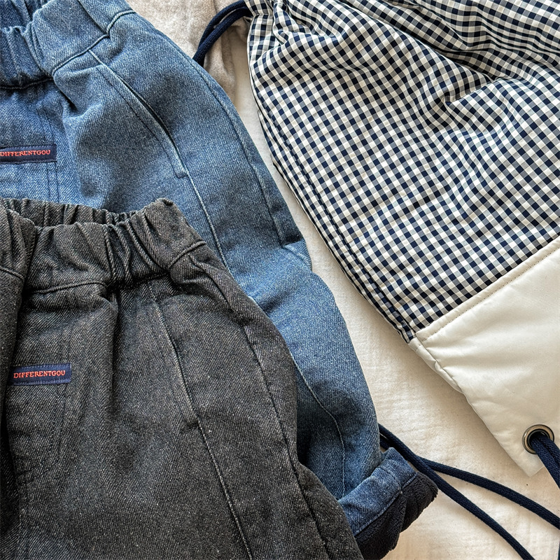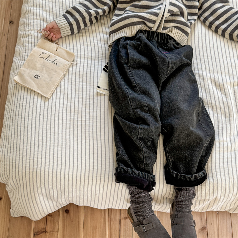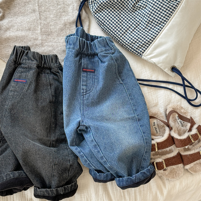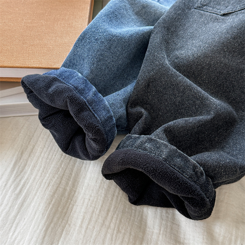 2025 아동복 가을 겨울 의류 어린이 한국 스타일 플리스 데님 바지 면바지 여아 겨울용 긴바지 남아 아동 바지 5665스토어 가기
