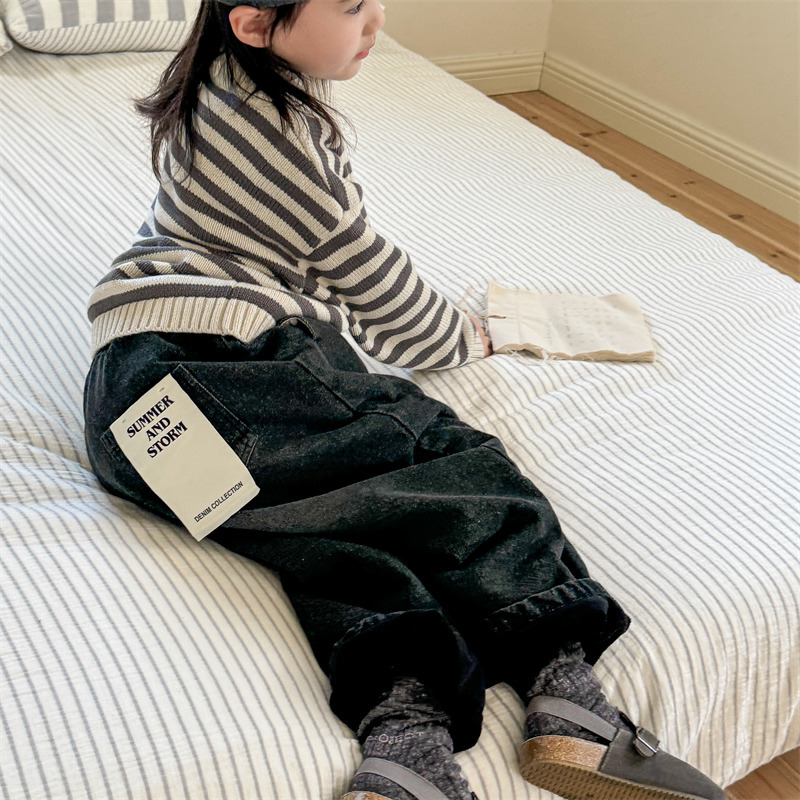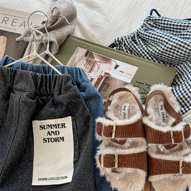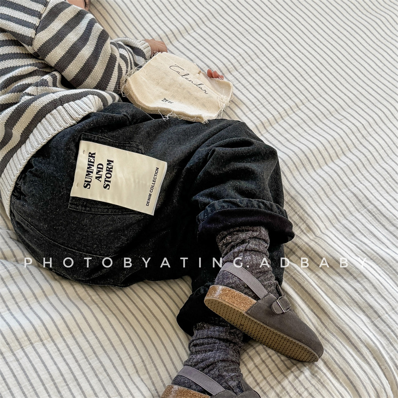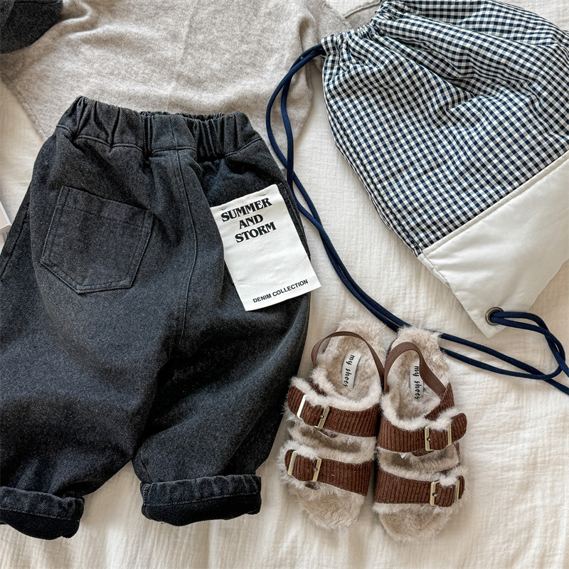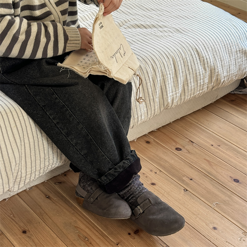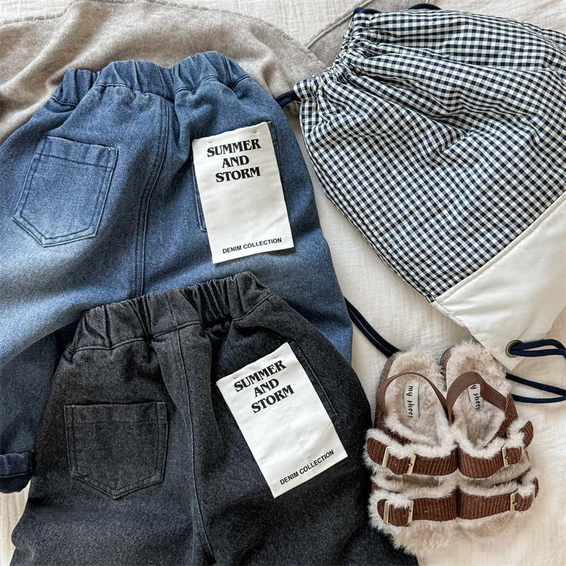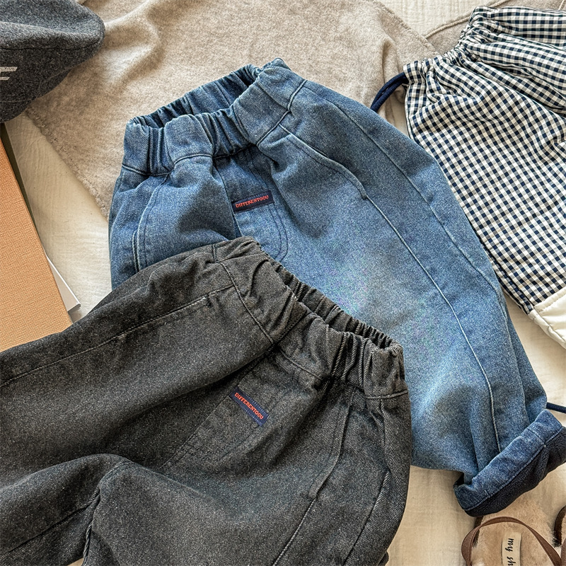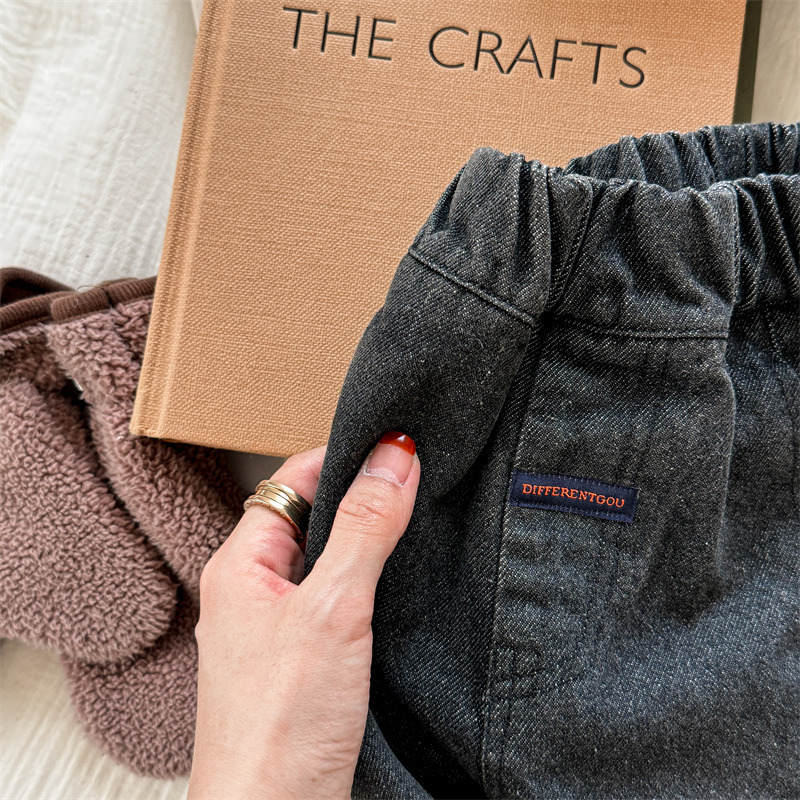 2025 아동복 가을 겨울 의류 어린이 한국 스타일 플리스 데님 바지 면바지 여아 겨울용 긴바지 남아 아동 바지 5665