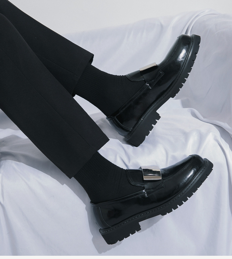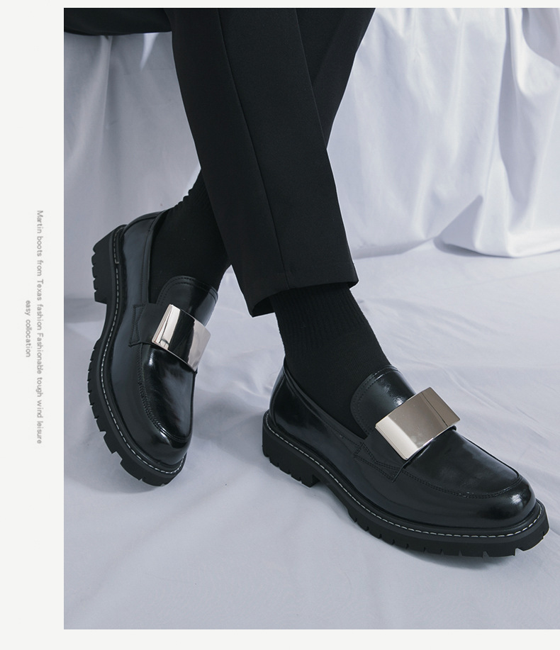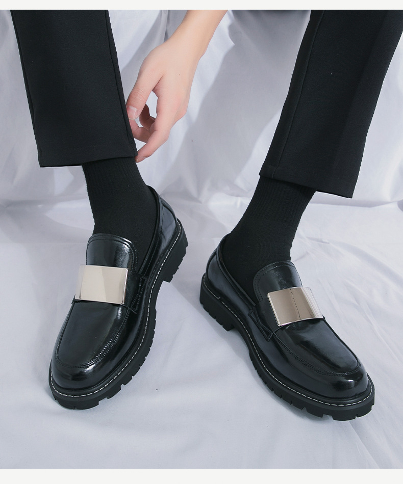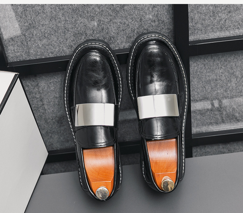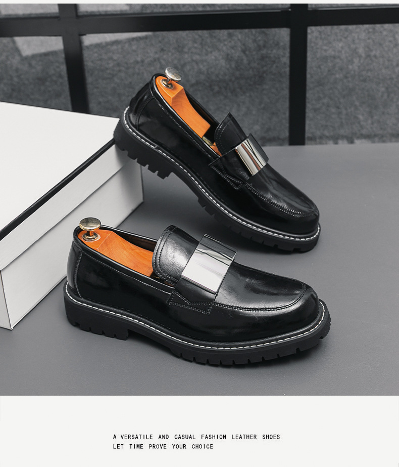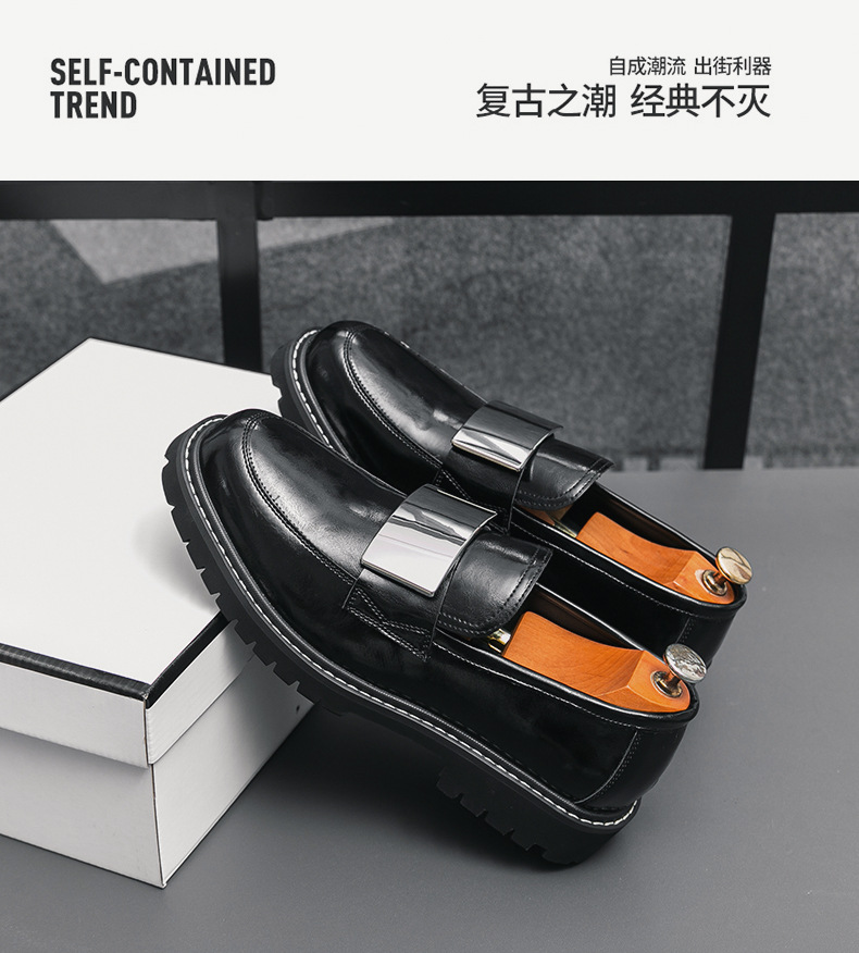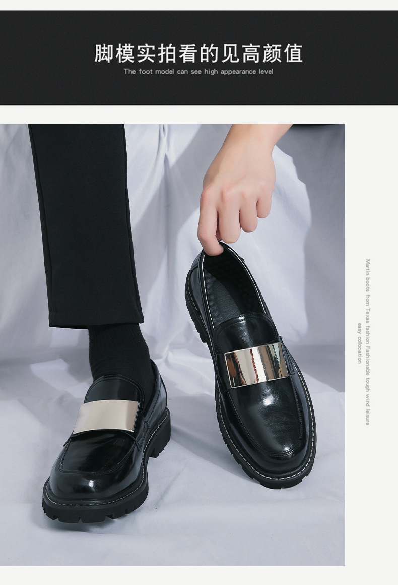가죽 신발 남성 슬립 온 원피스 비즈니스 남성 신발 가을 새로운 영국 캐주얼 신발 성격 추세 국경 플러스 사이즈