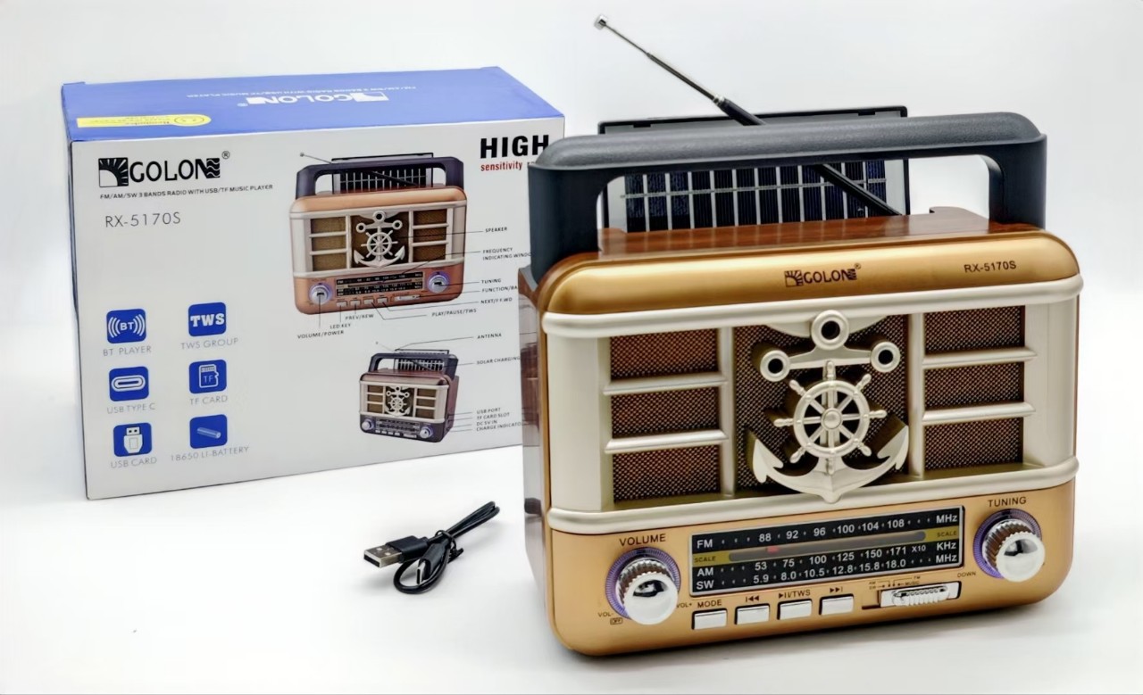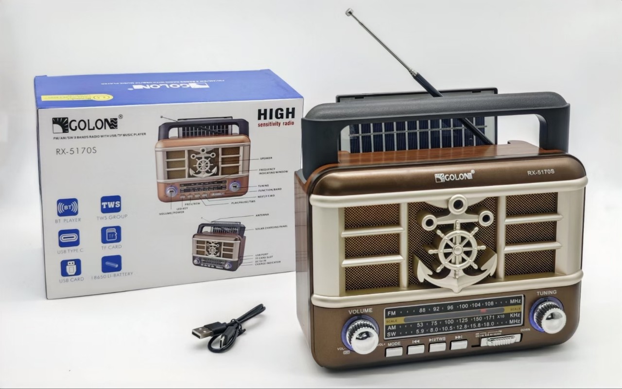 새로운 RX-5170 레트로 라디오 3 밴드 FM 휴대용 야외 휴대용 블루투스 오디오 다채로운 조명