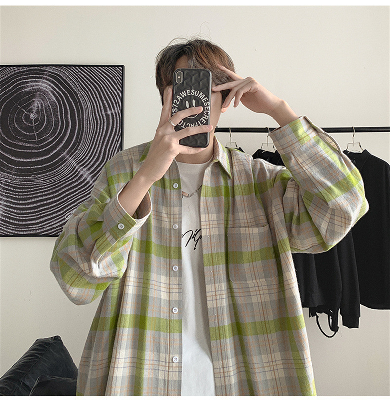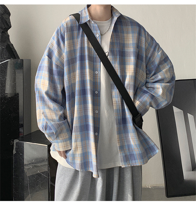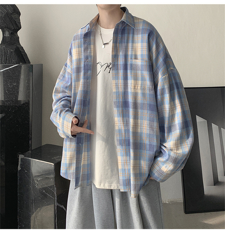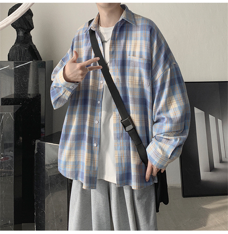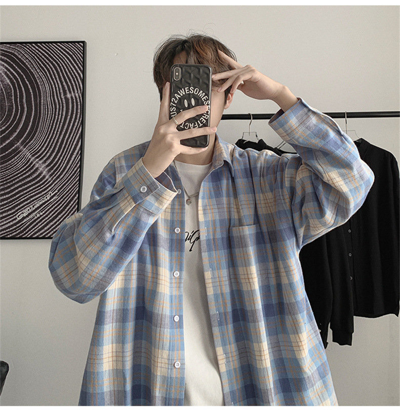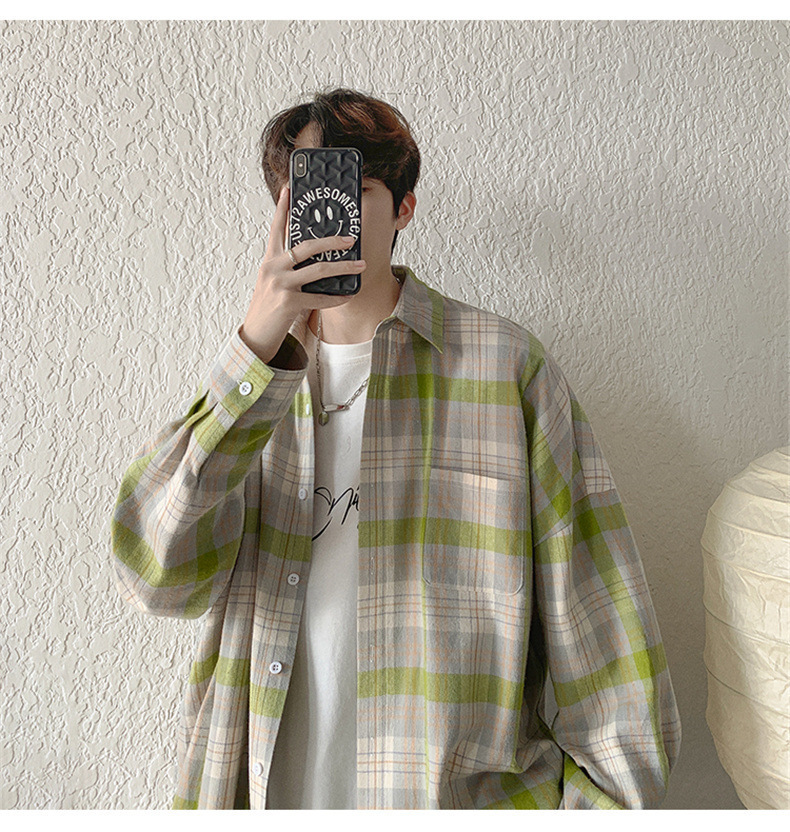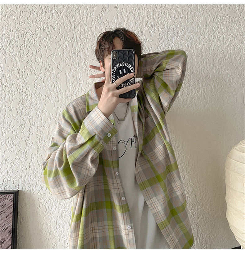 캐주얼 플레이드 셔츠 남성 여름 얇은 긴팔 셔츠 트렌디 브랜드 커플의 아이스 실크 느슨한 태양 보호 재킷 탑스토어 가기