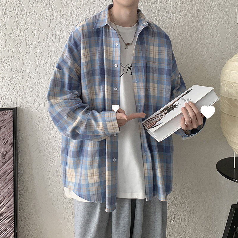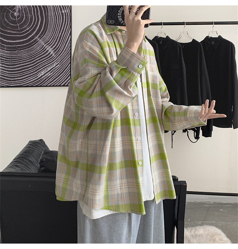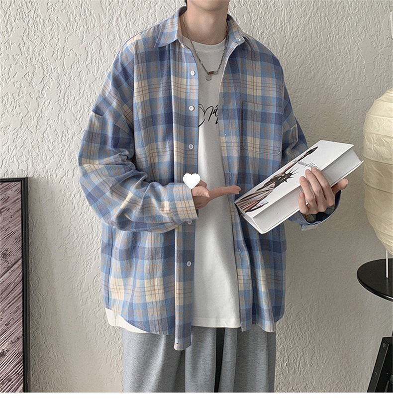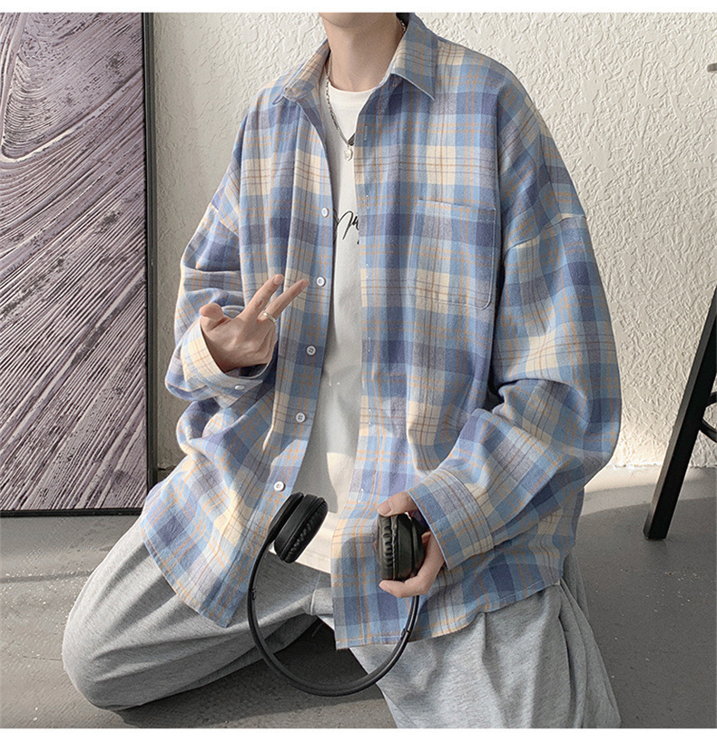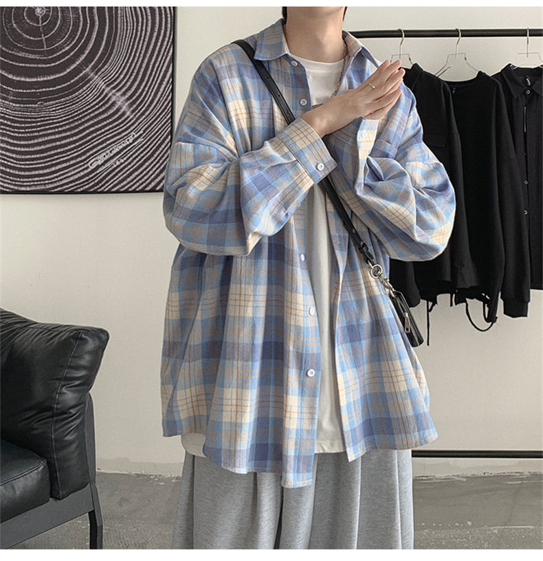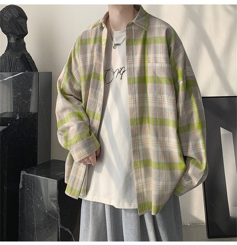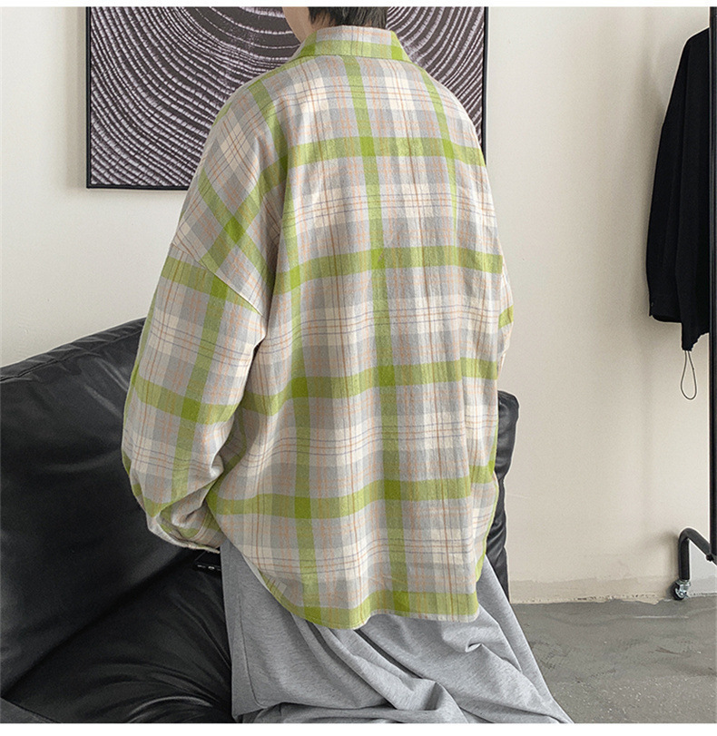 캐주얼 플레이드 셔츠 남성 여름 얇은 긴팔 셔츠 트렌디 브랜드 커플의 아이스 실크 느슨한 태양 보호 재킷 탑스토어 가기