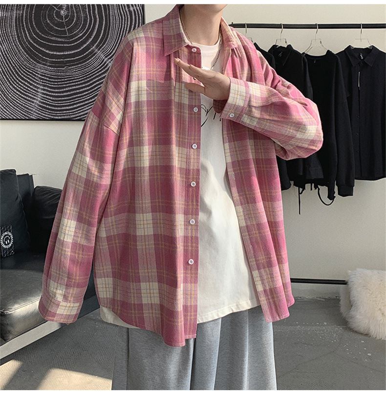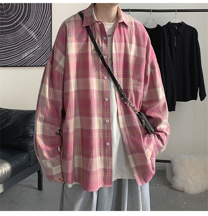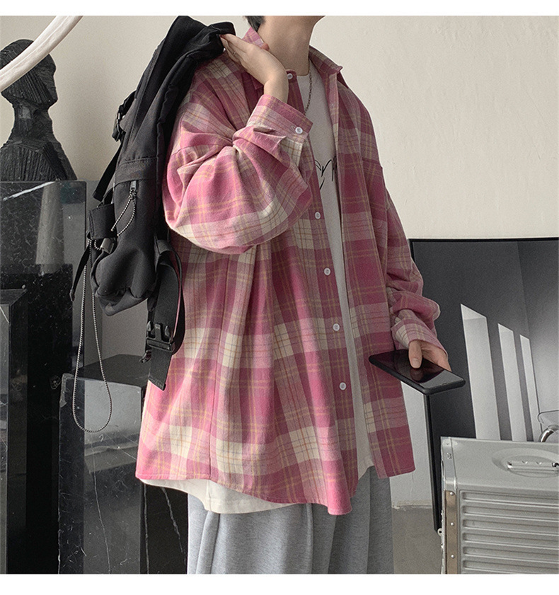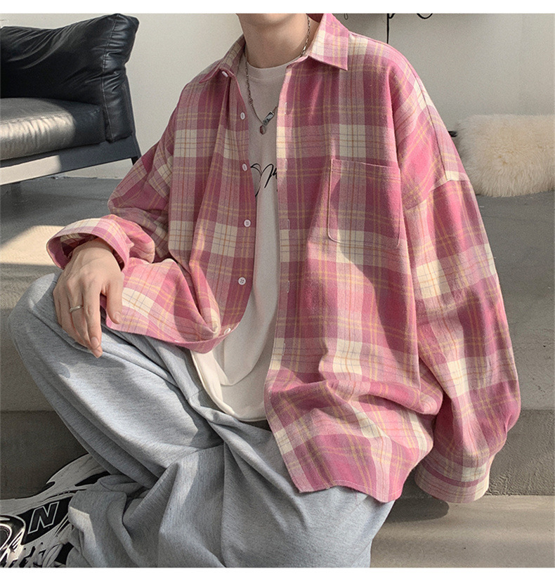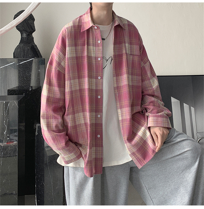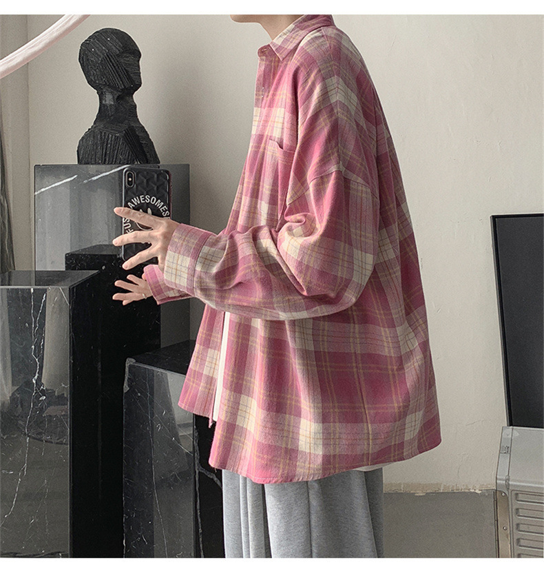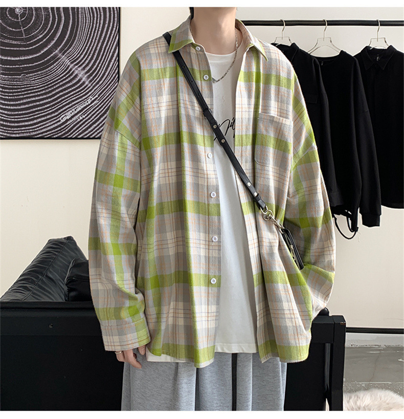 캐주얼 플레이드 셔츠 남성 여름 얇은 긴팔 셔츠 트렌디 브랜드 커플의 아이스 실크 느슨한 태양 보호 재킷 탑스토어 가기