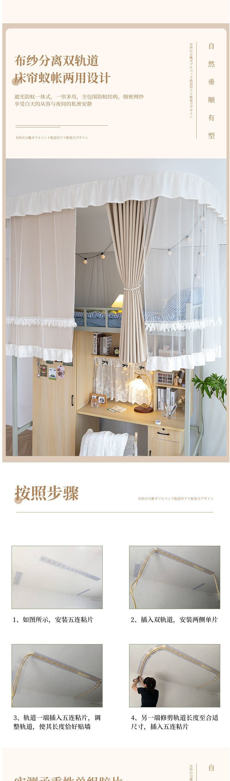 유형 침대 커튼 학생 기숙사 상단 더블 슬라이드 레일 상단 및 하단 침대 프랑스 모기장 통합 강한 음영 창 커튼 크로스 테두리스토어 가기