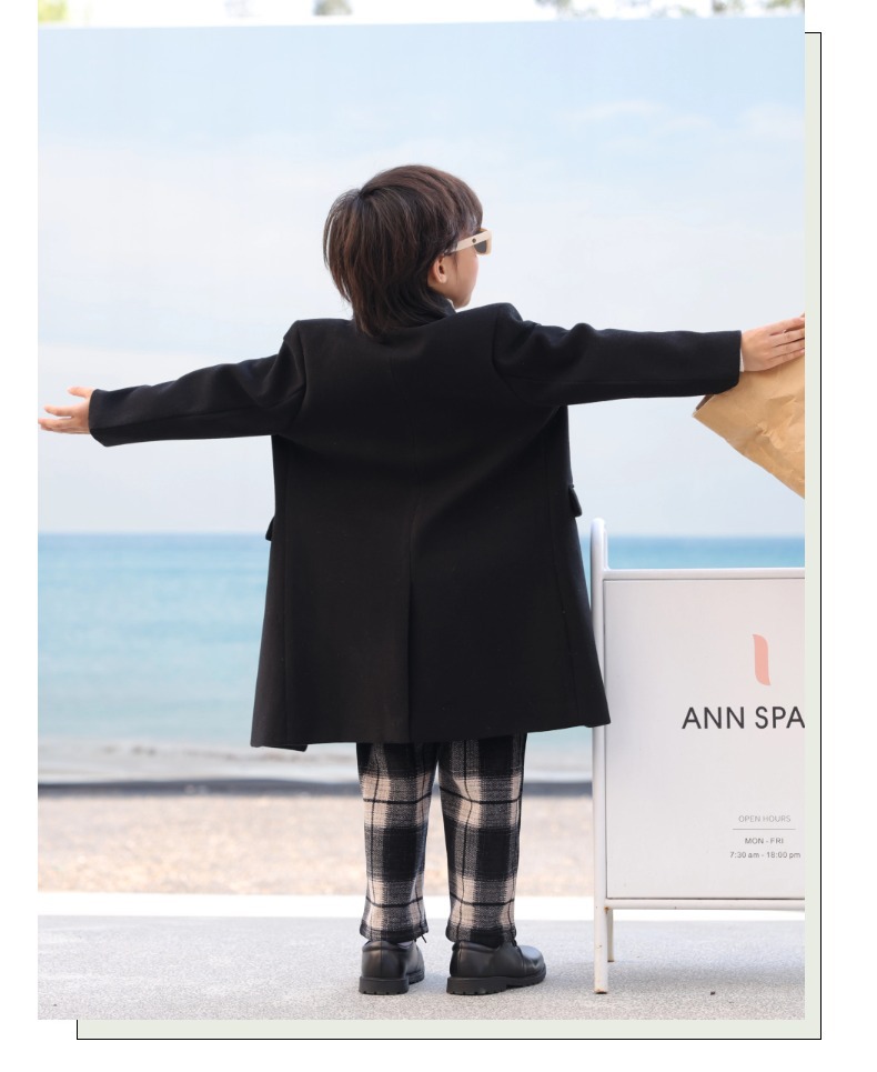 2024 년 가을 뉴 보이즈 한국 스타일 트렌치 코트 아동복 긴 세트 유행 스타일 코트 아동복 더블 브레스트 울 코트