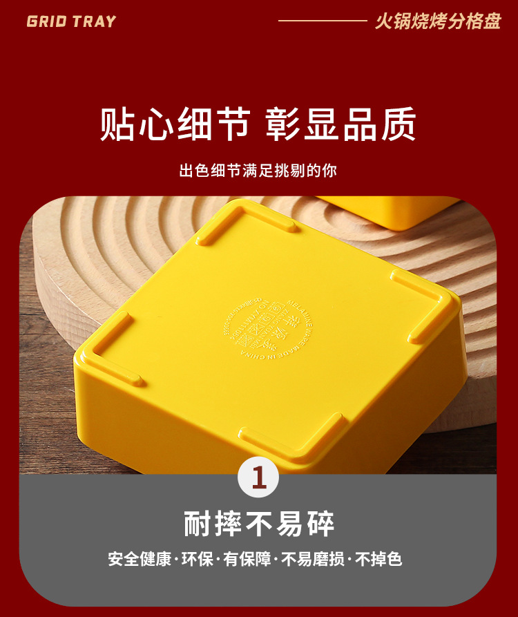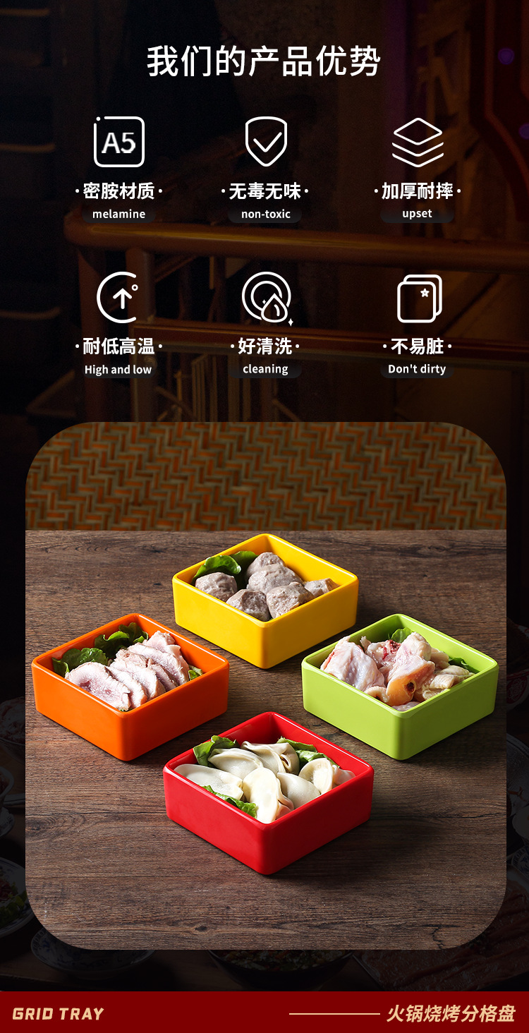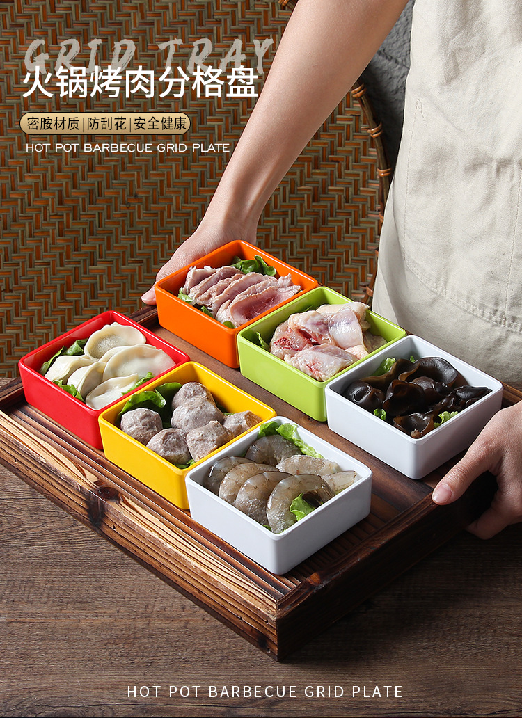 멜라민 플레이트 셀프 서비스 바베큐 냄비 플레이트 도자기 같은 식기 플라스틱 플레이트 상업용 플래터 파티션 플레이트 스퀘어 플레이트스토어 가기