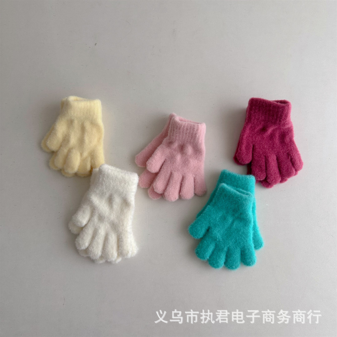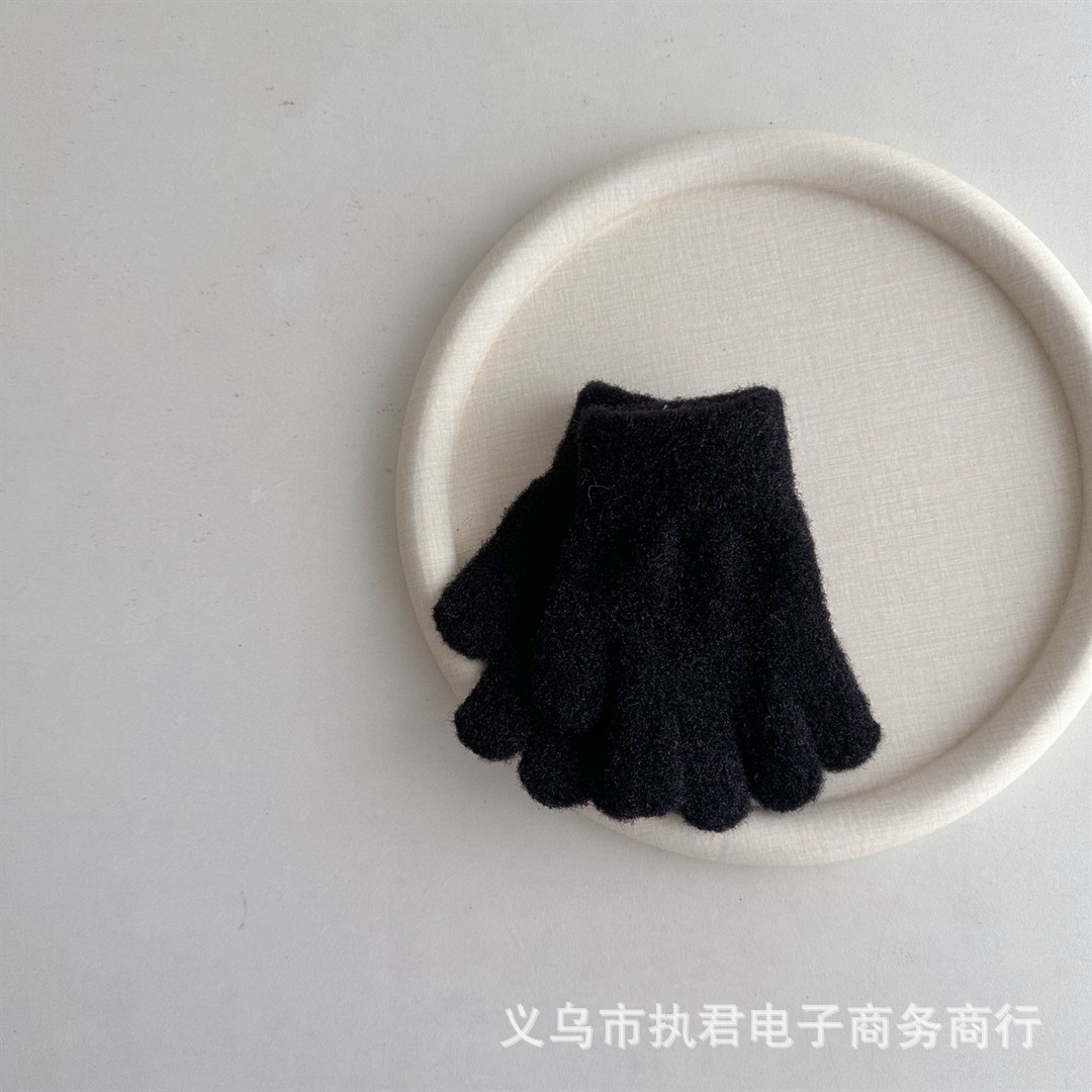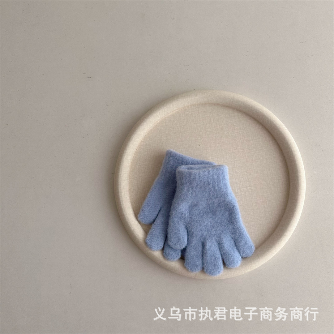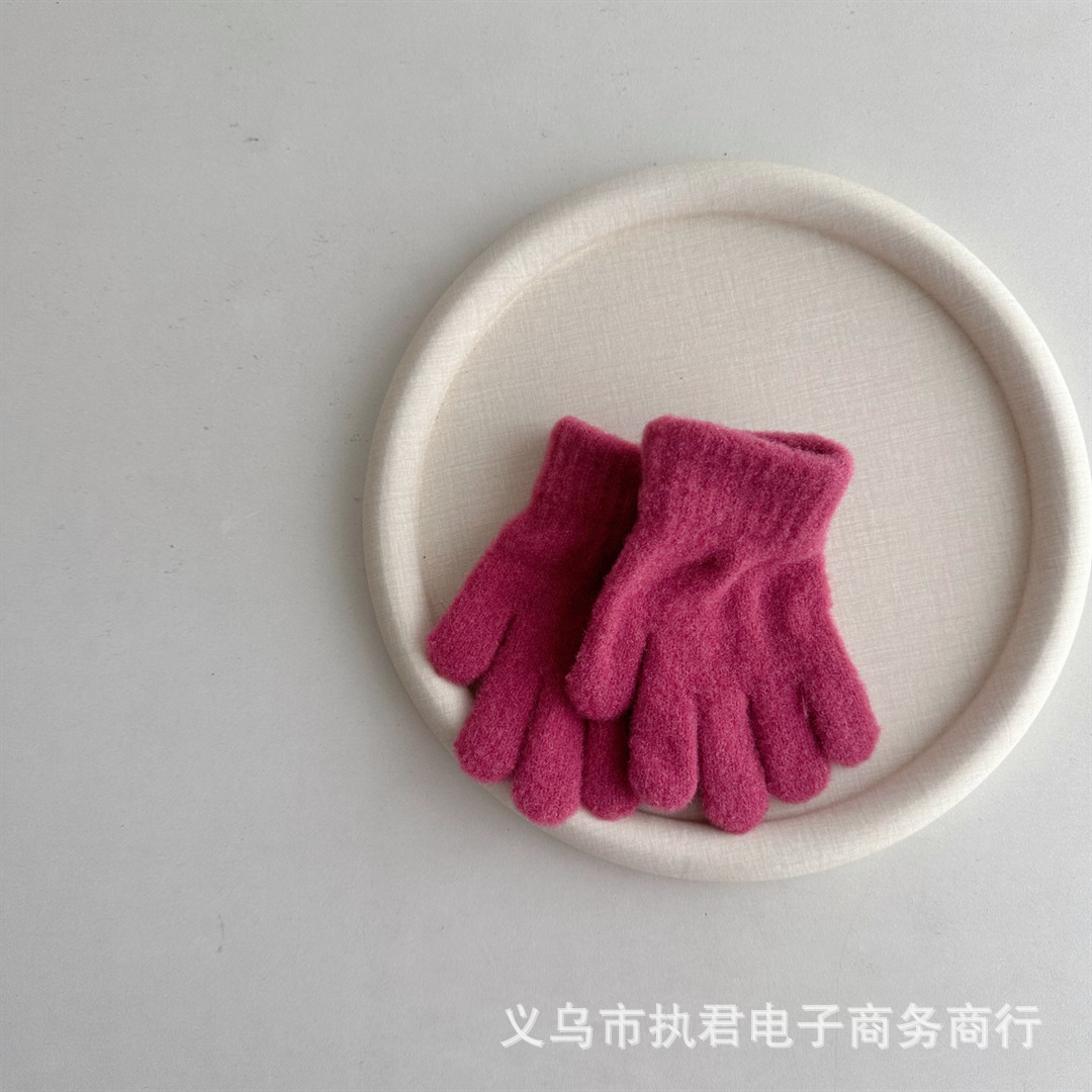 Ins 한국 아기 간단한 단색 봉제 5 손가락 장갑 1 년 된 겨울 니트 따뜻한 손가락 세트 소년 소녀