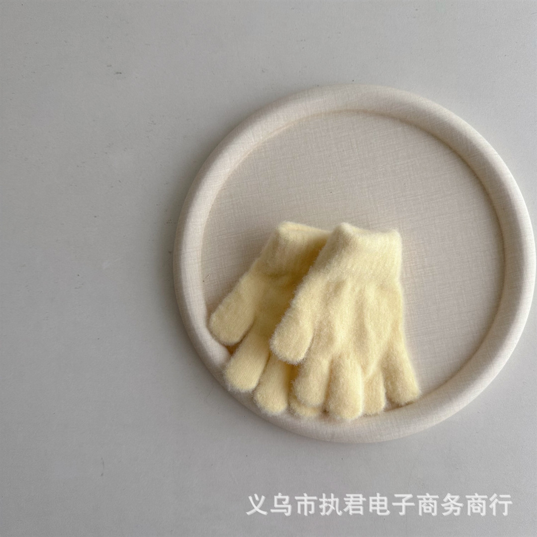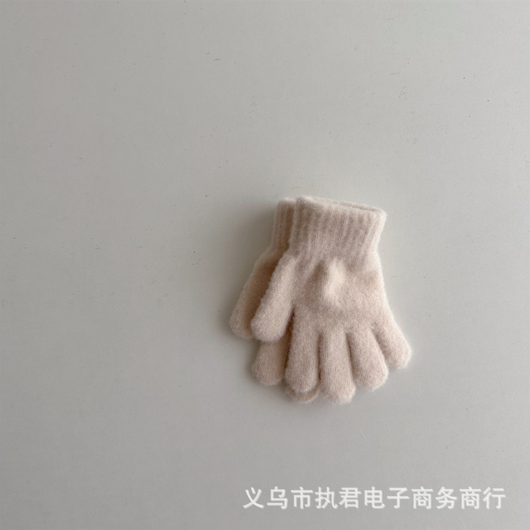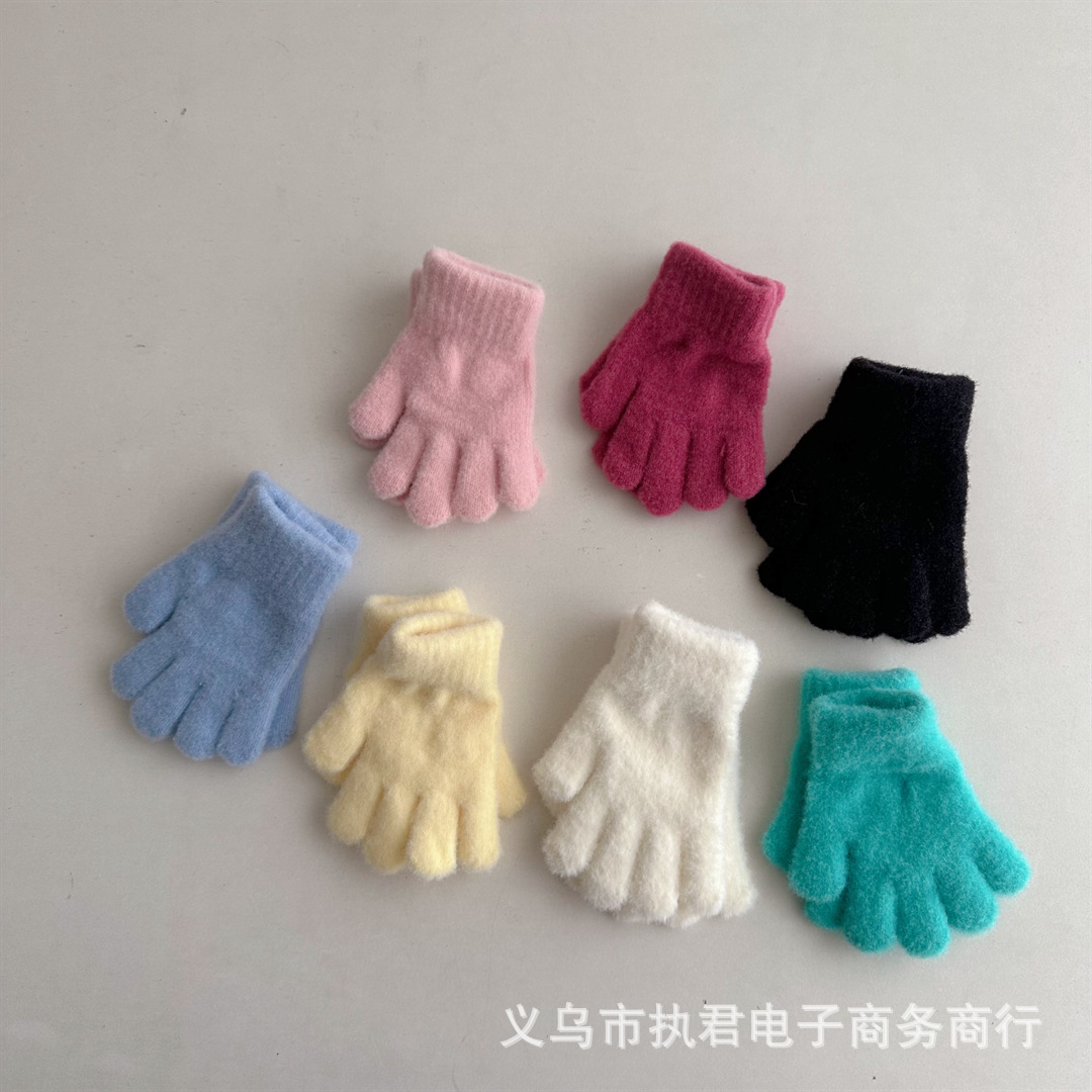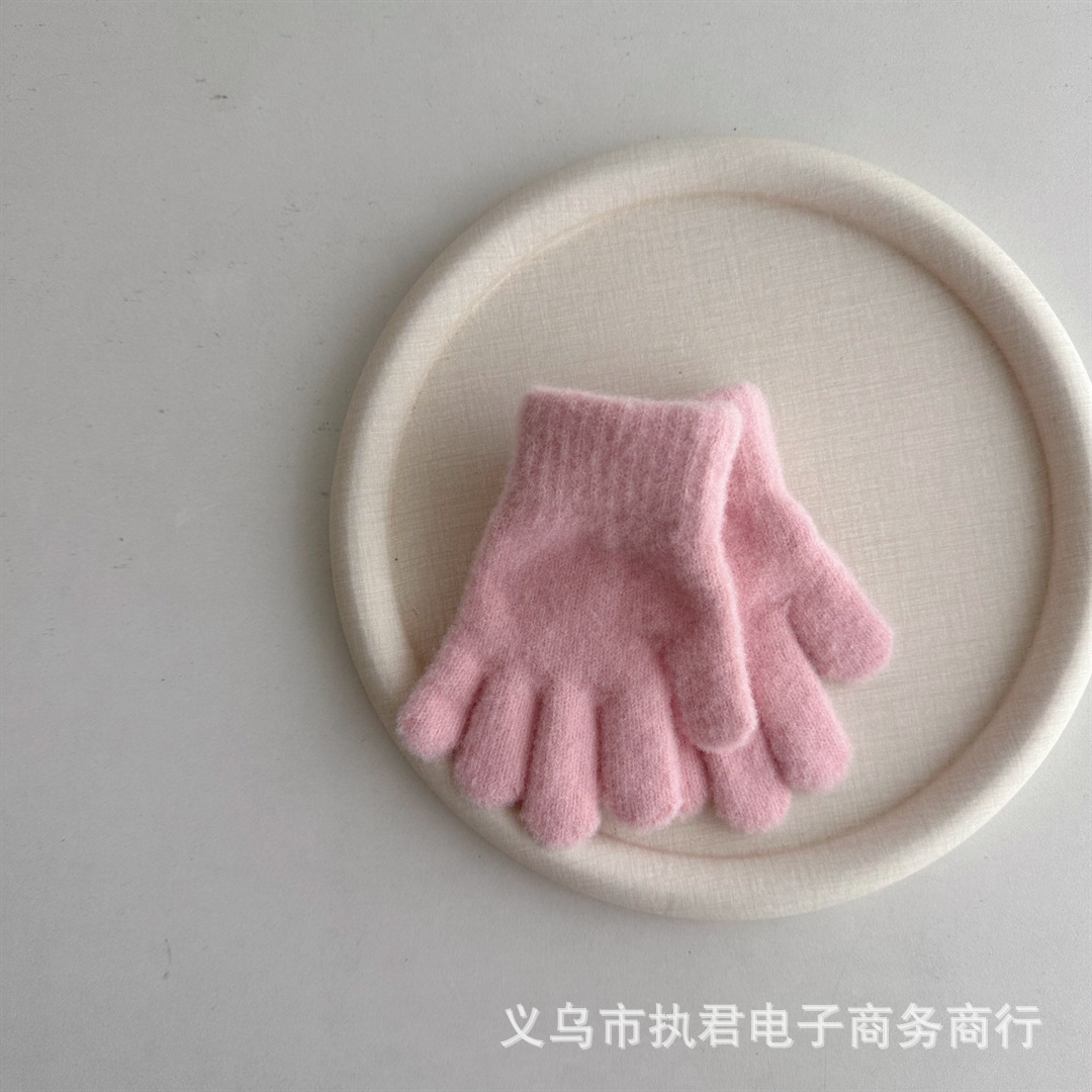 Ins 한국 아기 간단한 단색 봉제 5 손가락 장갑 1 년 된 겨울 니트 따뜻한 손가락 세트 소년 소녀