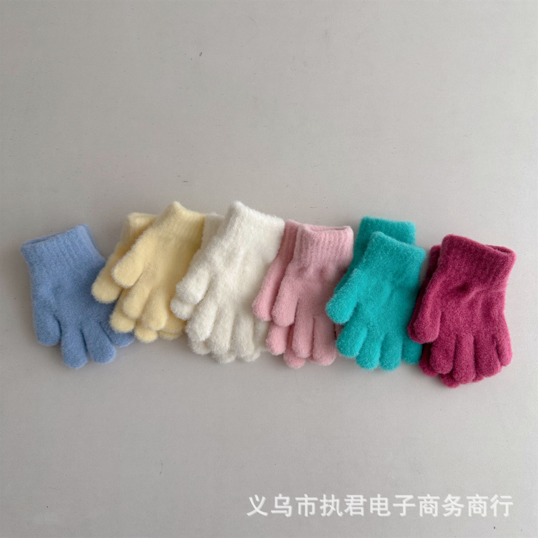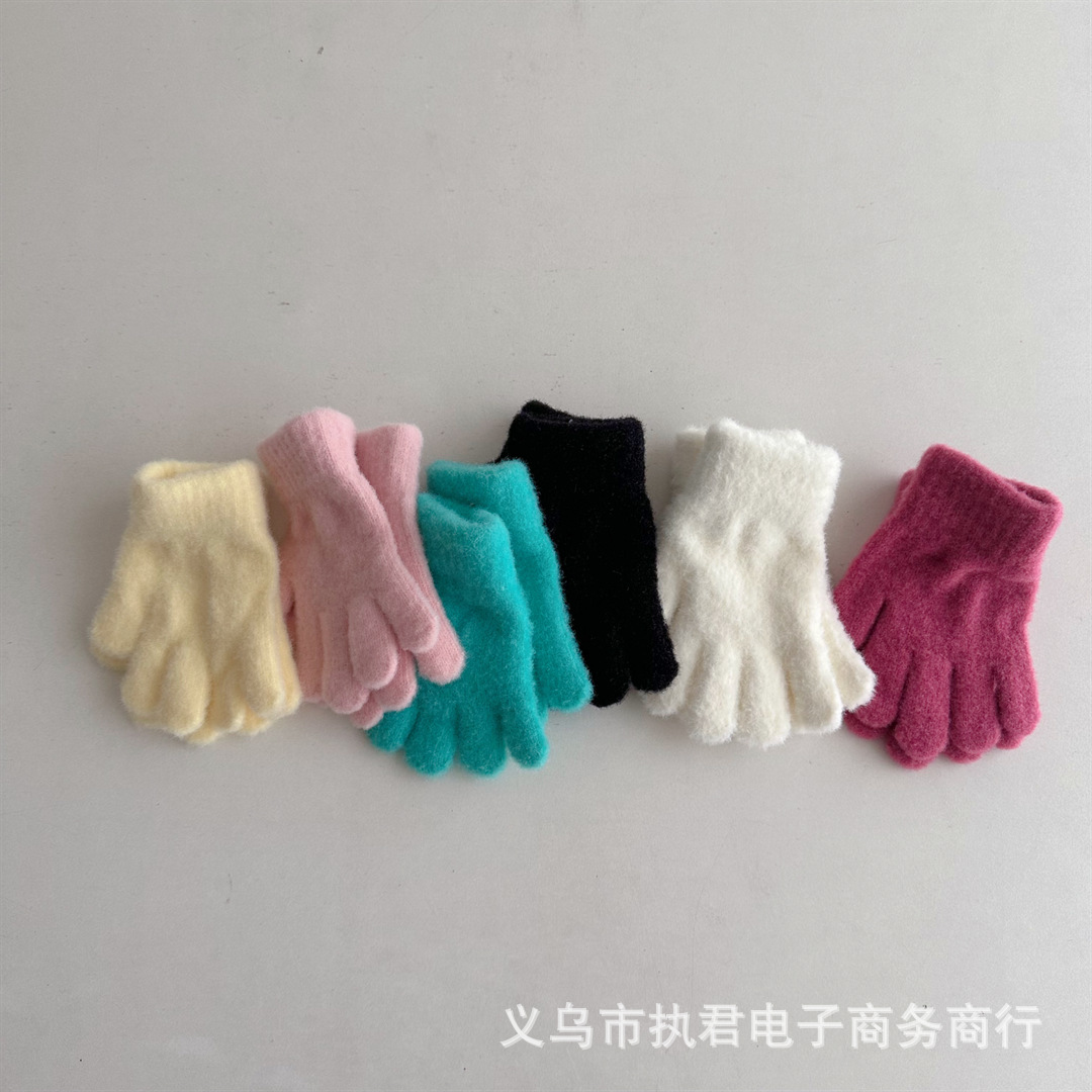 Ins 한국 아기 간단한 단색 봉제 5 손가락 장갑 1 년 된 겨울 니트 따뜻한 손가락 세트 소년 소녀스토어 가기