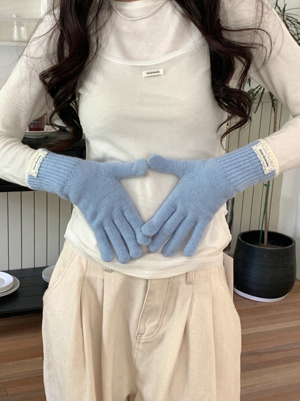 한국 스타일 화이트 울 장갑 여성 겨울 긴 따뜻한 니트 핑거 레드 장갑 오픈 손가락 터치 스크린스토어 가기