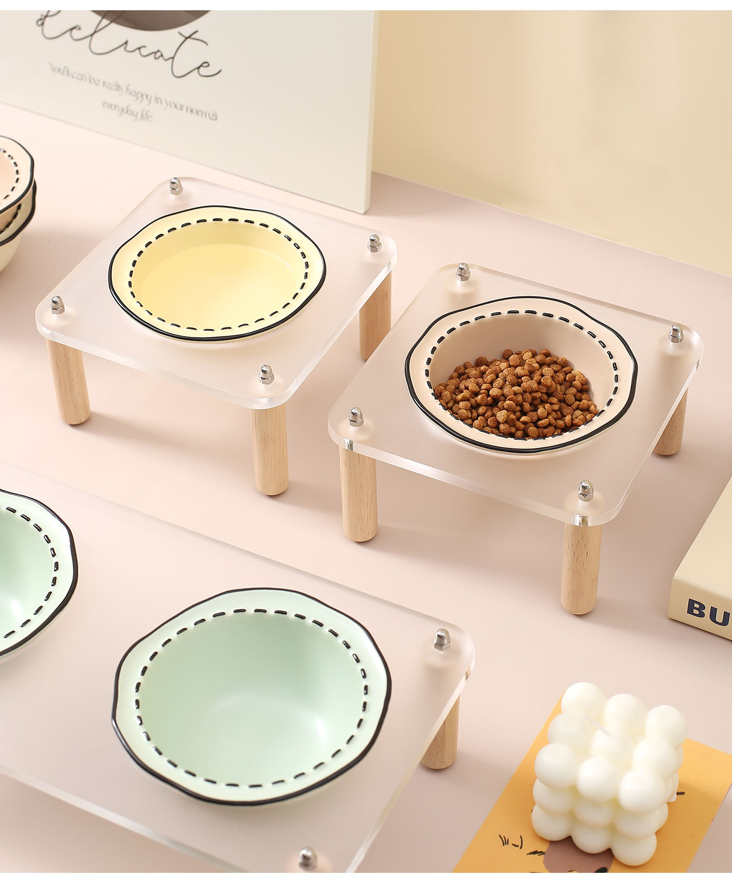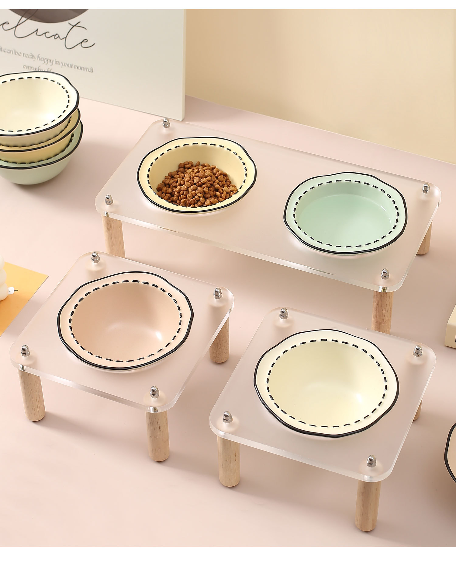 창조적 인 만화 애완 동물 사발 랙 가정용 애완 동물 밥 그릇 세라믹 그릇 키 큰 고양이 그릇 개 그릇 마시는 그릇스토어 가기