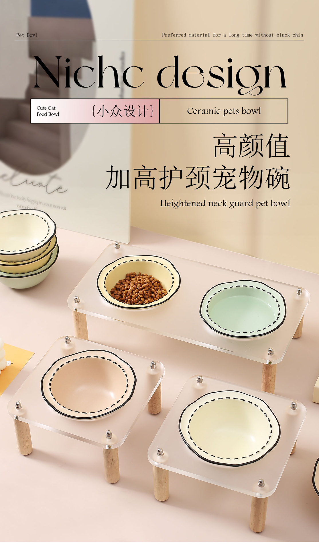 창조적 인 만화 애완 동물 사발 랙 가정용 애완 동물 밥 그릇 세라믹 그릇 키 큰 고양이 그릇 개 그릇 마시는 그릇