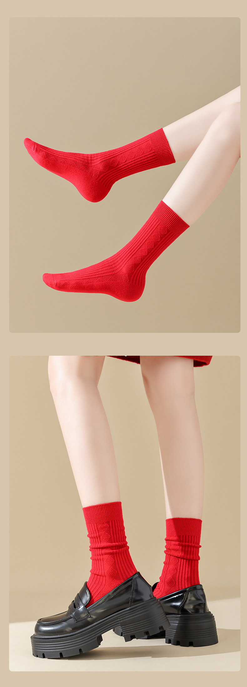 양말 여성의 원래 해 중반 튜브 양말 가을과 겨울 붉은 남성과 여성의 2024 새로운 세대의 도매 Zhuji 공장