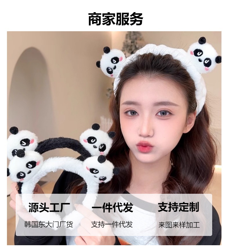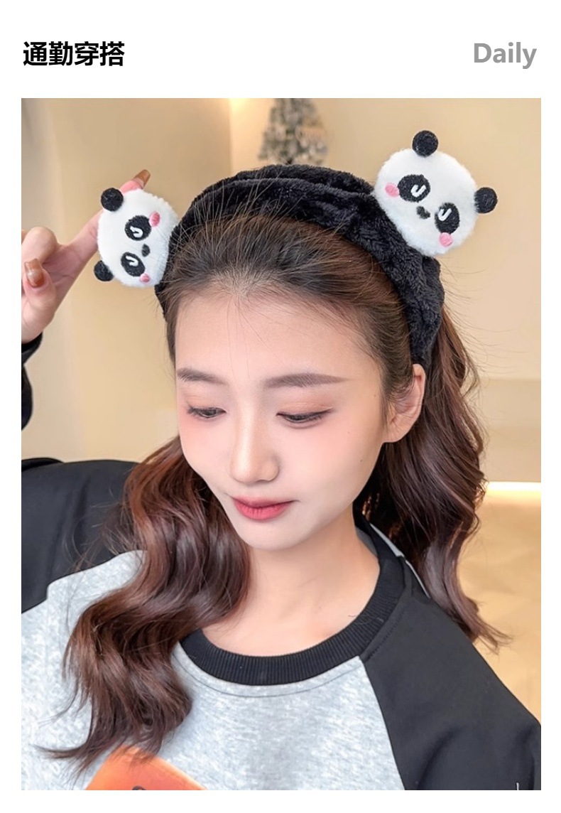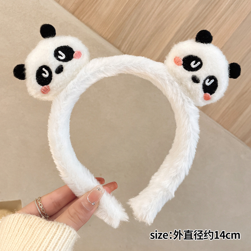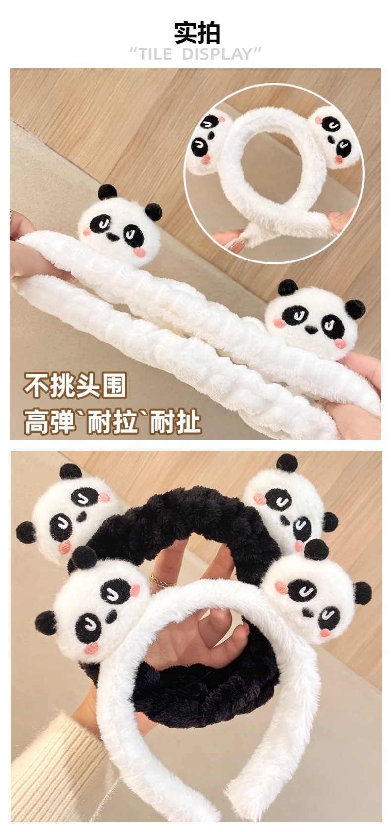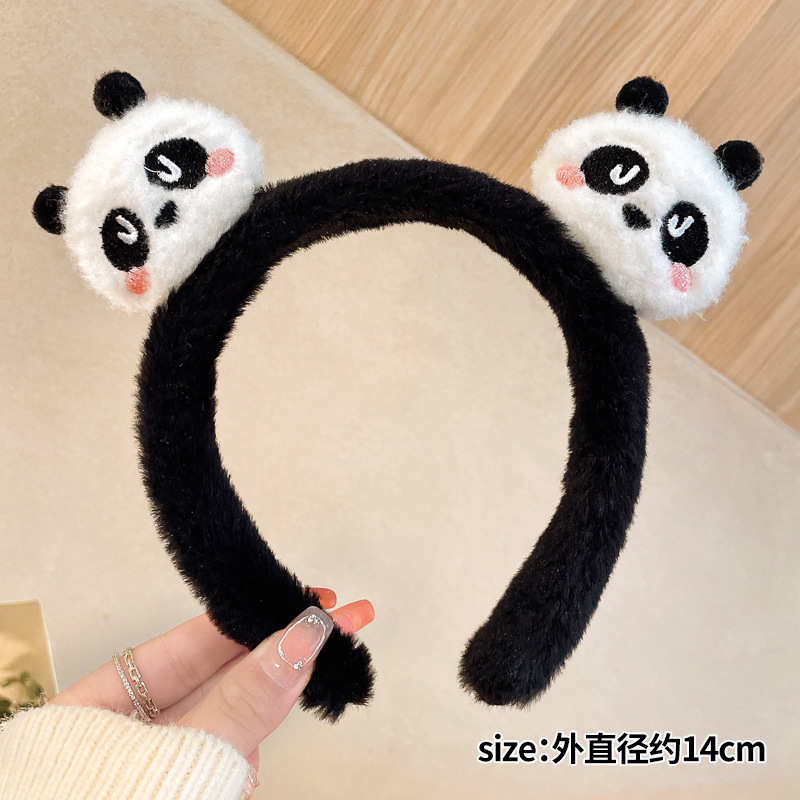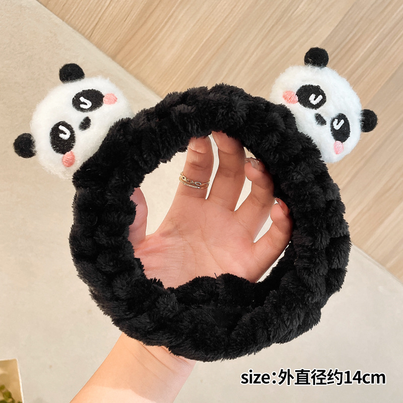 만화 팬더 헤어 밴드 여성의 2024 새로운 헤어 밴드 플러시 워시 헤어 밴드 가을과 겨울 적용 마스크 특수 헤어핀 헤드웨어스토어 가기